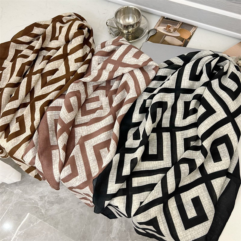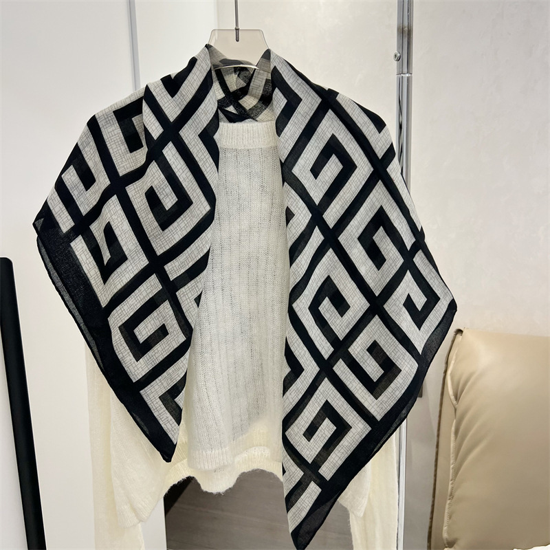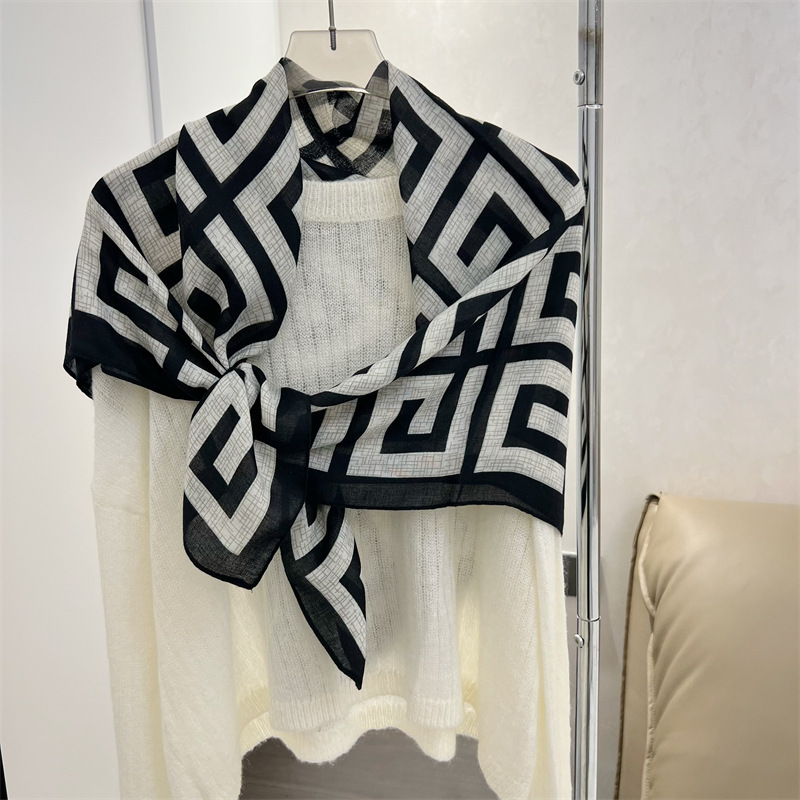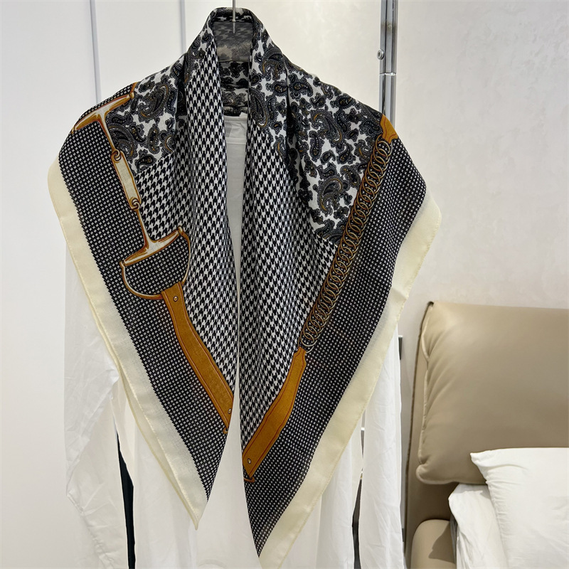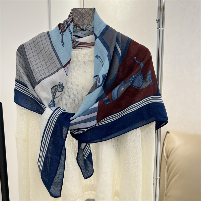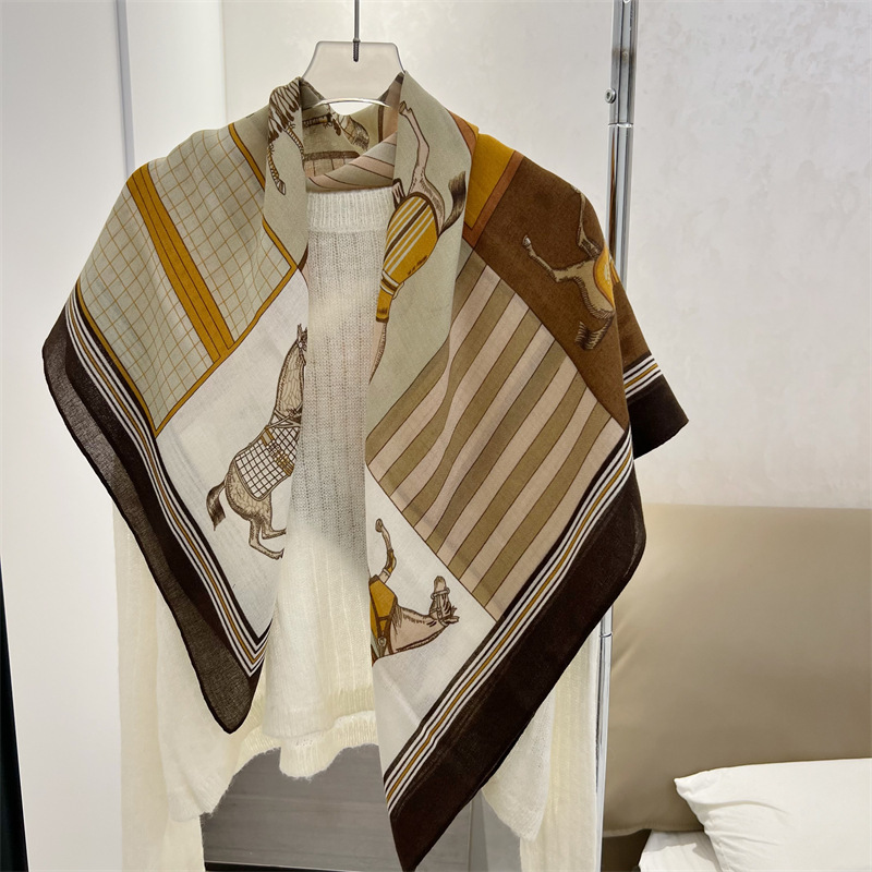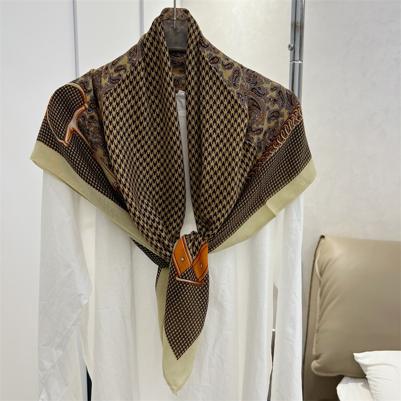 유럽과 미국의 가을과 겨울 새로운면과 린넨 느낌 90cm 스퀘어 스카프 여성 서양식 올 매치 숄리 올 매치 여행 스카프 비치 타월
