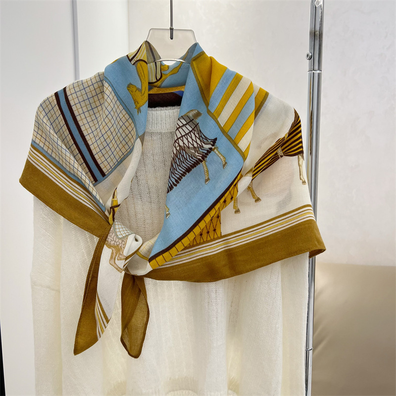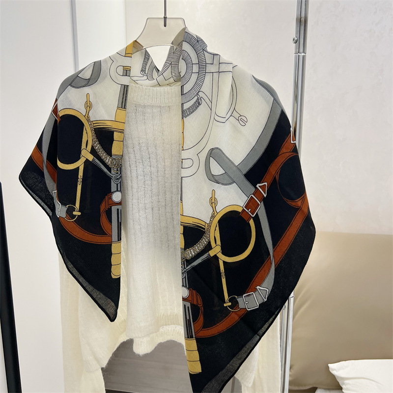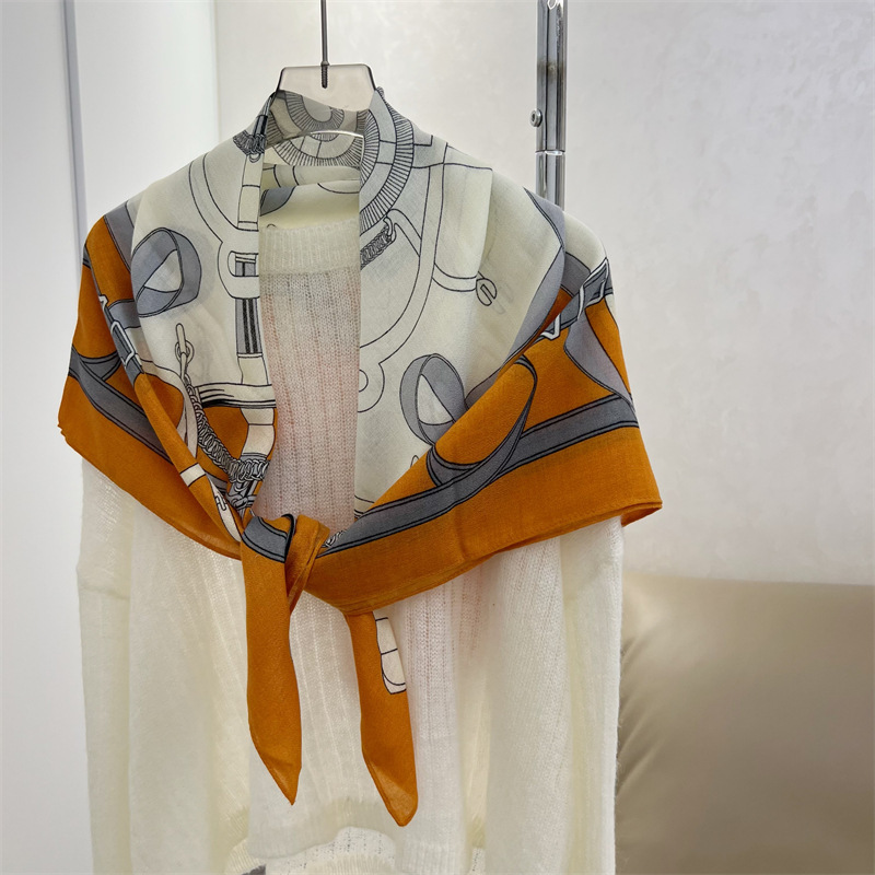 유럽과 미국의 가을과 겨울 새로운면과 린넨 느낌 90cm 스퀘어 스카프 여성 서양식 올 매치 숄리 올 매치 여행 스카프 비치 타월스토어 가기