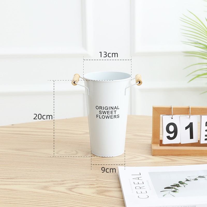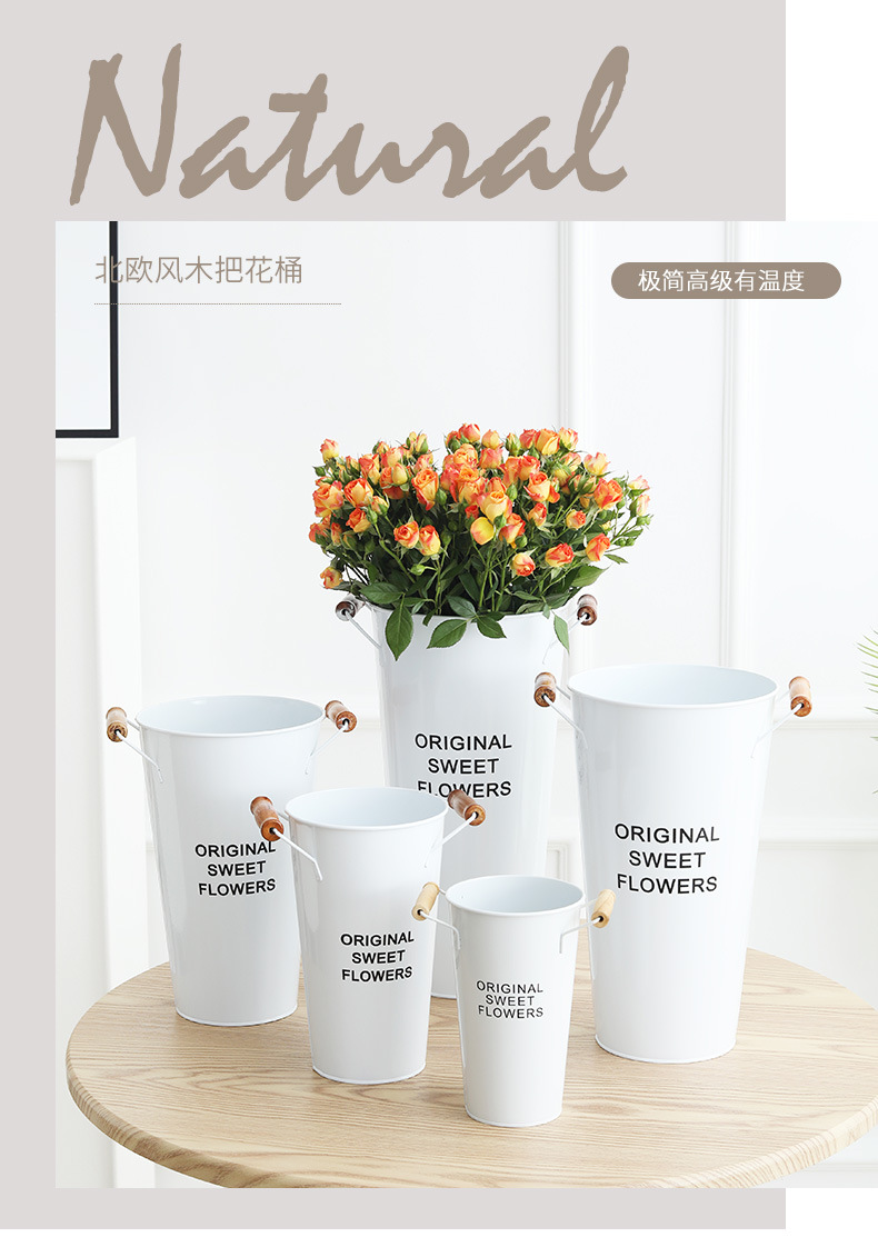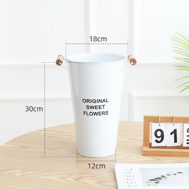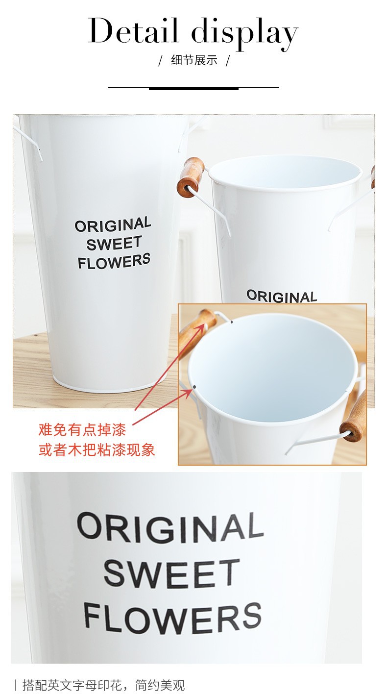 흰색 나무 손잡이 꽃 양동이 별이 빛나는 말린 꽃꽂이 철 꽃 양동이 꽃 가게 수화 집 장식 철 꽃 양동이스토어 가기