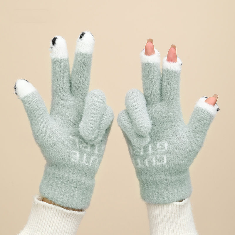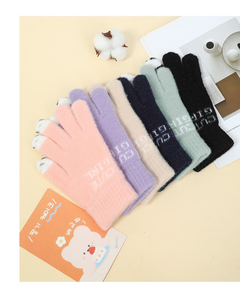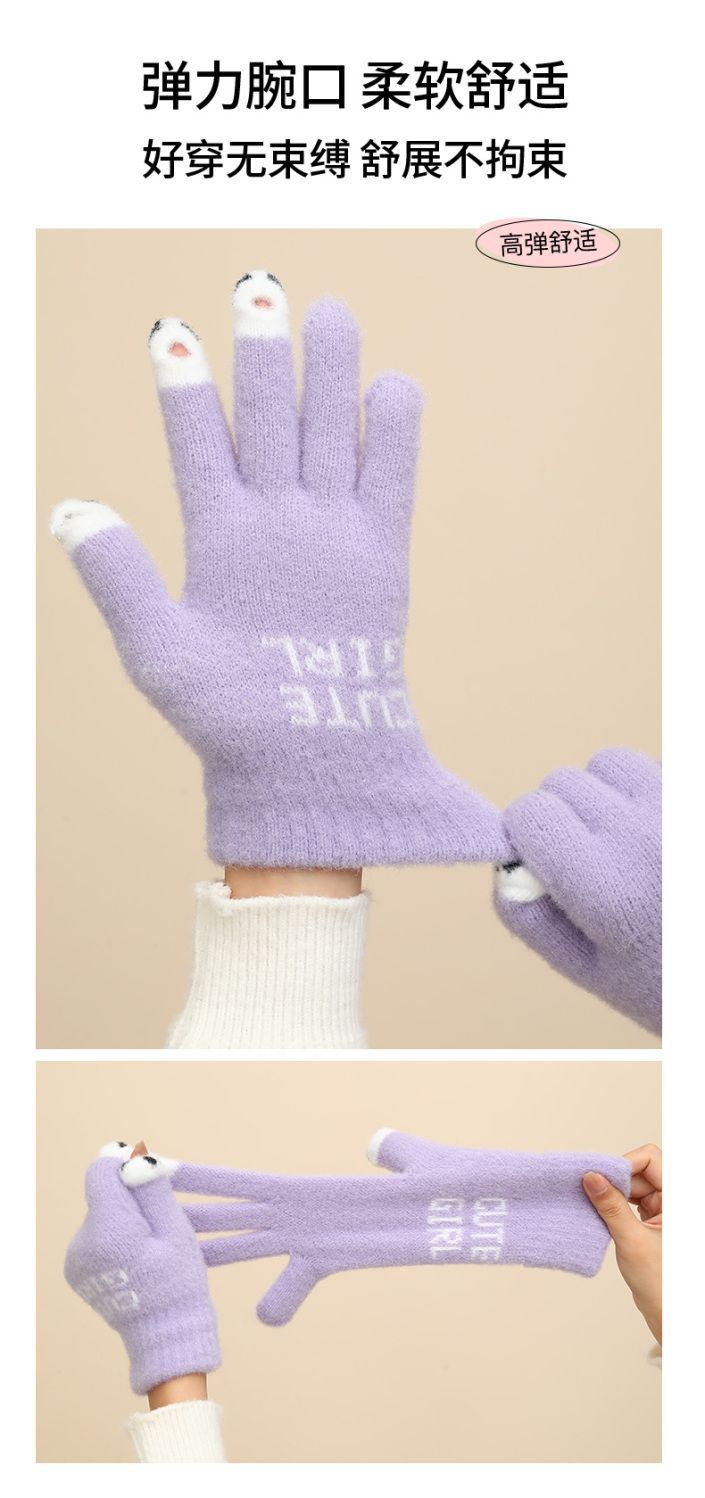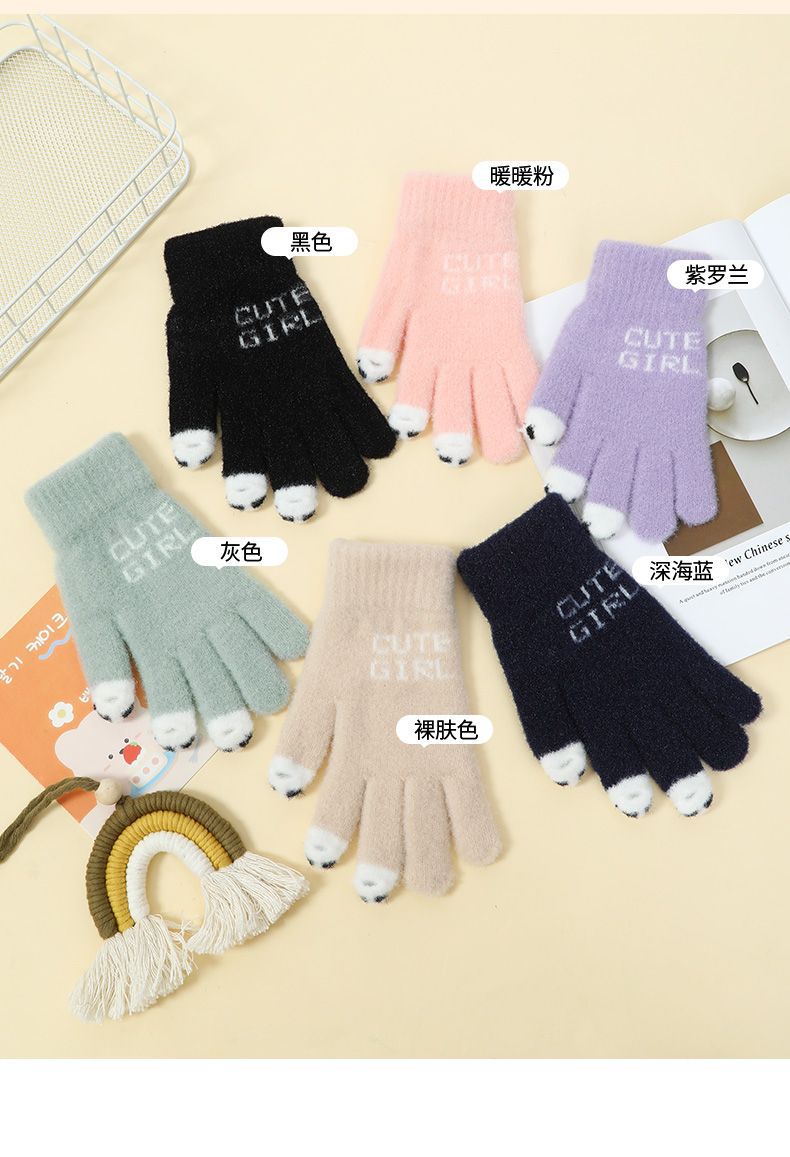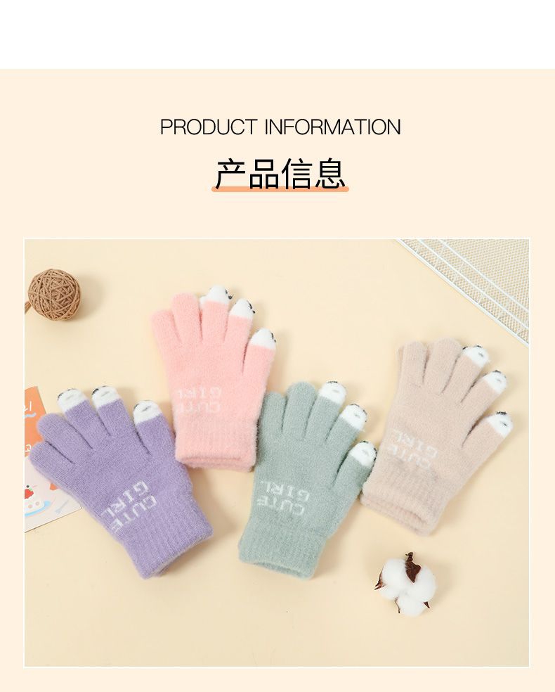 가을과 겨울 따뜻한 니트 장갑 소녀 학생 재미있는 표현 전체 손가락 장갑 어린이 아기 양모 장갑 부모-자식스토어 가기