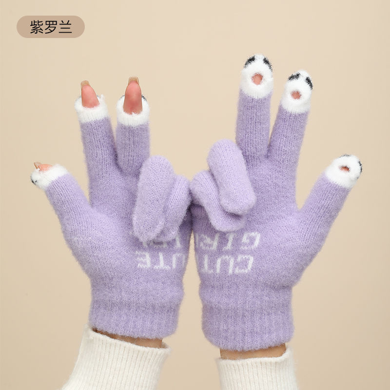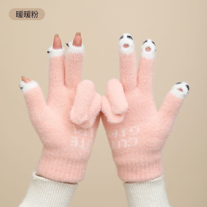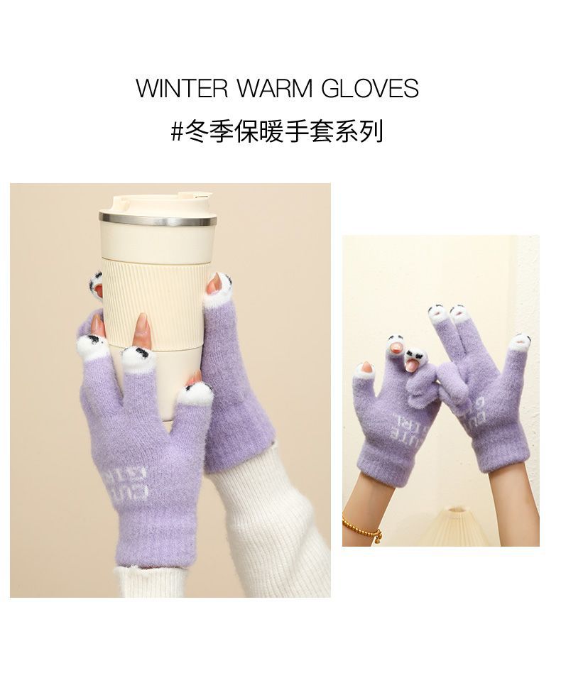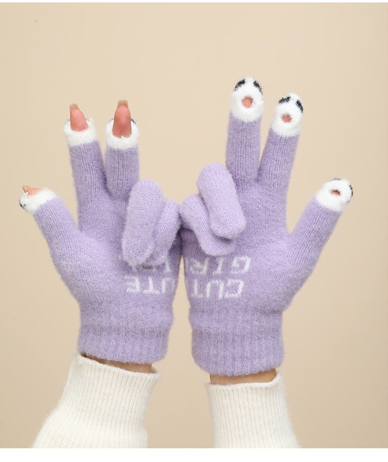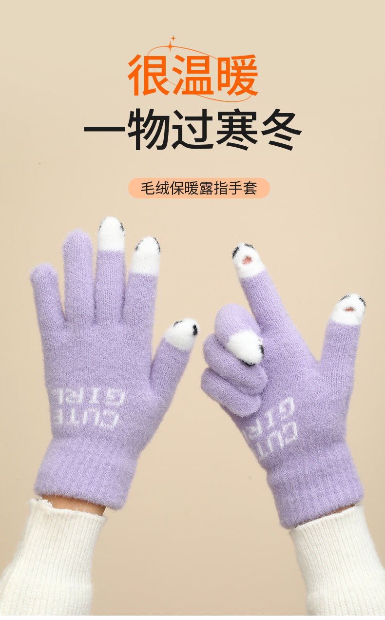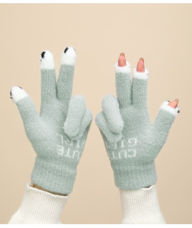 가을과 겨울 따뜻한 니트 장갑 소녀 학생 재미있는 표현 전체 손가락 장갑 어린이 아기 양모 장갑 부모-자식스토어 가기