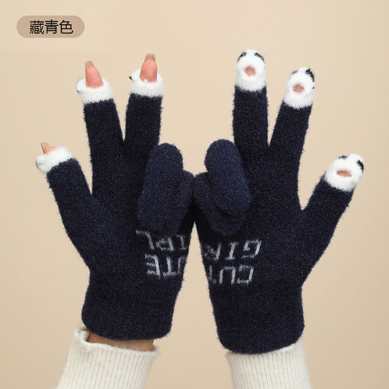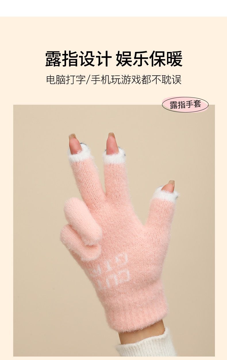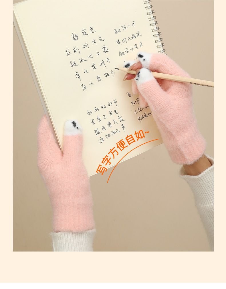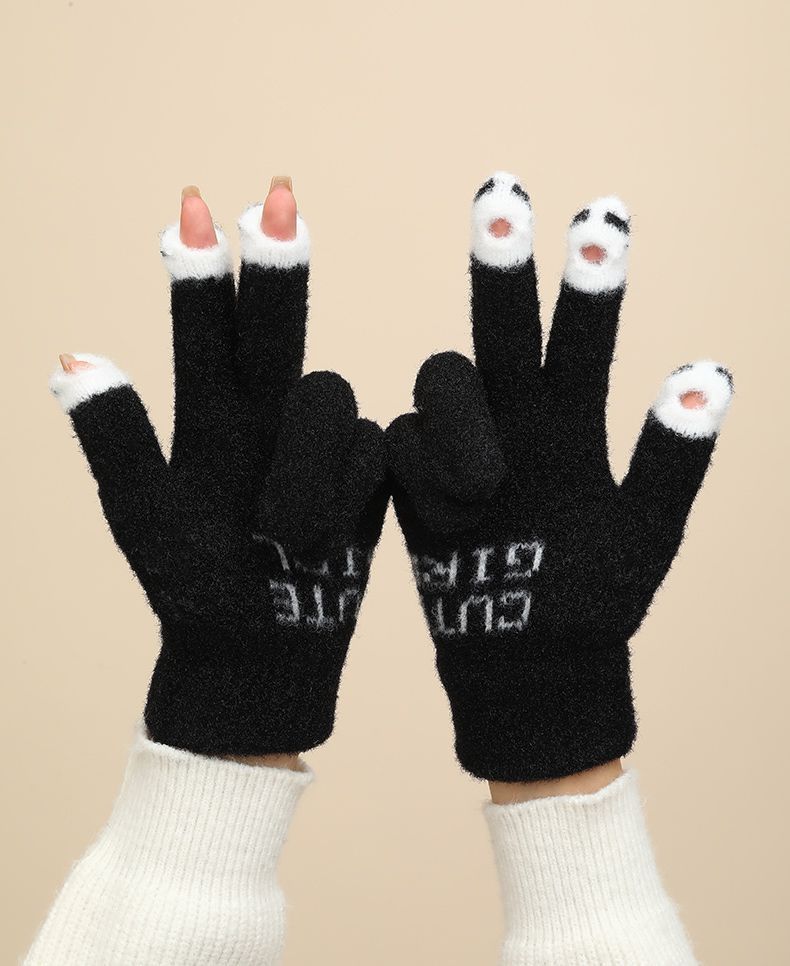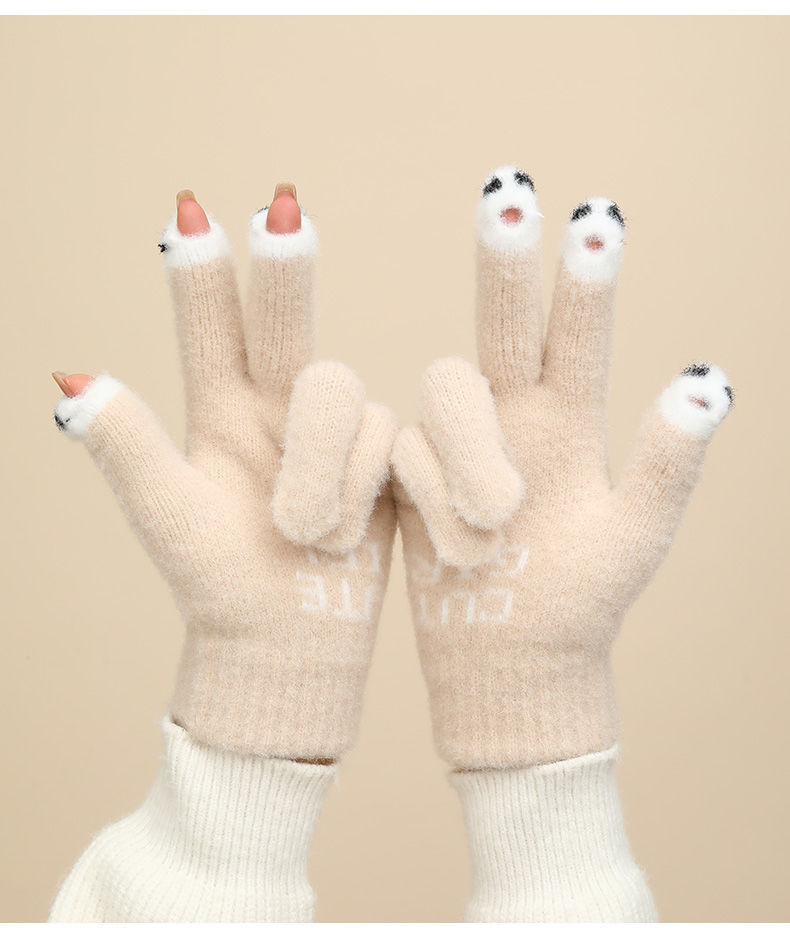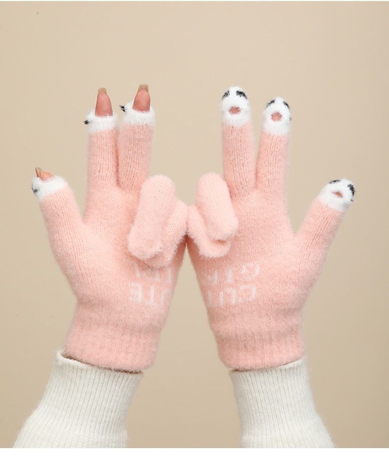 가을과 겨울 따뜻한 니트 장갑 소녀 학생 재미있는 표현 전체 손가락 장갑 어린이 아기 양모 장갑 부모-자식스토어 가기