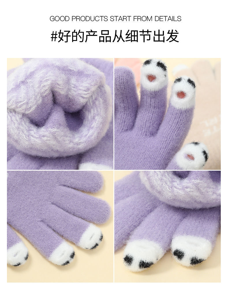 가을과 겨울 따뜻한 니트 장갑 소녀 학생 재미있는 표현 전체 손가락 장갑 어린이 아기 양모 장갑 부모-자식