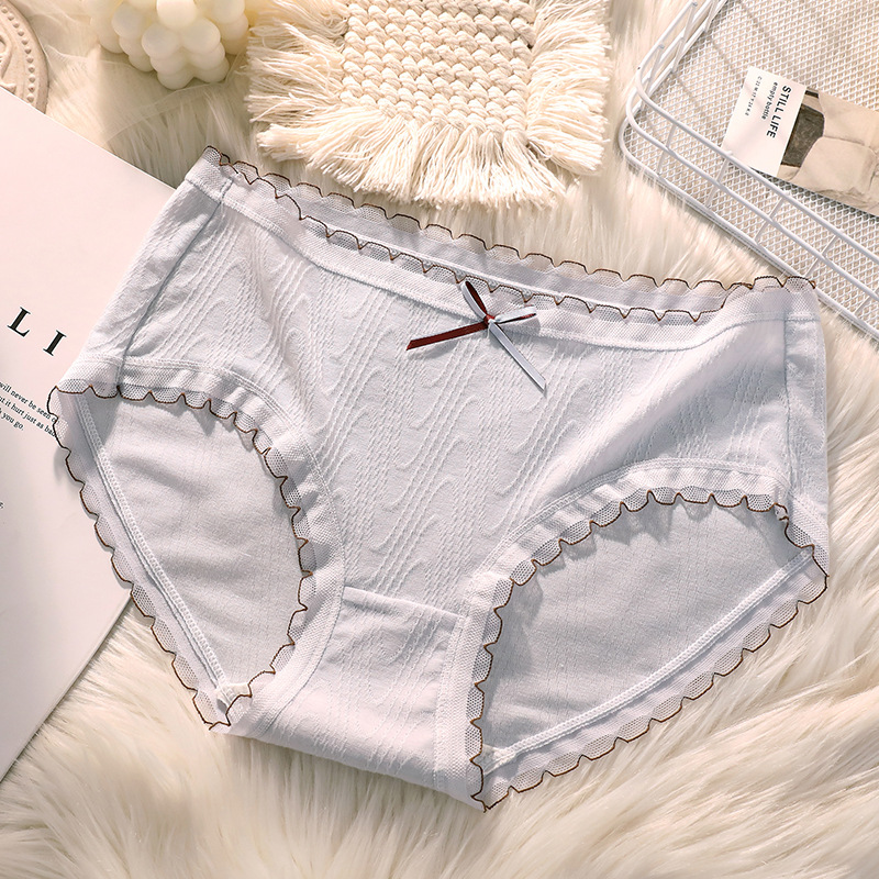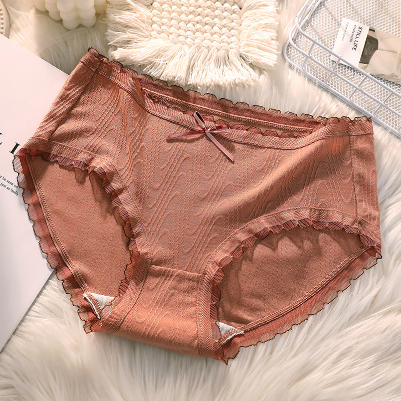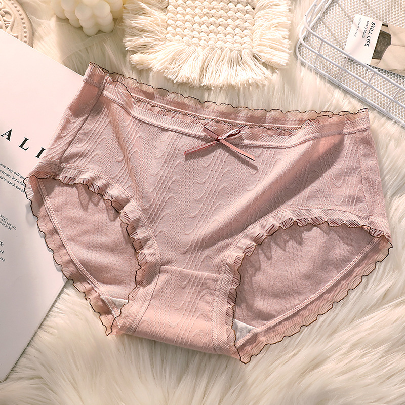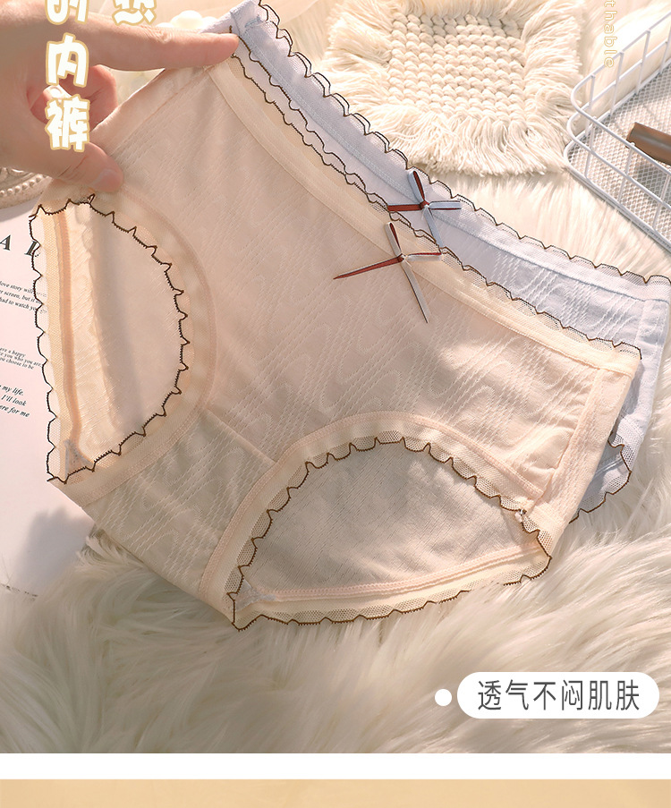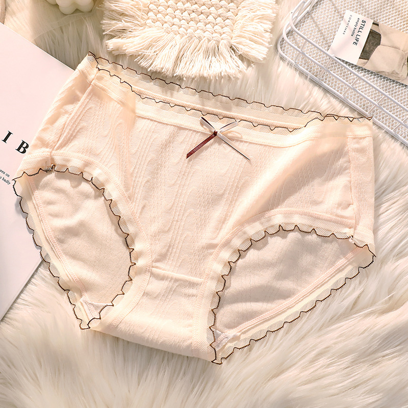 여성용 미드 웨이스트 코튼 가랑이 섹시한 일본 소녀의 원활한 통기성 순수 레이스 삼각형 반바지 머리스토어 가기
