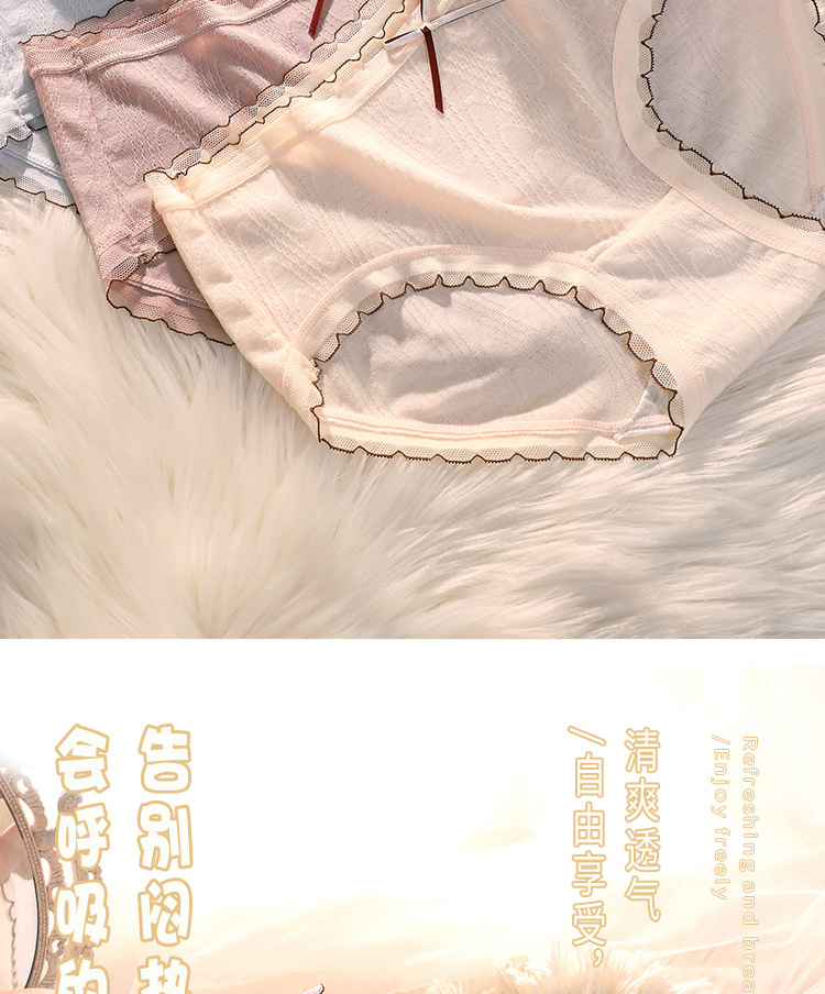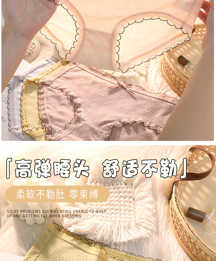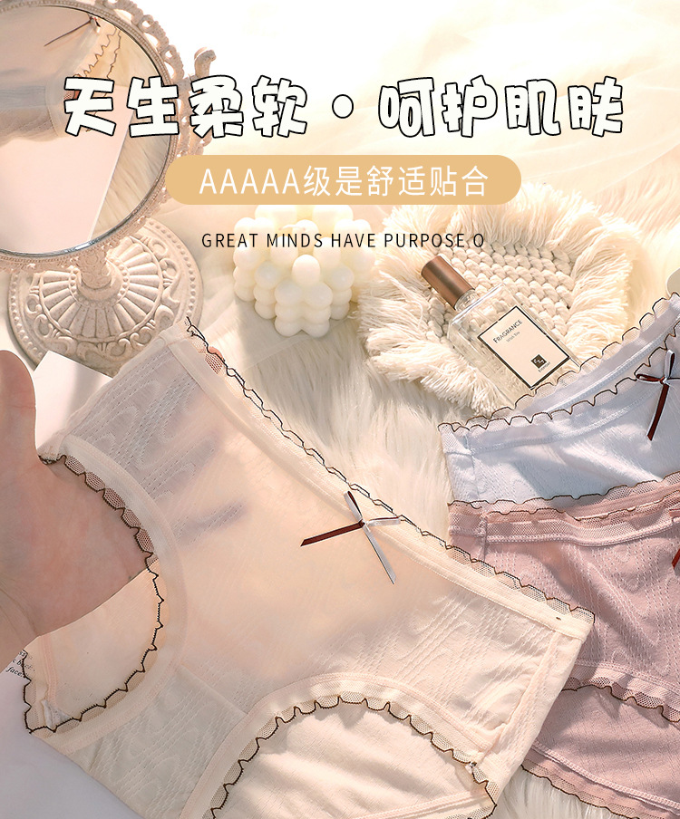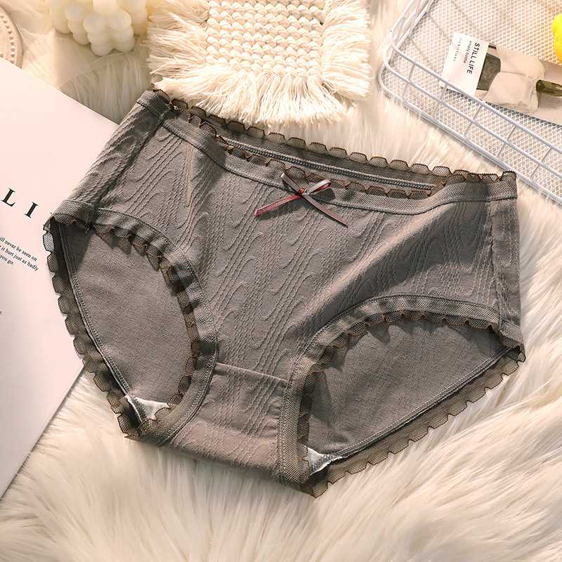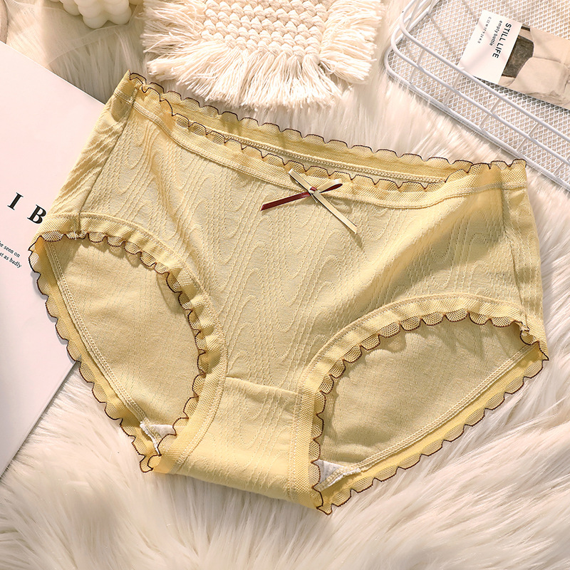 여성용 미드 웨이스트 코튼 가랑이 섹시한 일본 소녀의 원활한 통기성 순수 레이스 삼각형 반바지 머리스토어 가기