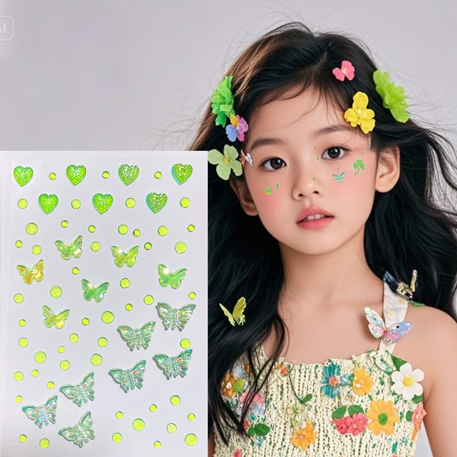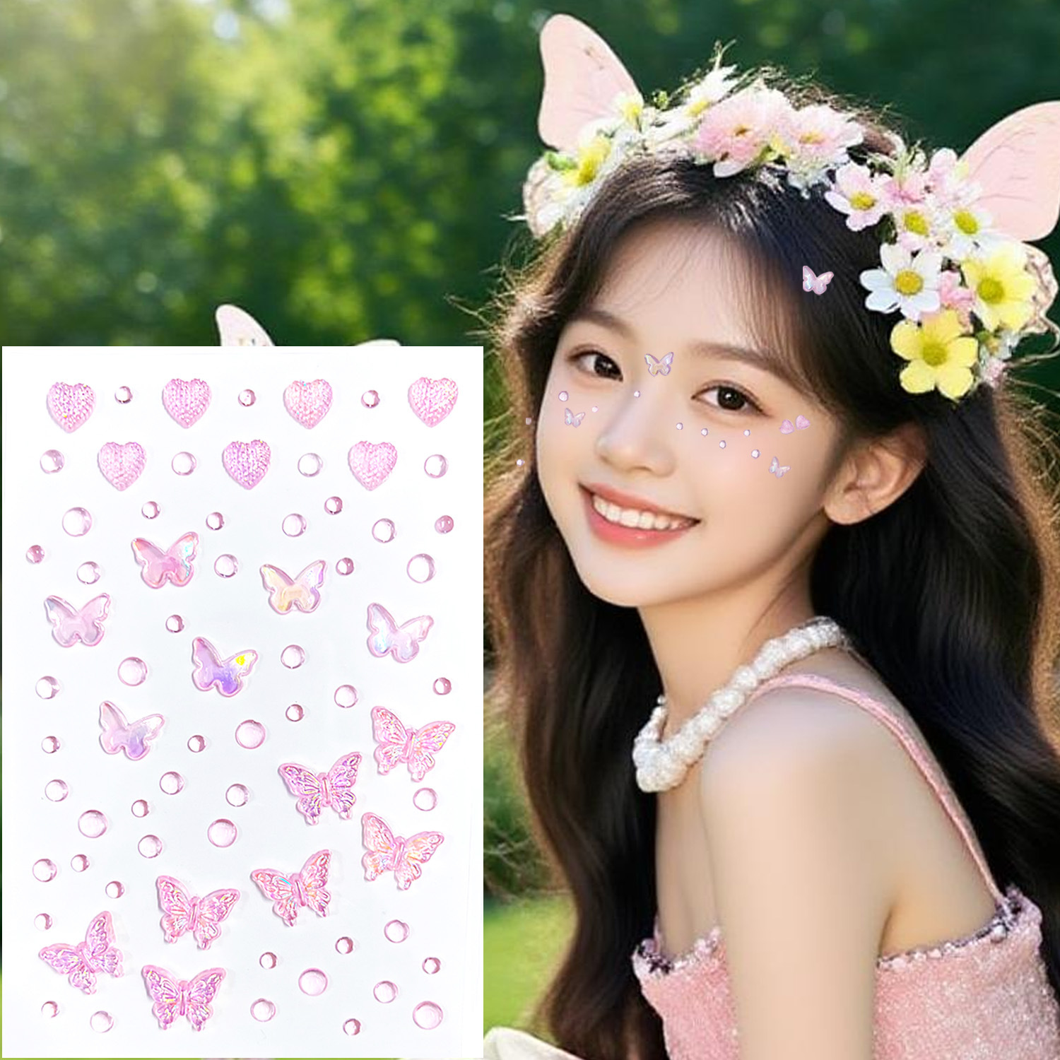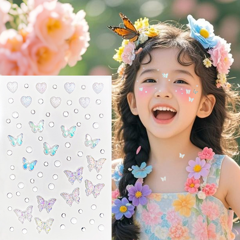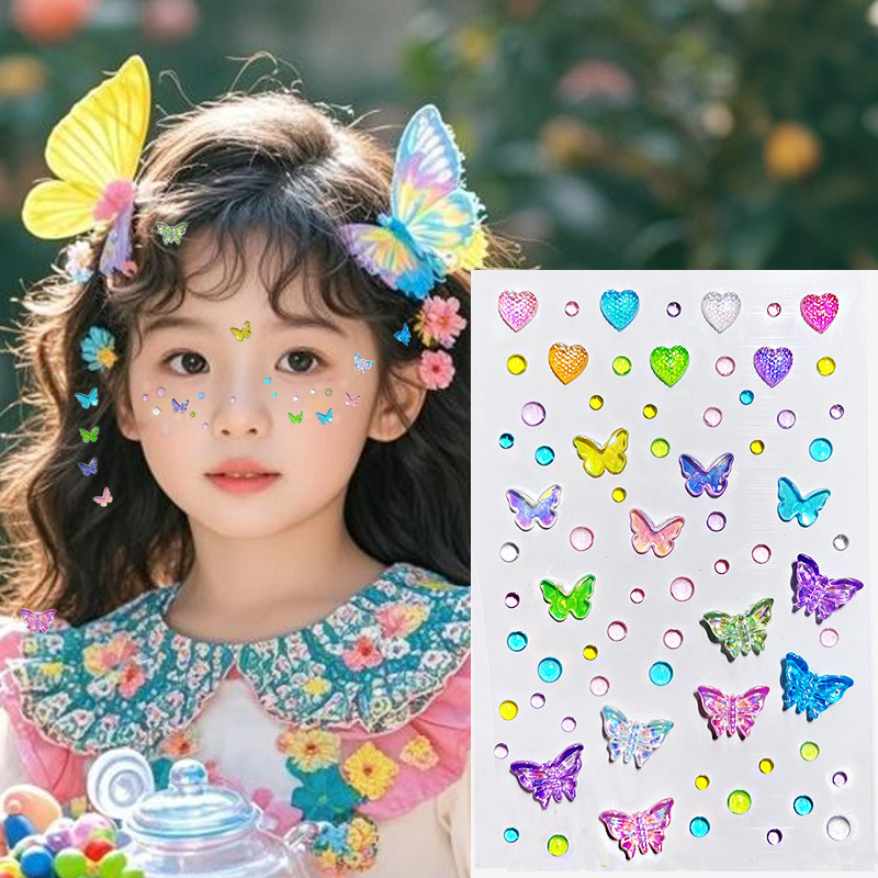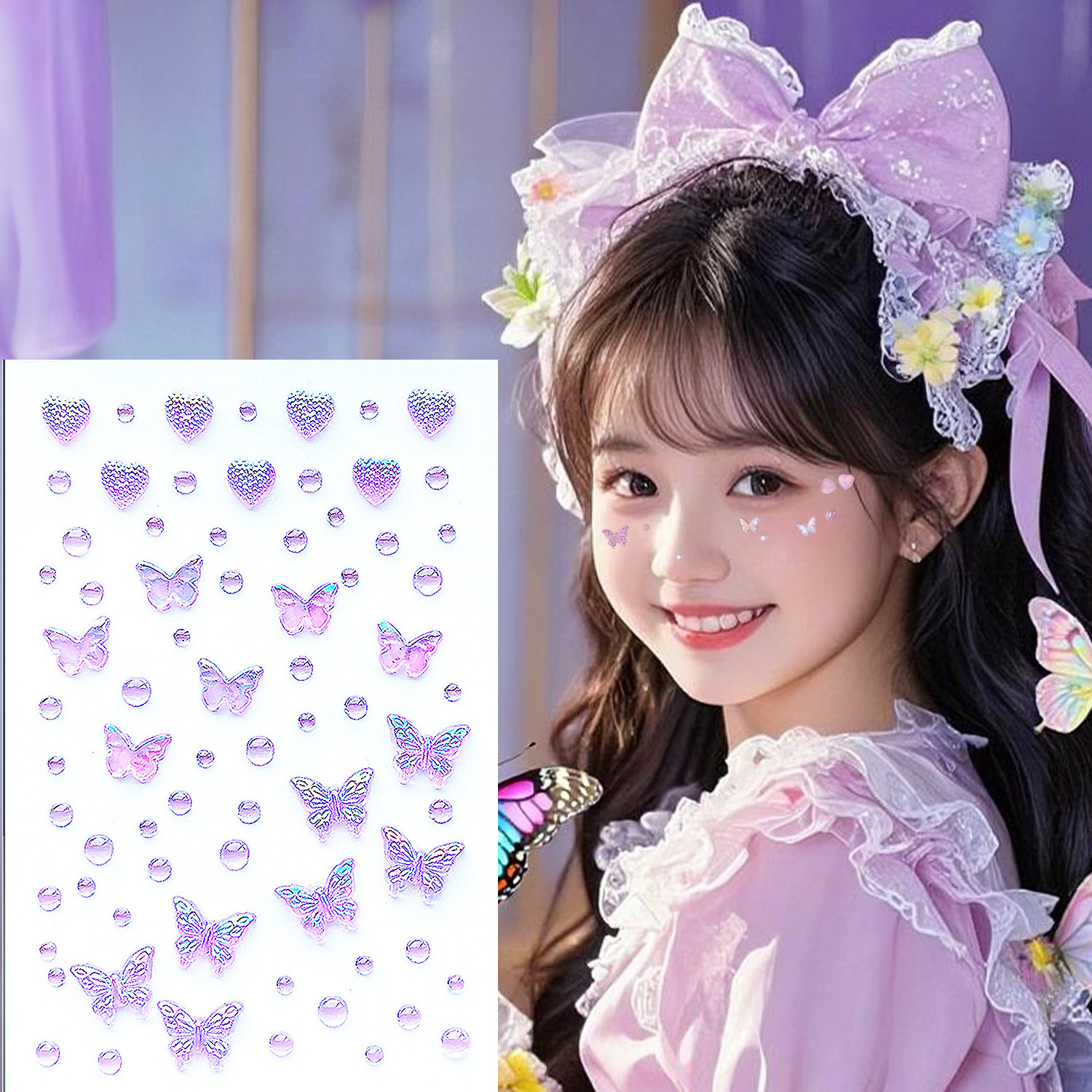 심포니 오로라 나비 얼음 투명 나비 보석 크리스탈 다이아몬드 스티커 소녀 드레스 반짝 이는 입체 얼굴 장식 색상
