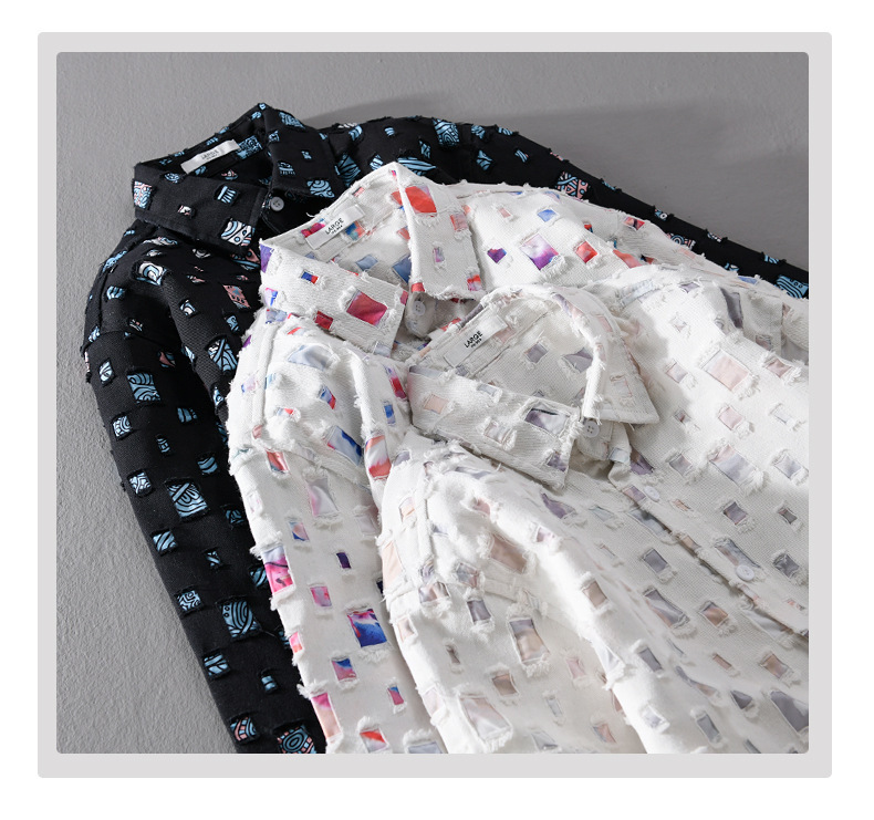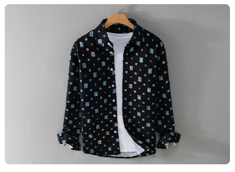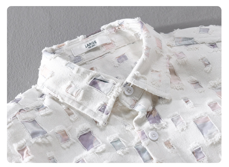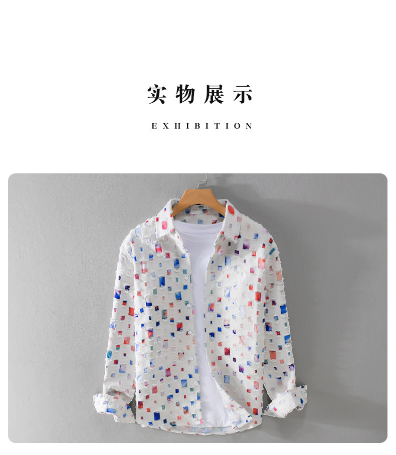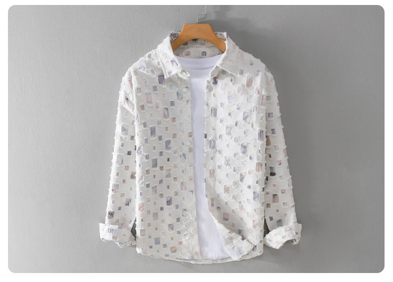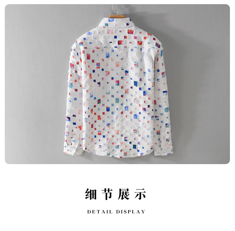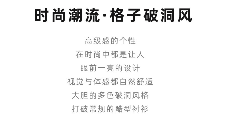 MRMING 디자인 감각 격자 무늬 구멍 바느질 긴 소매 셔츠 빈 패션 코튼 셔츠 재킷 남성복