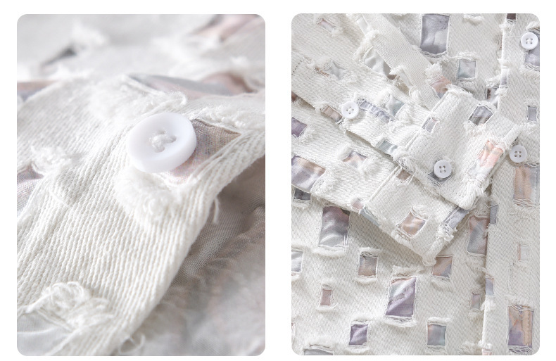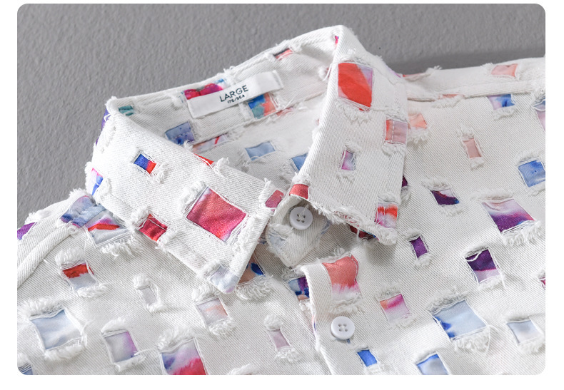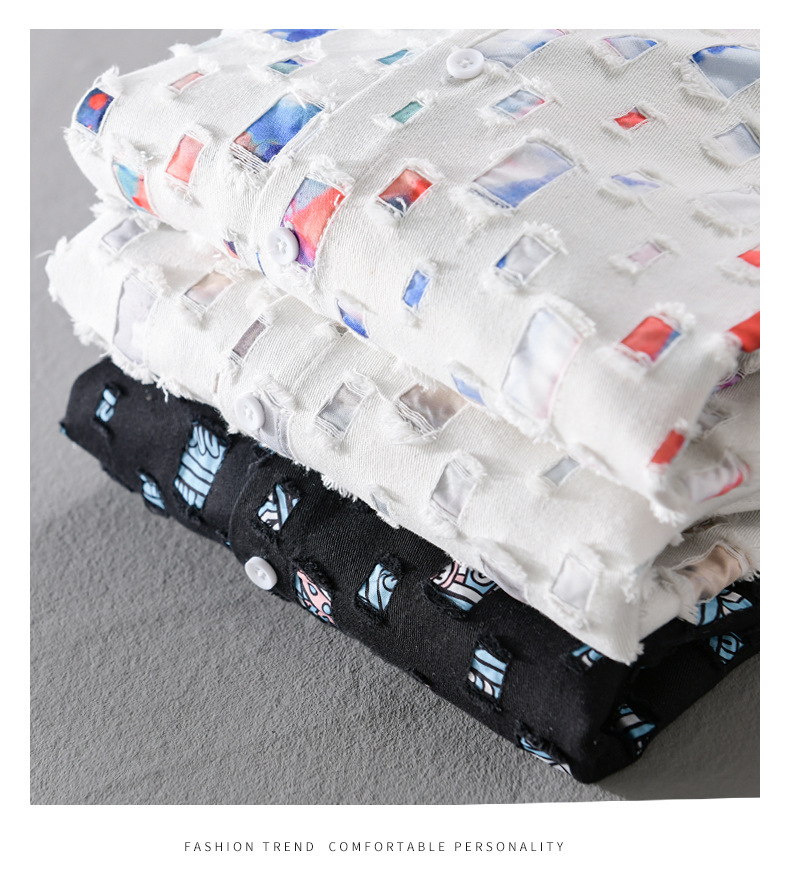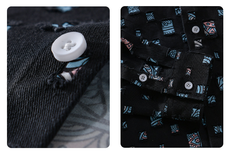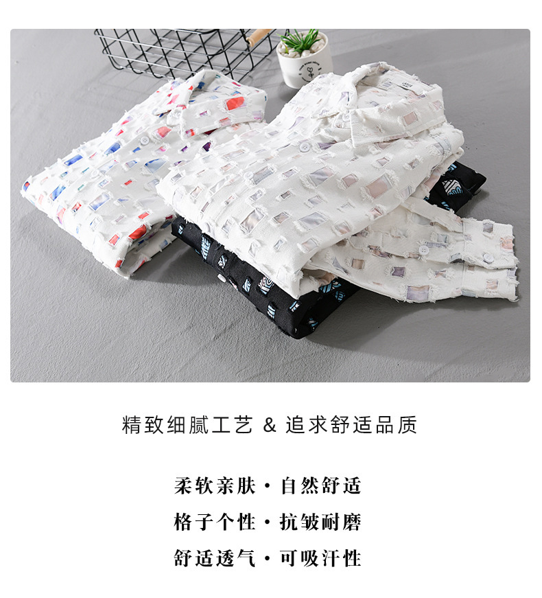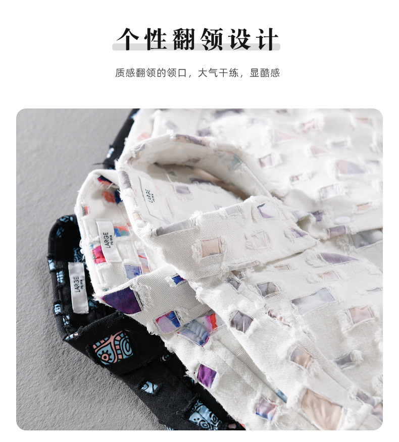 MRMING 디자인 감각 격자 무늬 구멍 바느질 긴 소매 셔츠 빈 패션 코튼 셔츠 재킷 남성복