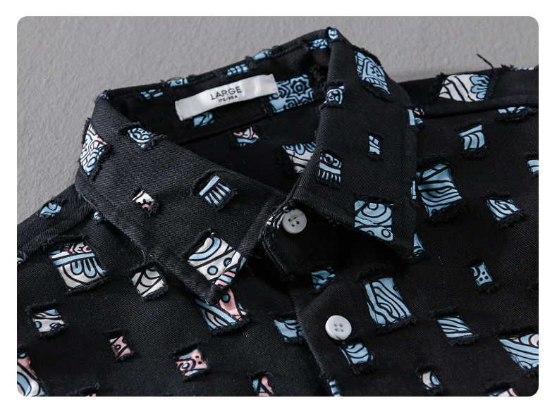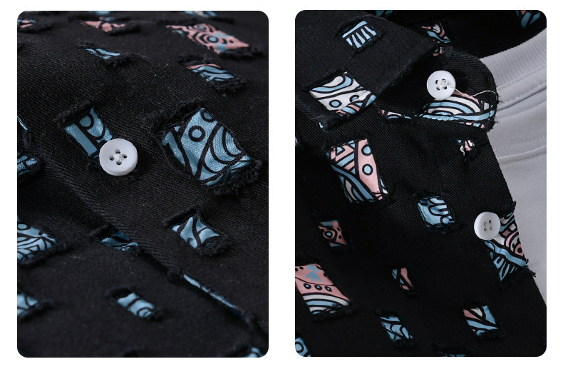 MRMING 디자인 감각 격자 무늬 구멍 바느질 긴 소매 셔츠 빈 패션 코튼 셔츠 재킷 남성복스토어 가기