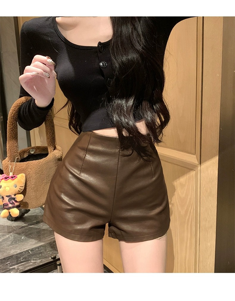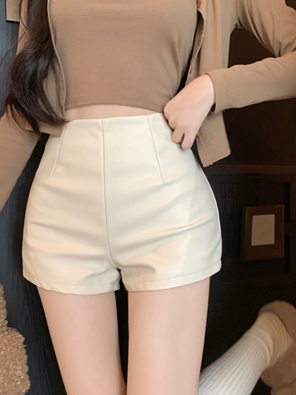 블랙 가죽 반바지 여성용 2025 신상 가을 핫팬츠 섹시한 하이웨이스트 슬림핏 타이트 A라인 캐주얼 팬츠