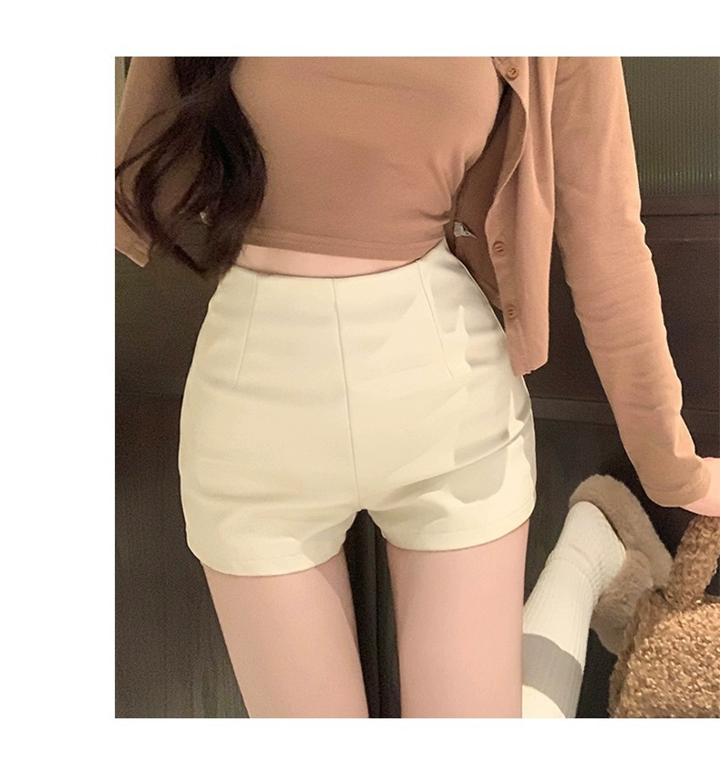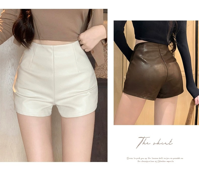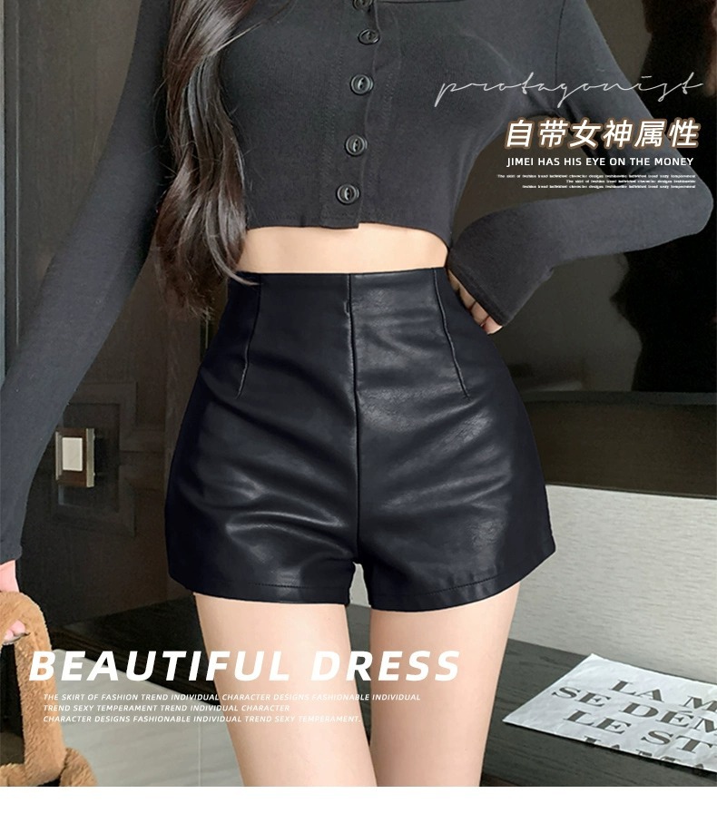 블랙 가죽 반바지 여성용 2025 신상 가을 핫팬츠 섹시한 하이웨이스트 슬림핏 타이트 A라인 캐주얼 팬츠스토어 가기