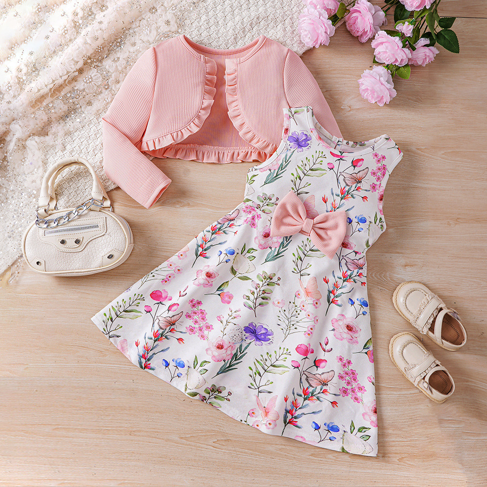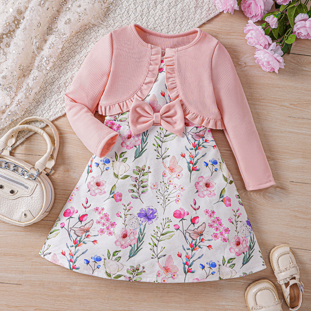 EW 대외 무역 아동복 어린이 새 소녀 봄과 가을 인쇄 원피스 니트 카디건 세트 TZ828-C