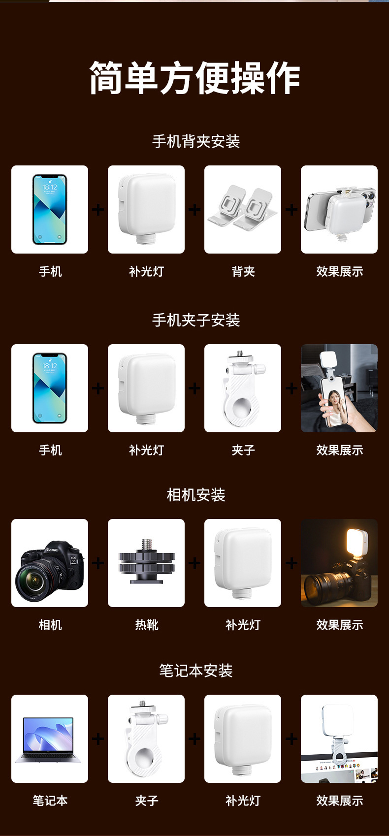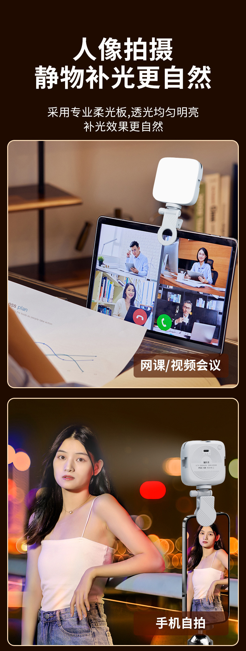 셀카 필 라이트 미니 휴대 전화 휴대용 SLR 카메라 사진 및 비디오 뷰티 LED 포켓 필 라이트
