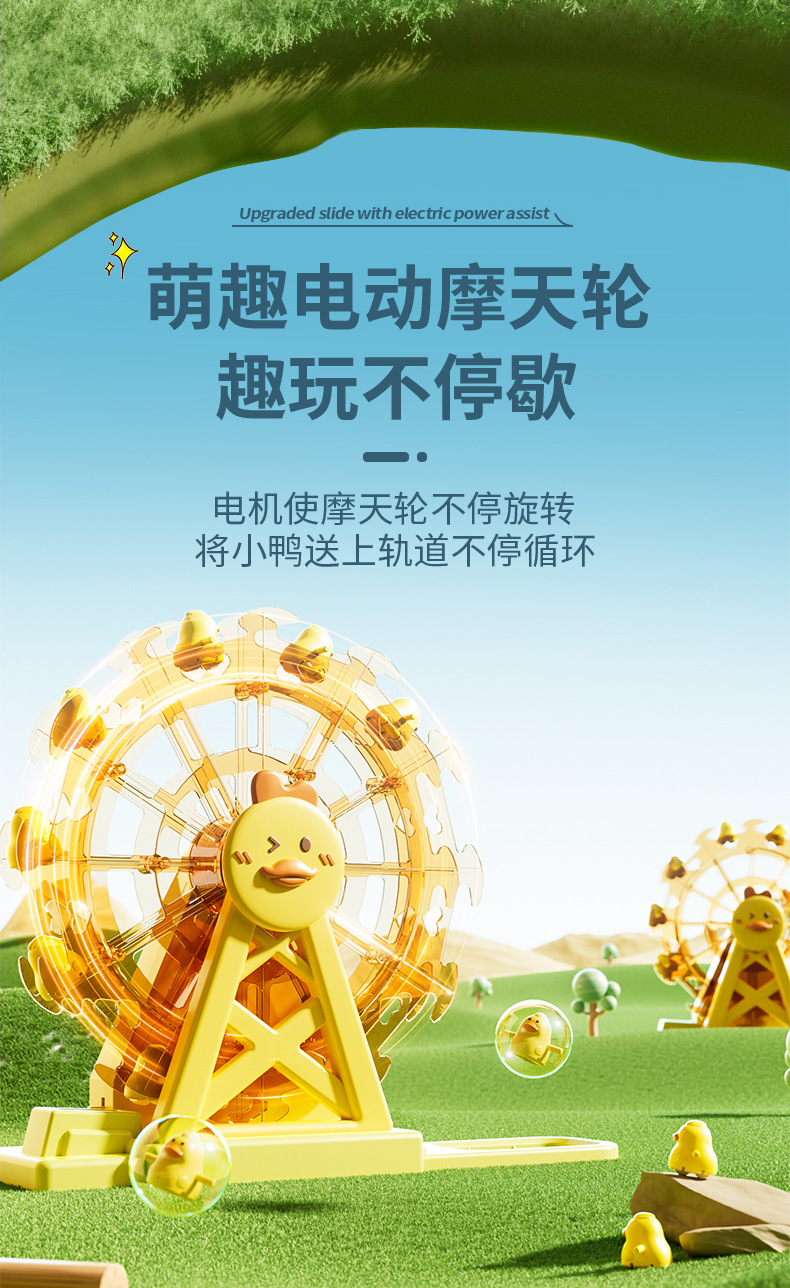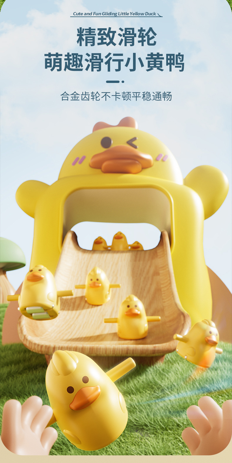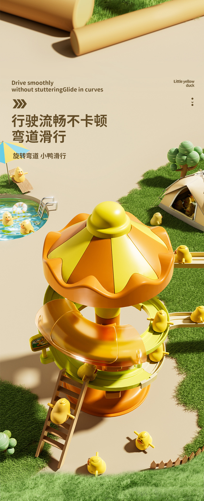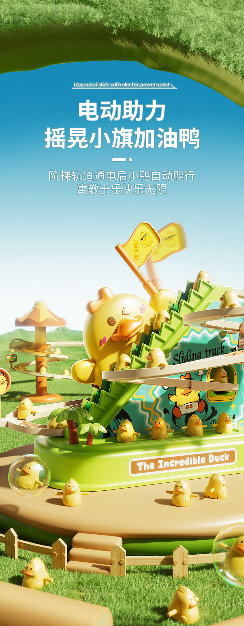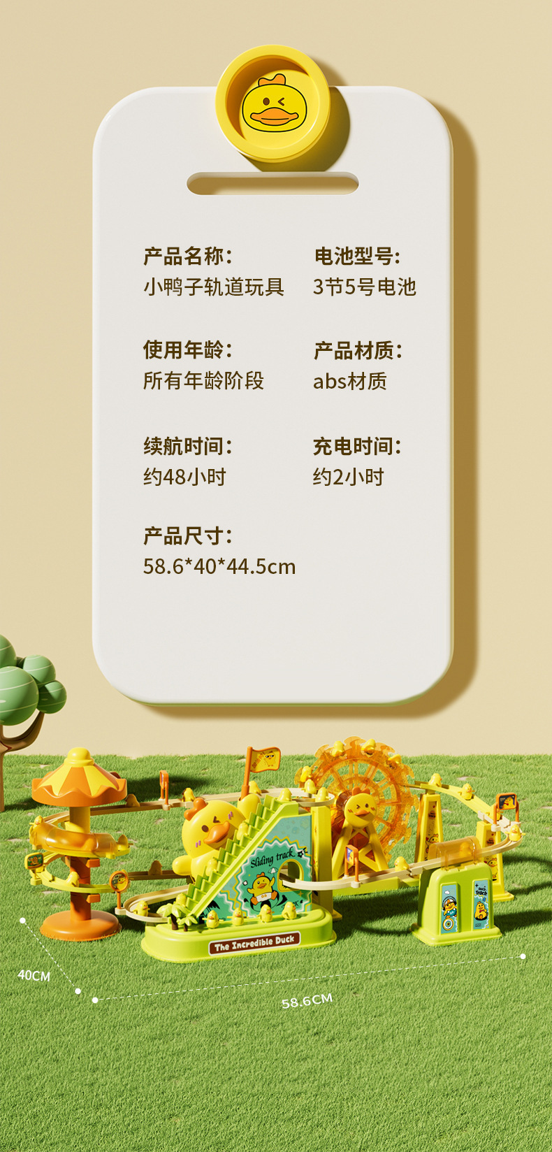 급유 오리 어린이 교육 트랙 장난감 회전 슬라이드 전기 노란색 오리 등반 계단 음악 컬러 박스 도매스토어 가기
