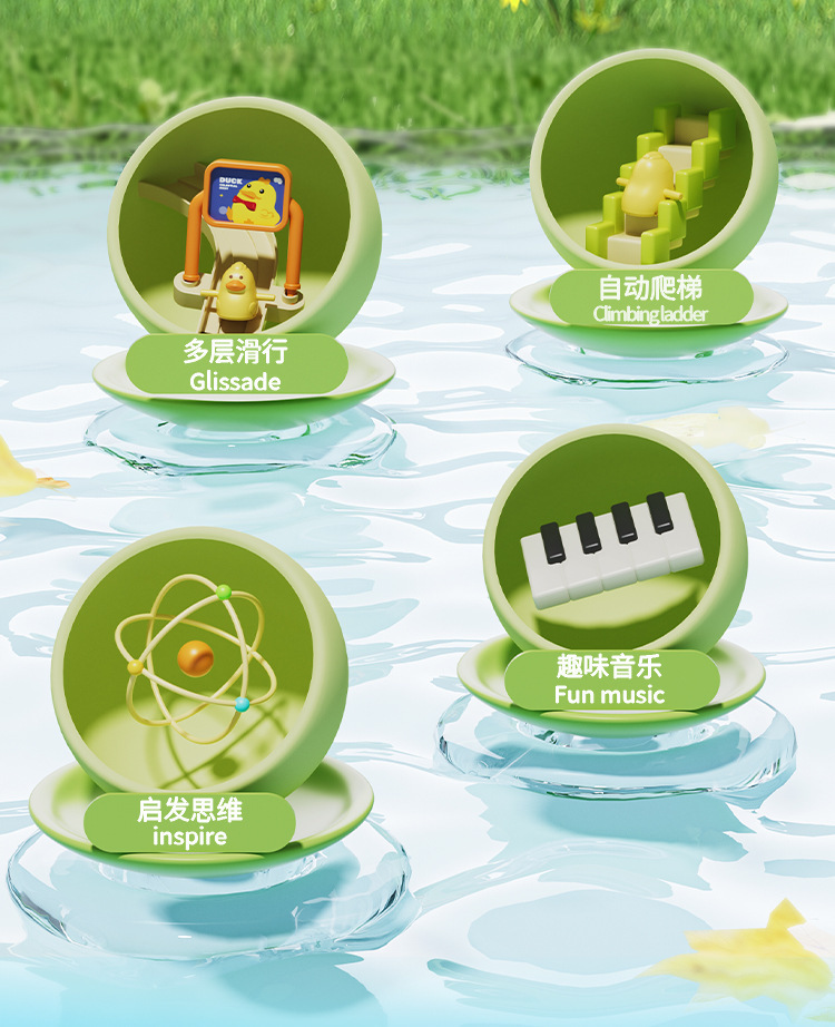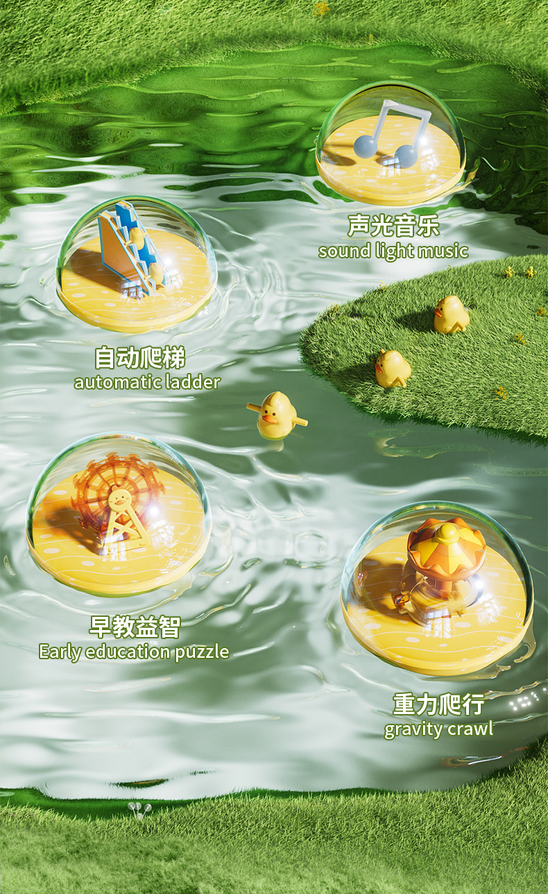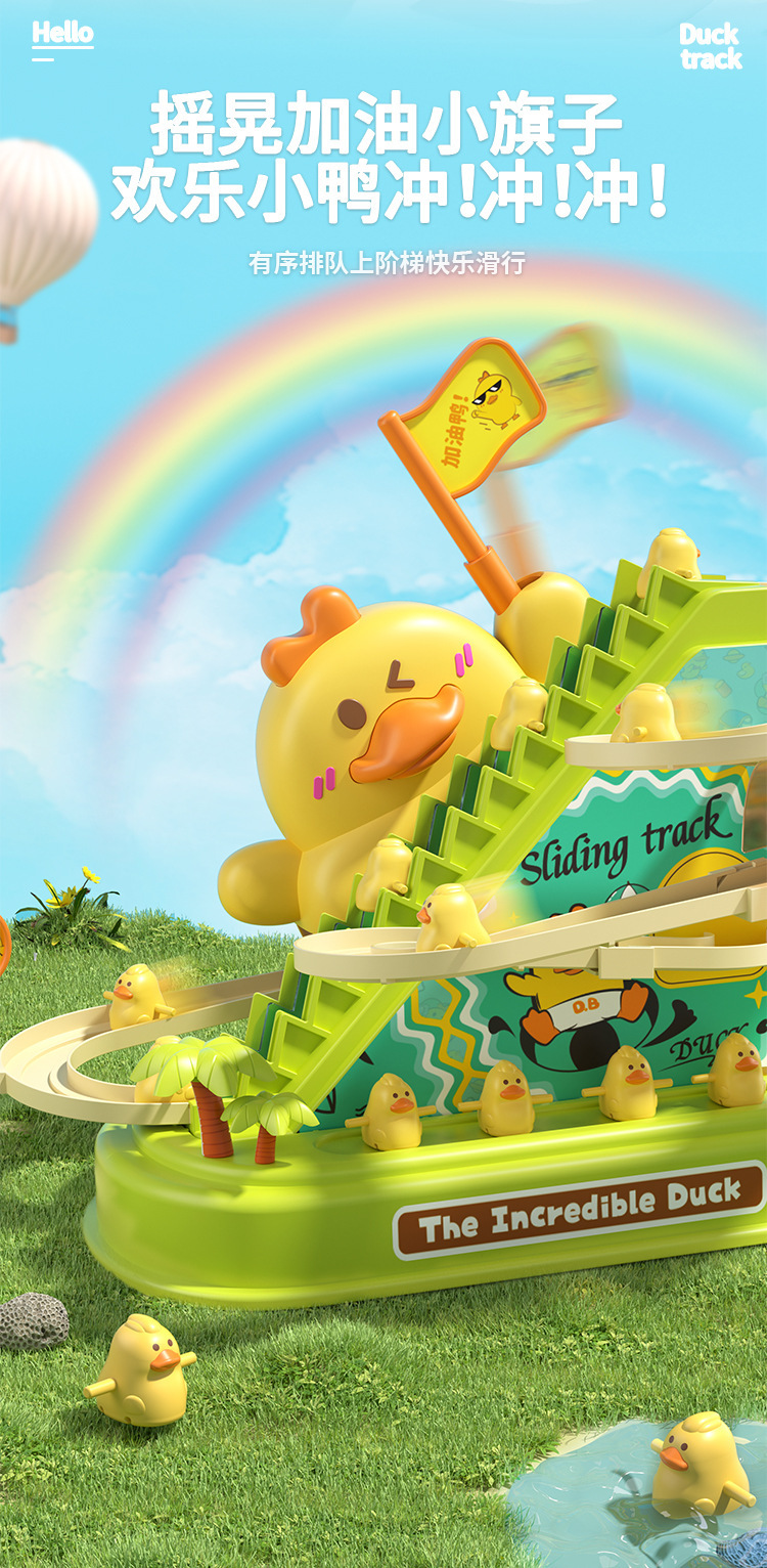 급유 오리 어린이 교육 트랙 장난감 회전 슬라이드 전기 노란색 오리 등반 계단 음악 컬러 박스 도매