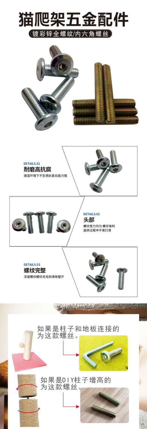 고양이 클라이밍 프레임용 금속 부품, 고양이 스크래쳐 내부 육각형 단일 헤드 나사, 양두 나사, M8M10 플랫 헤드 나사, 8mm10스토어 가기