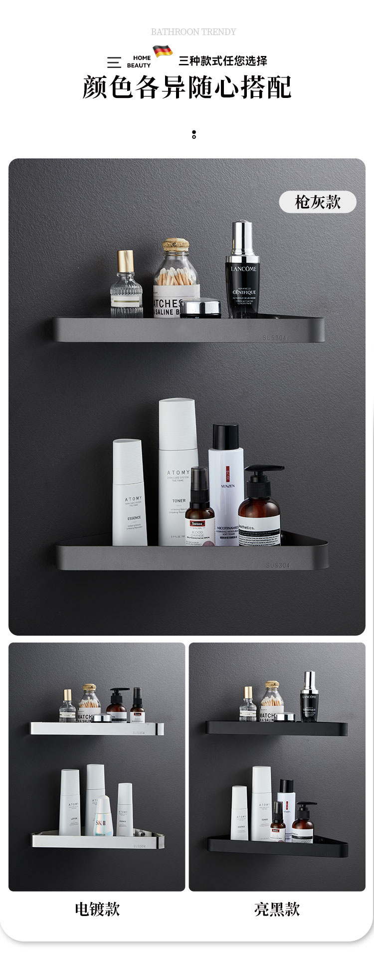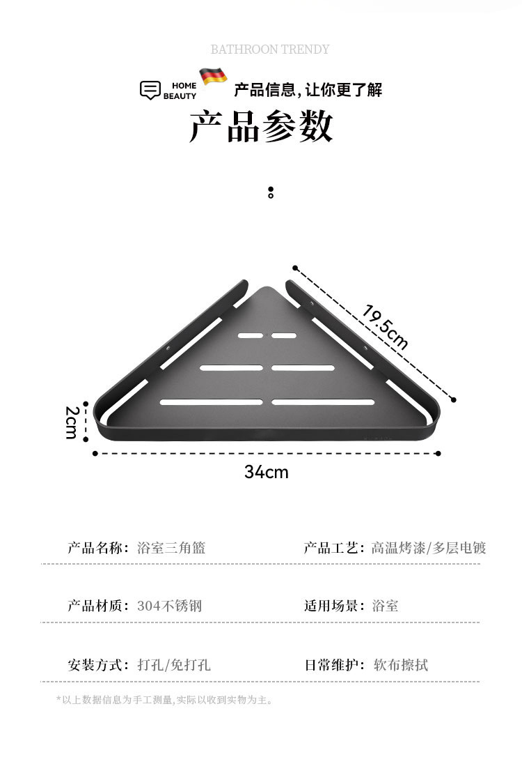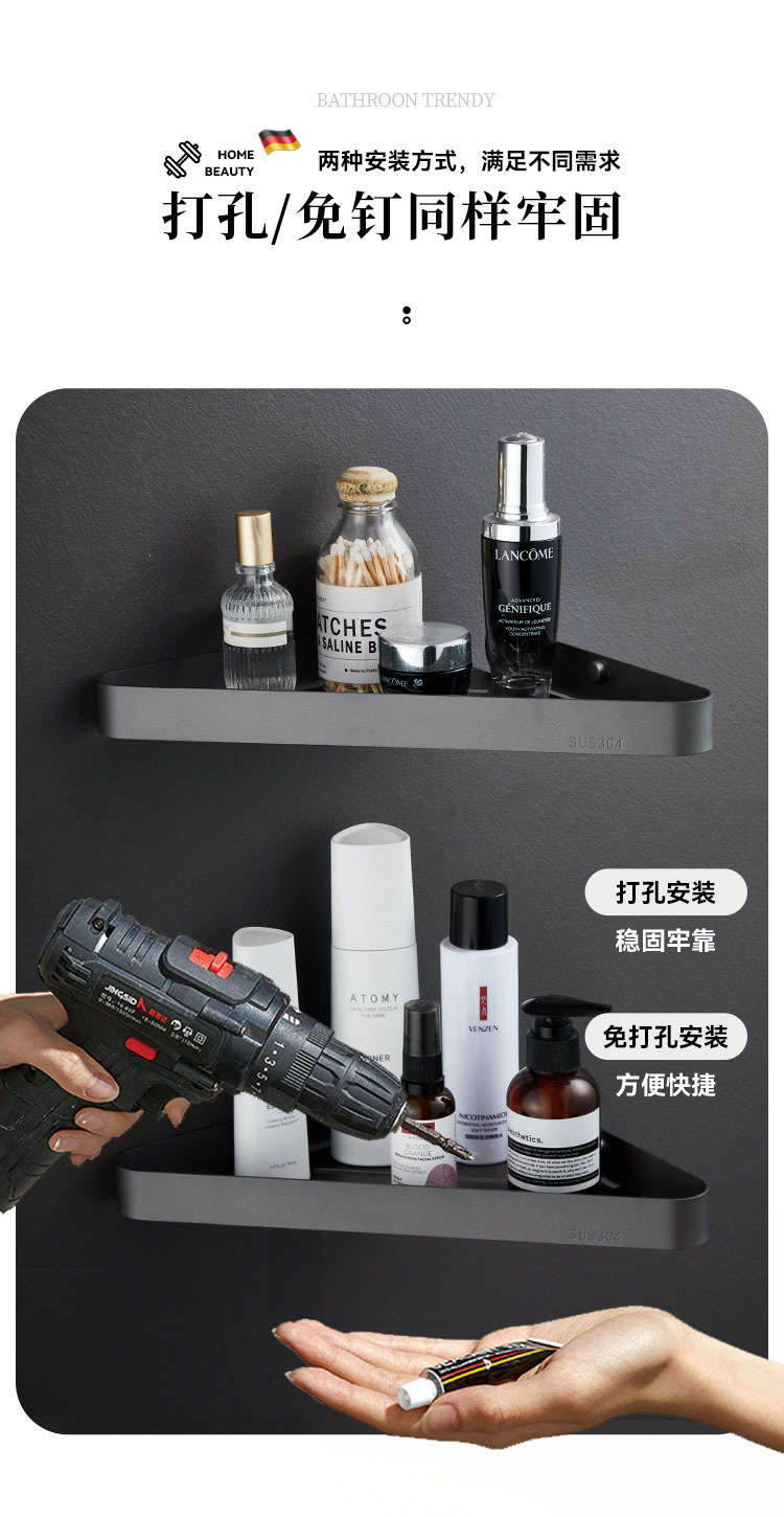 304 스테인레스 스틸 삼각형 바구니 호텔 엔지니어링 욕실 스토리지 랙 욕실 코너 랙 펀칭없이 플랫 스토리지 랙