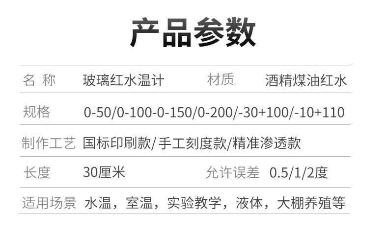 빨간 물 온도계 가정용 실내 유리 알코올 실험실 산업 농업 온실 양식 물 온도 측정기
