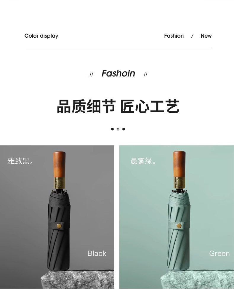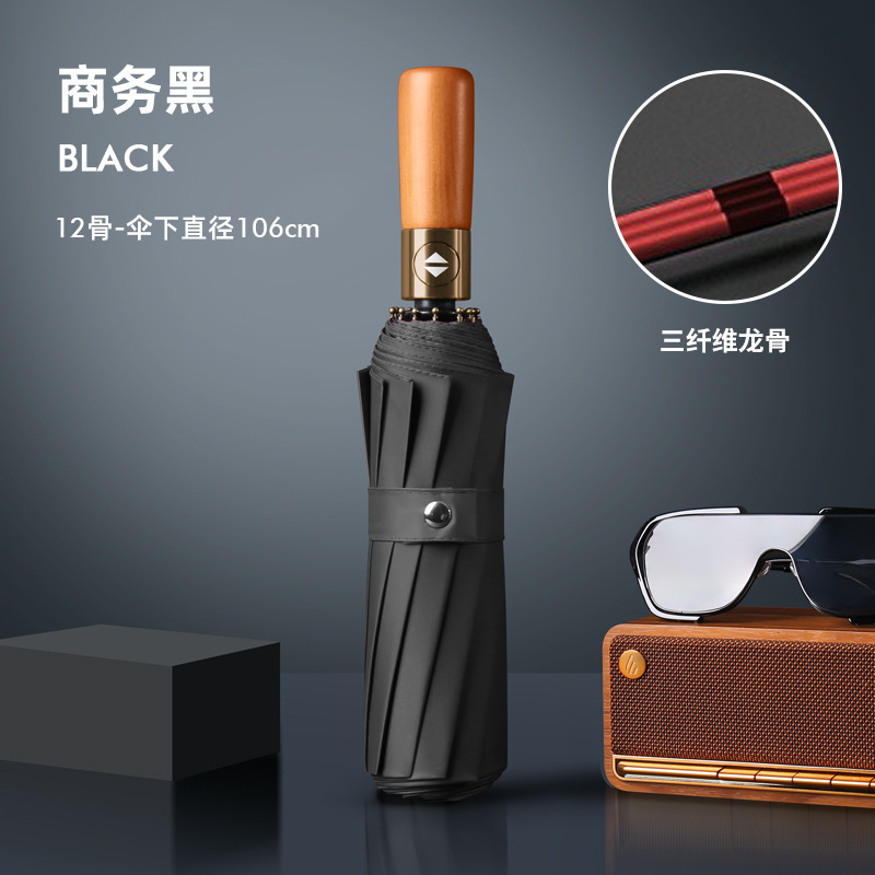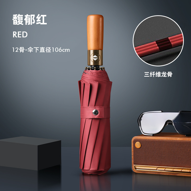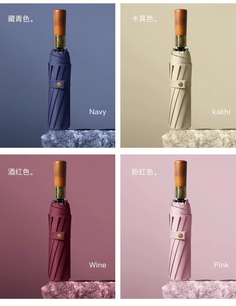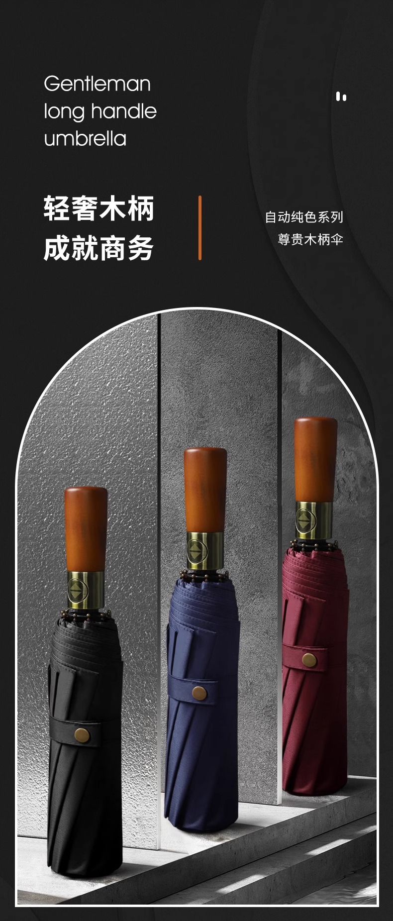 70% off 원목 청동 브러시드 우산 자외선 차단 방풍 방수 남녀 자동 우산 비즈니스 방풍 폭우 방지