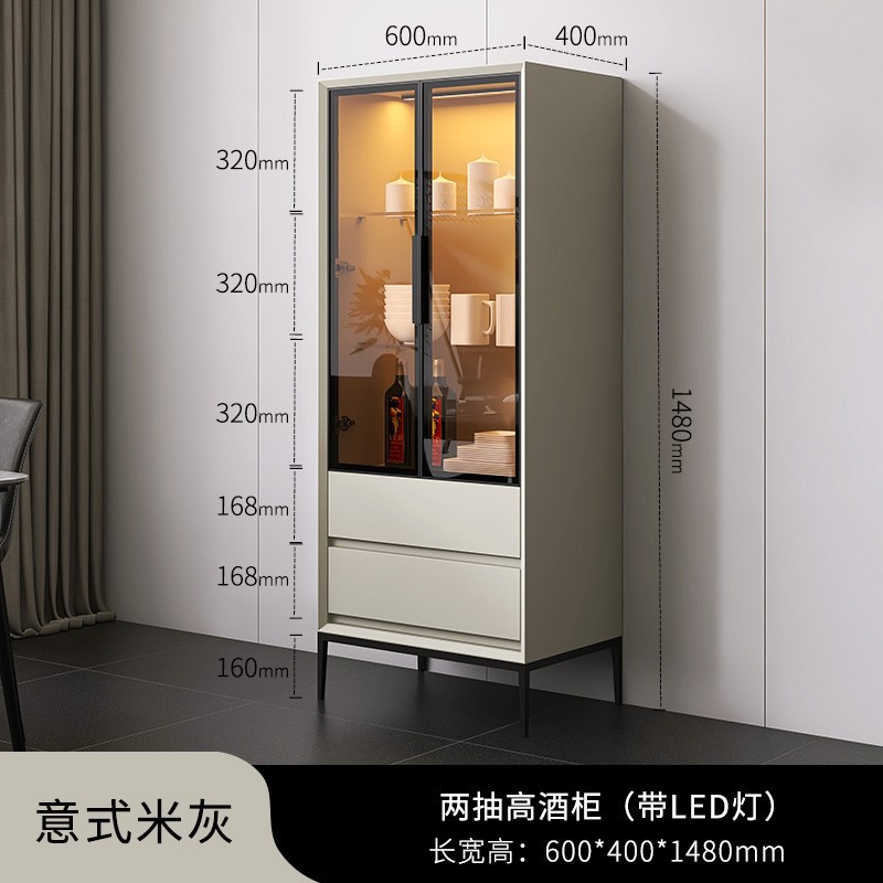 • 0.6m 더블 서랍 높은 와인 캐비닛 (이탈리아 베이지 그레이)