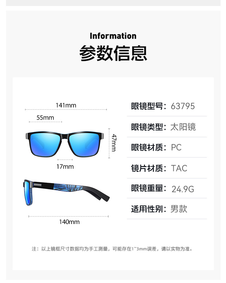 D518 유럽과 미국의 사각형 선글라스 남성용 트렌디 한 편광 안경 패션 스포츠 운전 선글라스 도매스토어 가기