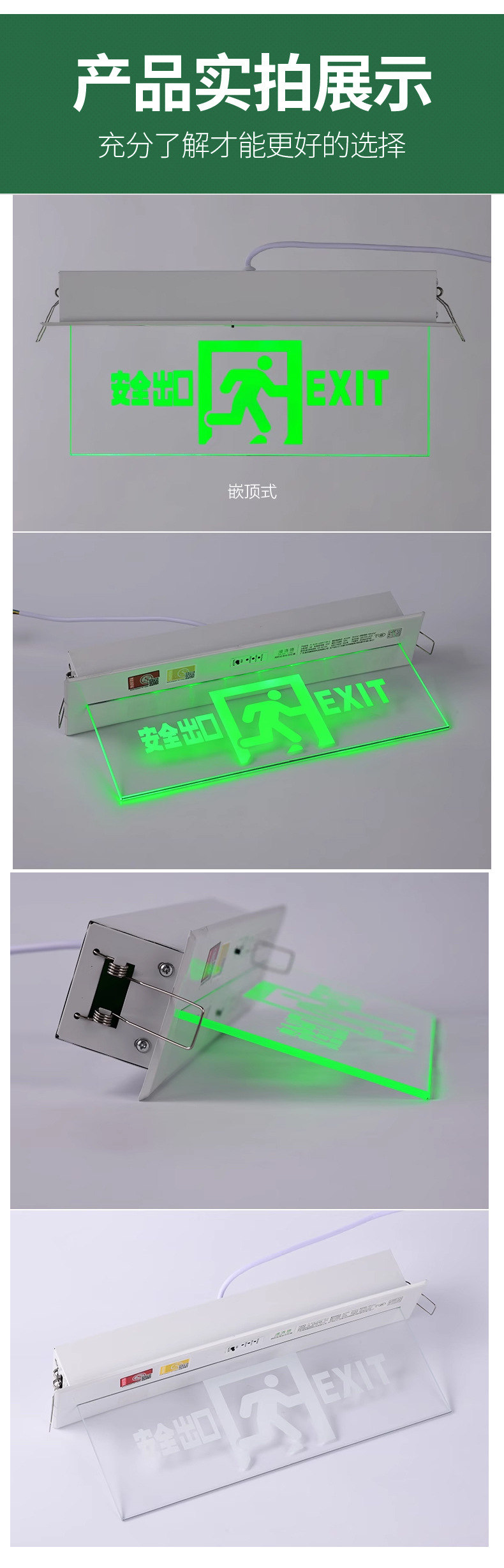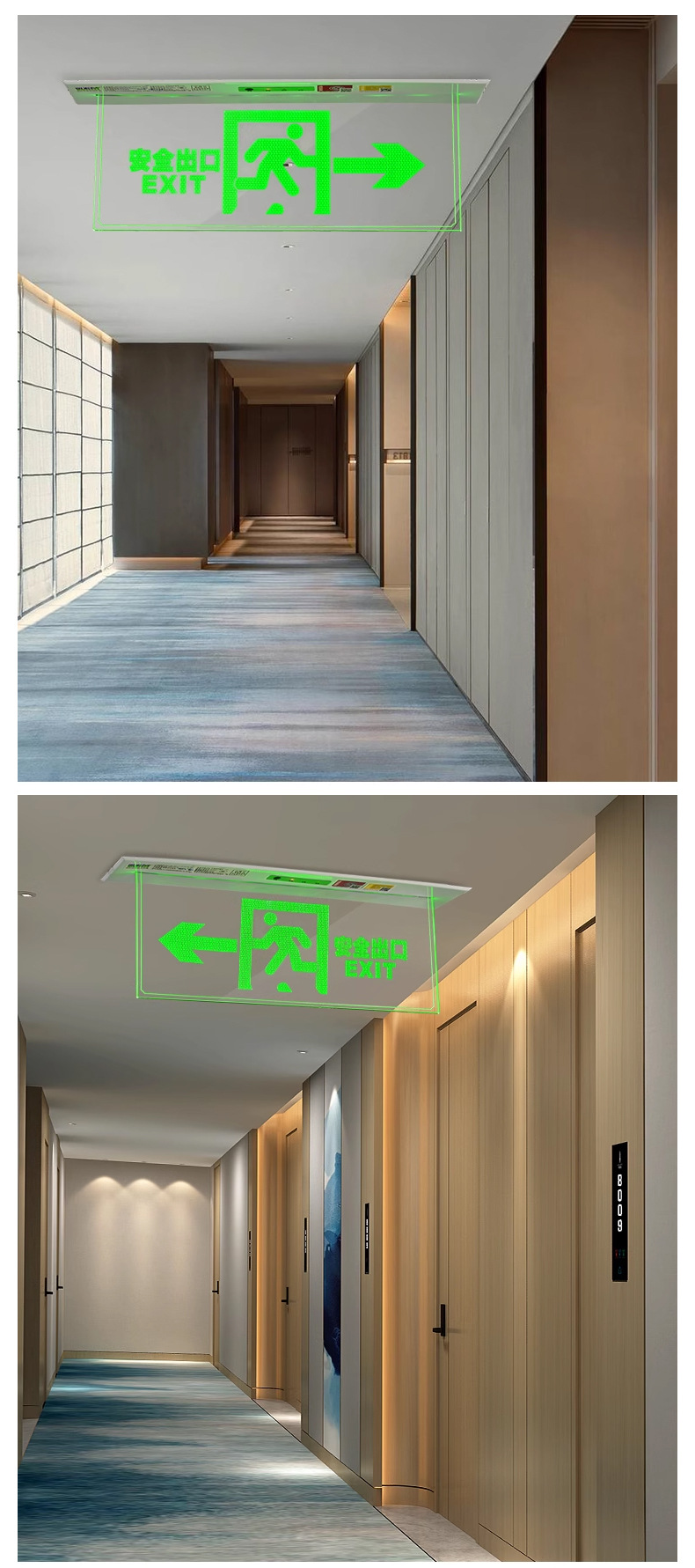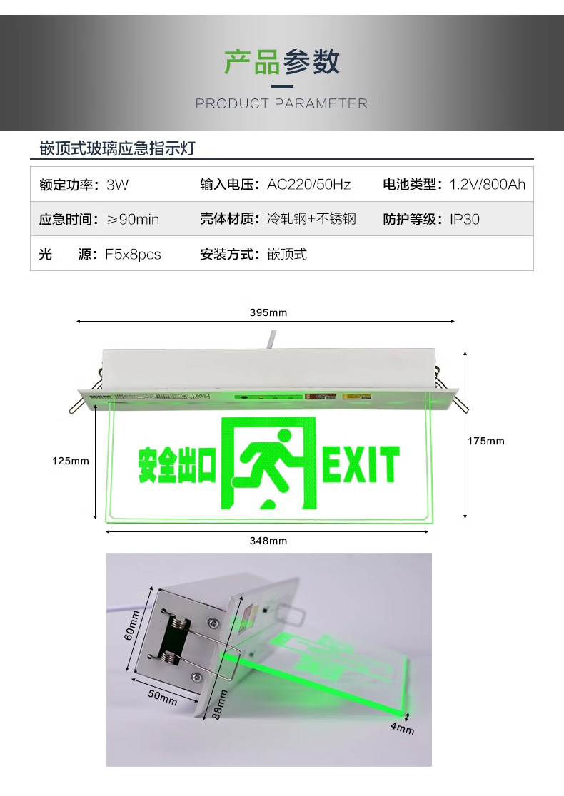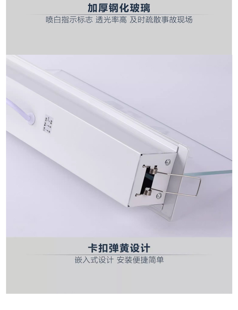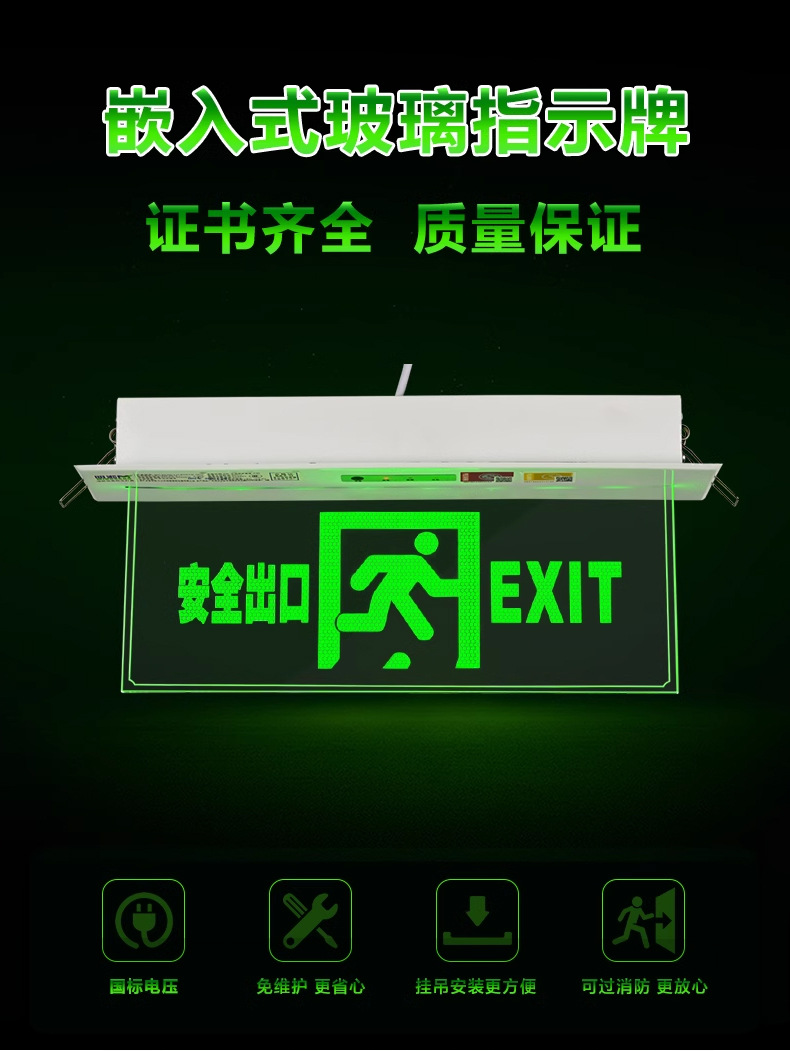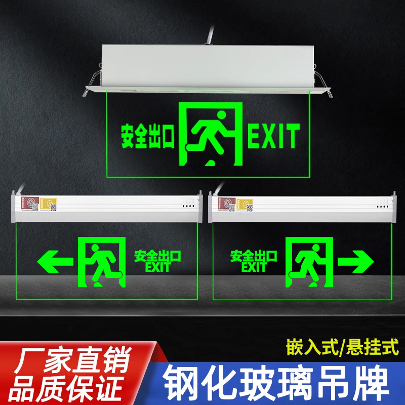 임베디드 탑 대피 표시기 빛 투명 천장 안전 출구 표지판 강화 유리 태그 화재 비상 조명