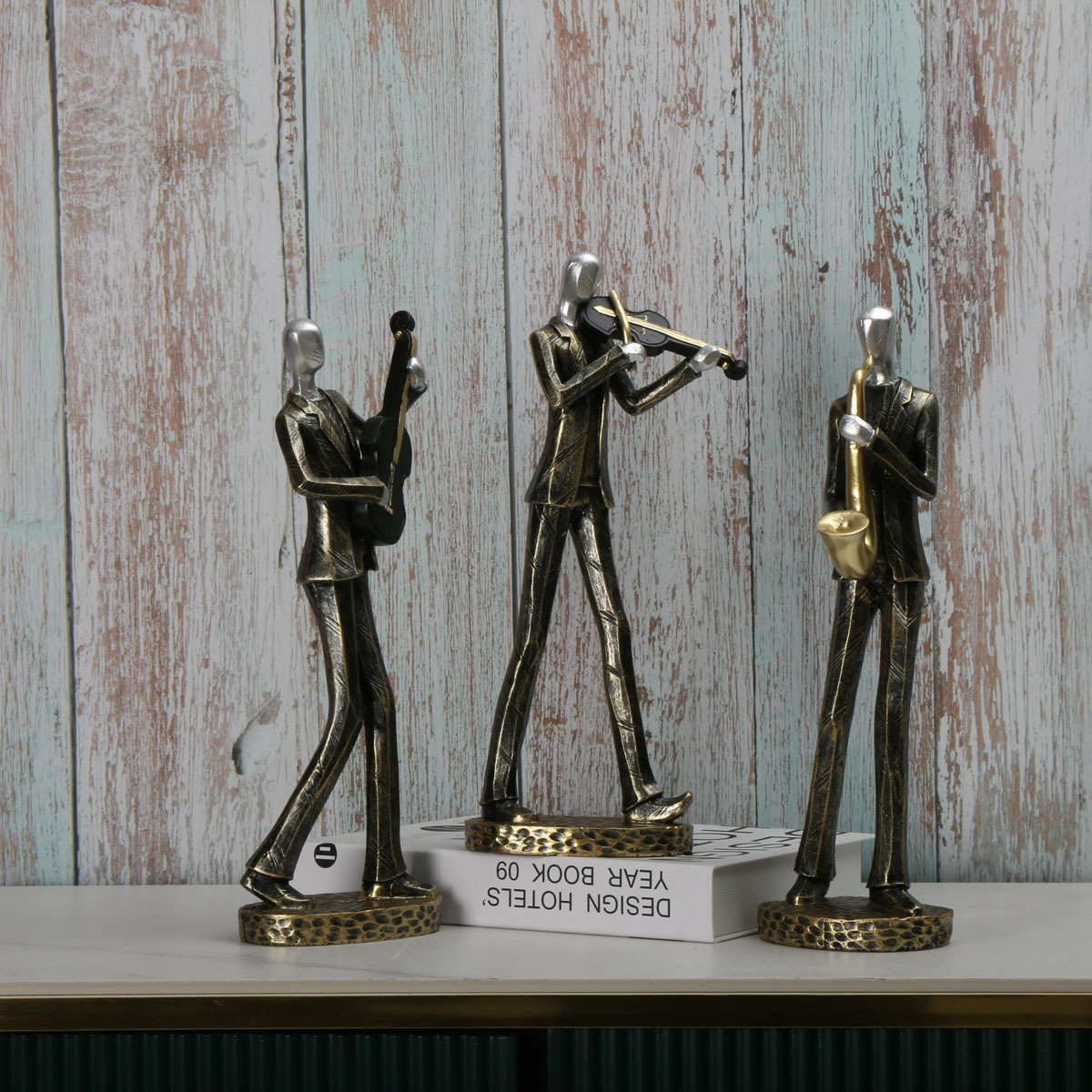 북유럽 창조적 인 간단한 현대 캐릭터 악기 공연 조각 조각상 장식 홈 골드 장식 수지 공예스토어 가기