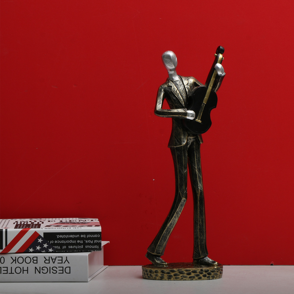 북유럽 창조적 인 간단한 현대 캐릭터 악기 공연 조각 조각상 장식 홈 골드 장식 수지 공예