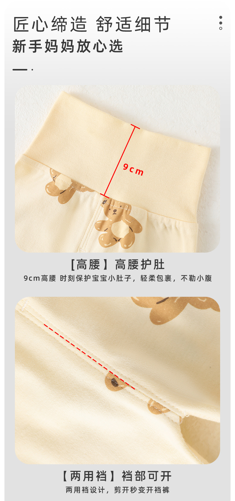 y2201 무봉제 봄가을 바지 남녀 아기용 순면 유아용 하이웨이스트 배 보호 바지 하이웨이스트 배 보호 팬츠스토어 가기
