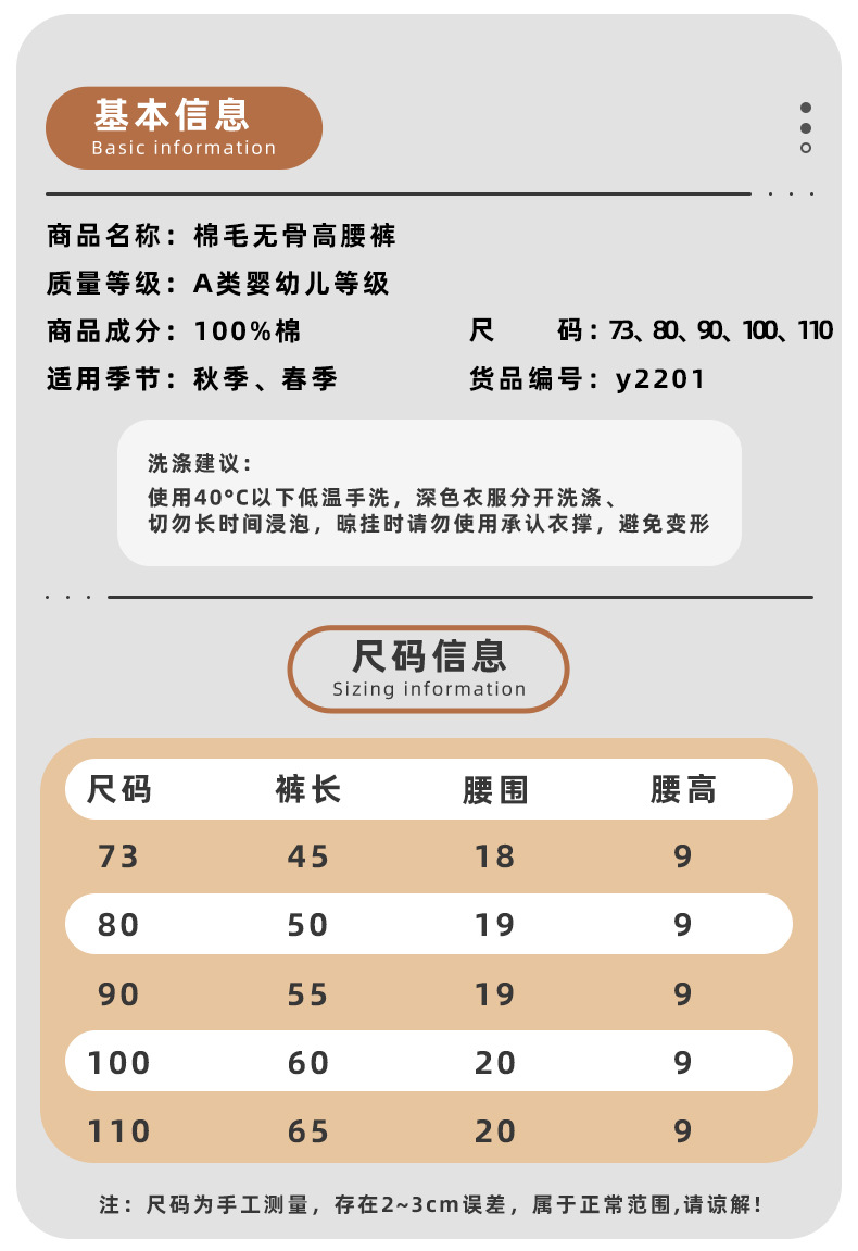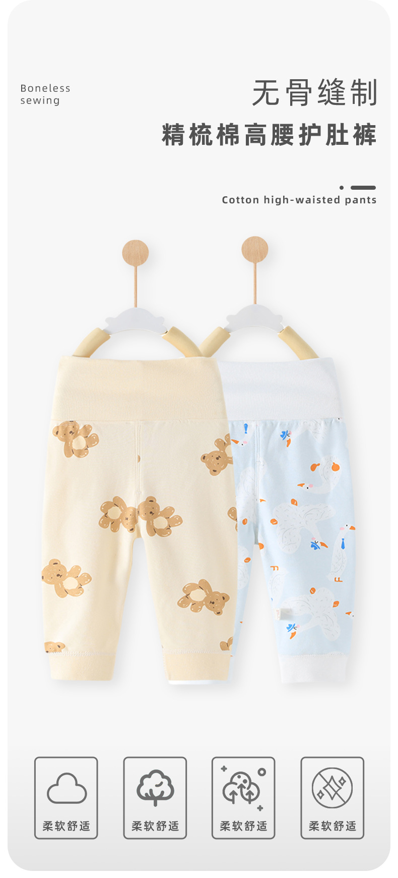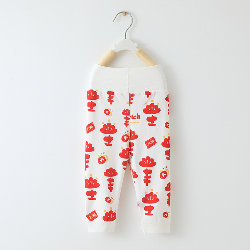 y2201 무봉제 봄가을 바지 남녀 아기용 순면 유아용 하이웨이스트 배 보호 바지 하이웨이스트 배 보호 팬츠