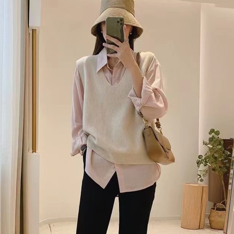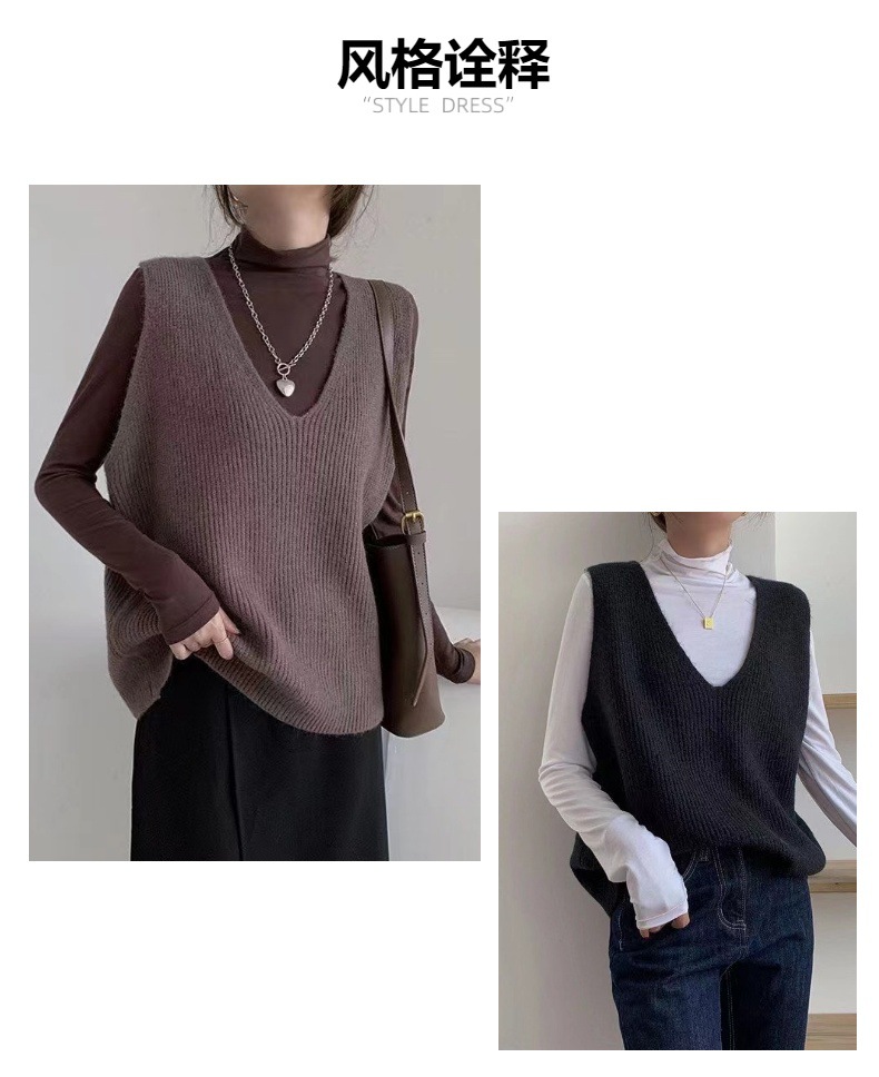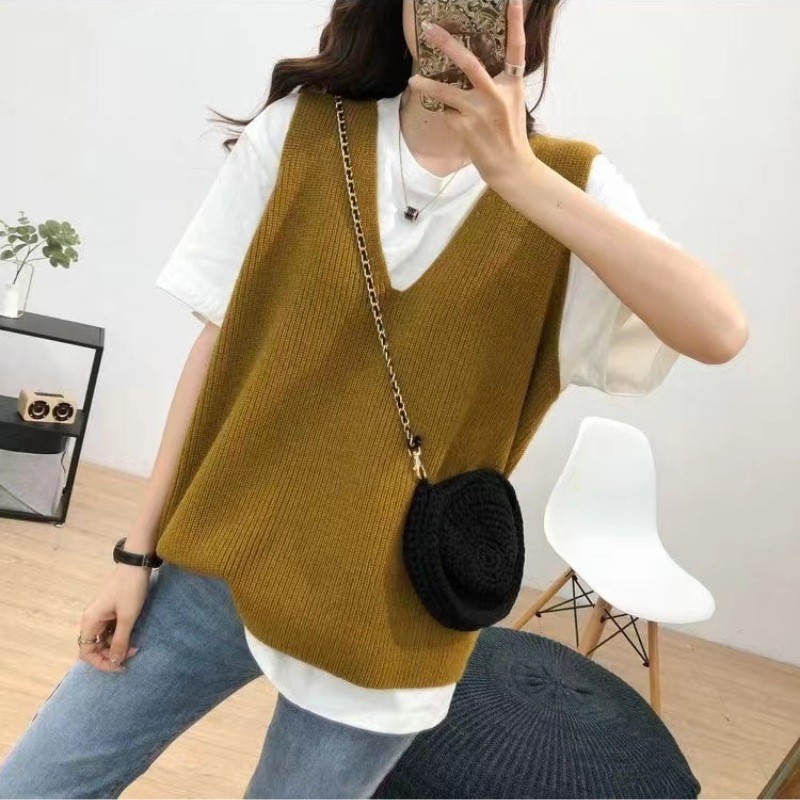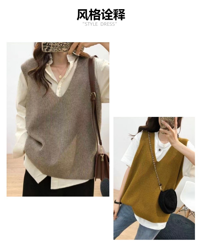 캐시미어 대형 니트 조끼 여성의 2023 새로운 솔리드 컬러 느슨한 V 넥 캐주얼 통근 니트 탑스토어 가기