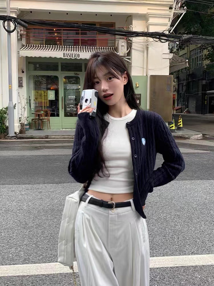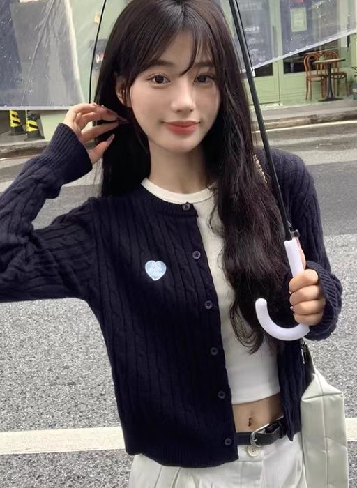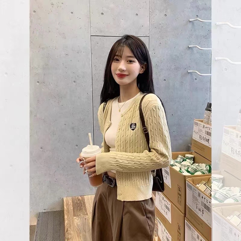 한국 대학 스타일 트위스트 니트 카디건 재킷 여성 가을 하이 엔드 내부 스웨터 독특한 슬림 탑 트렌디스토어 가기