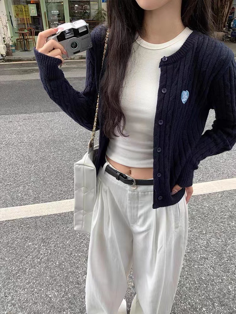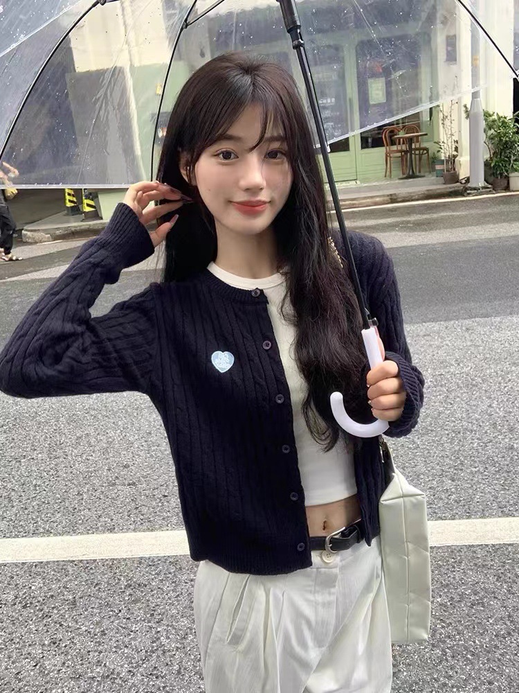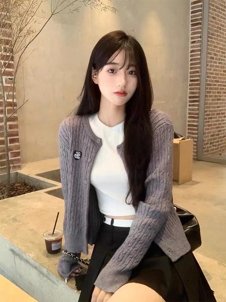 한국 대학 스타일 트위스트 니트 카디건 재킷 여성 가을 하이 엔드 내부 스웨터 독특한 슬림 탑 트렌디