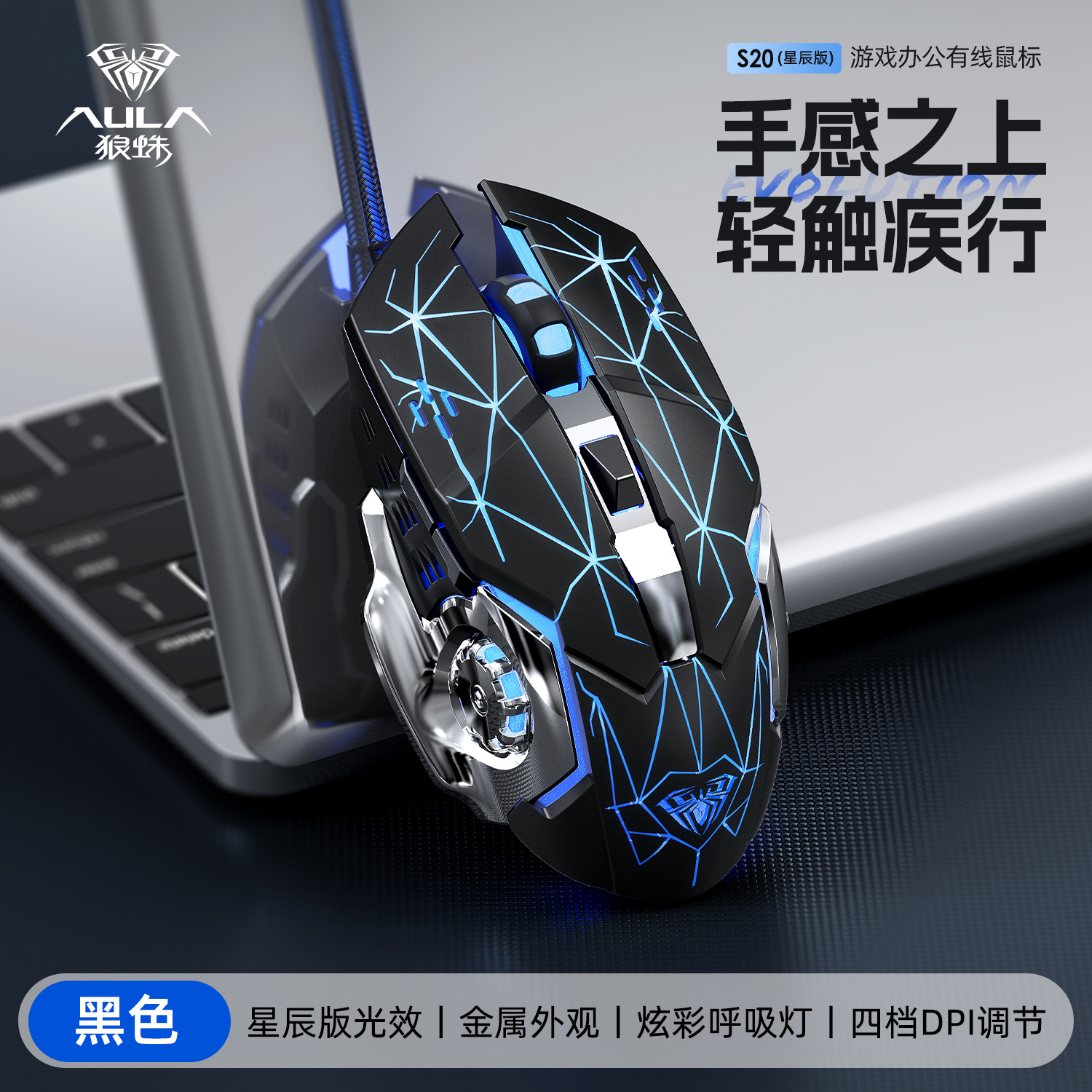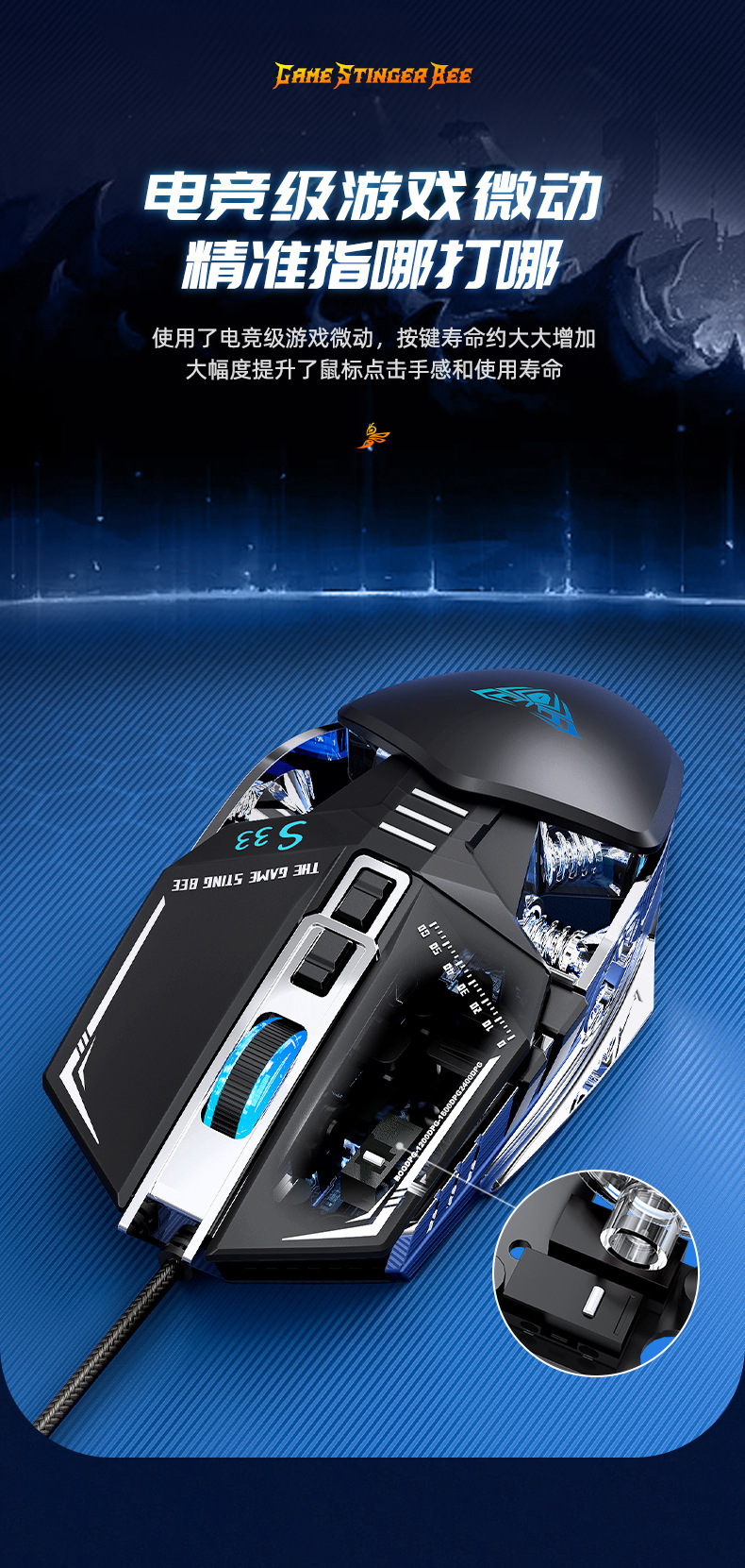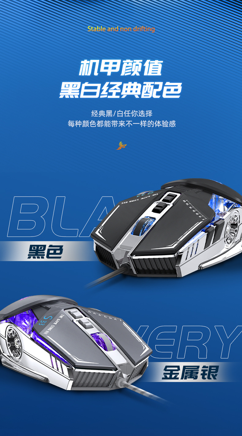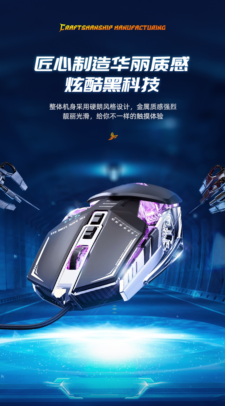 타란툴라 S33 기계 게임 마우스 유선 금속 하단 무게 빛나는 전자 스포츠 비즈니스 오피스 데스크탑 노트북