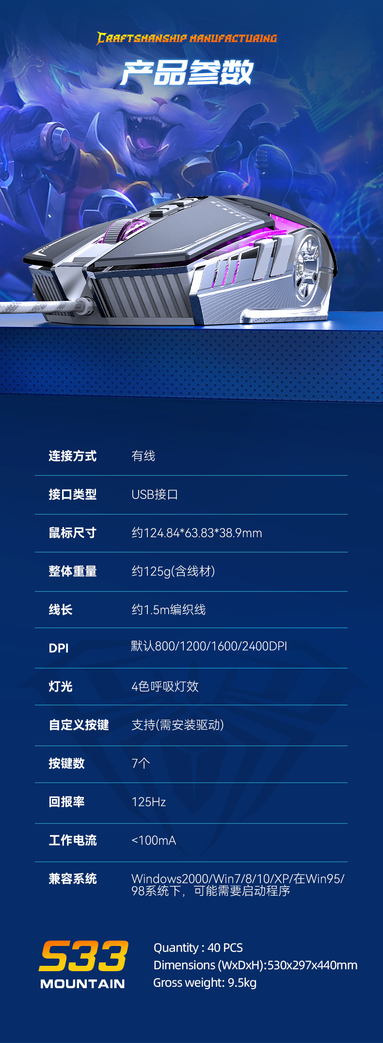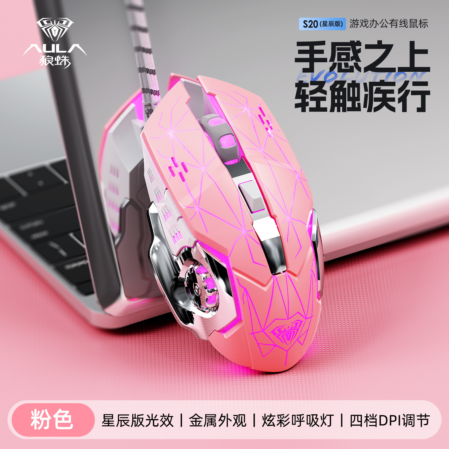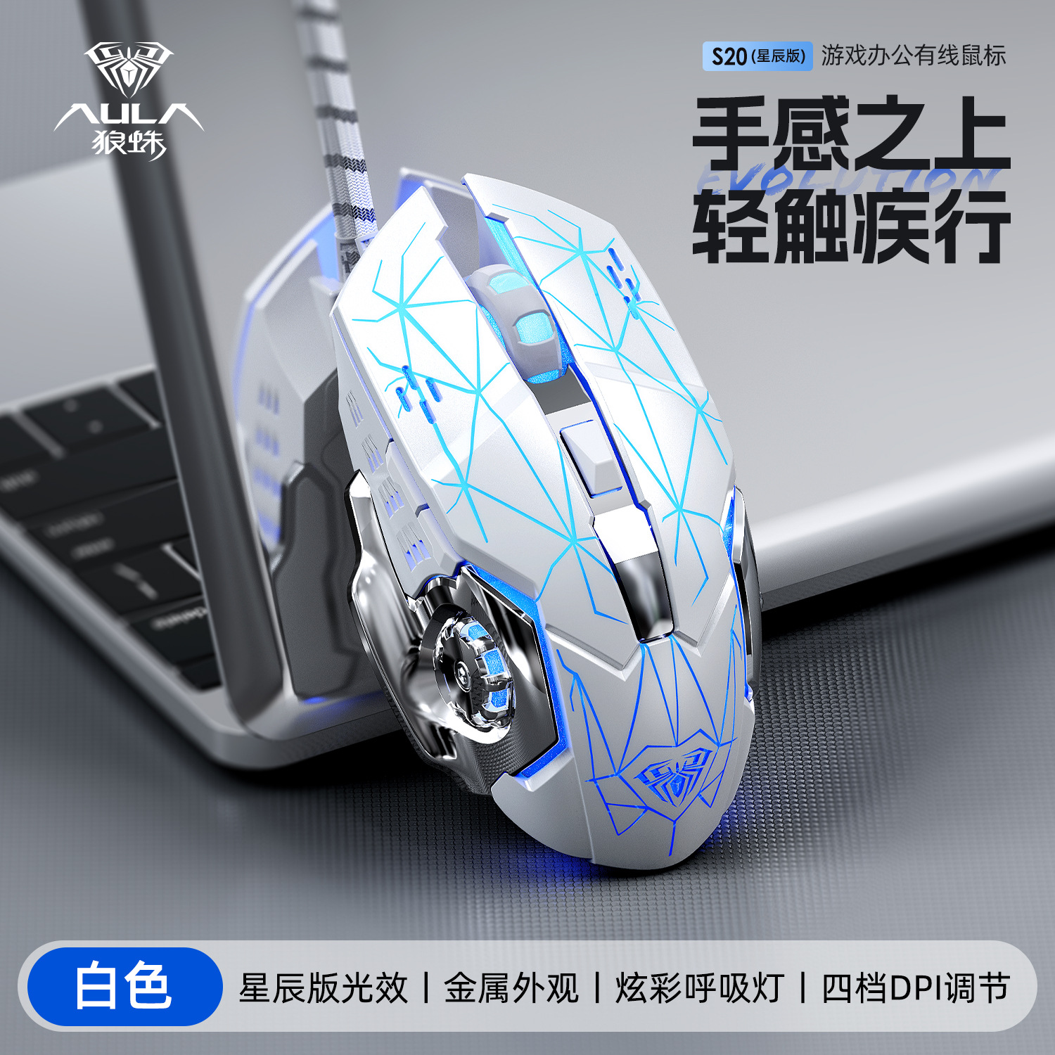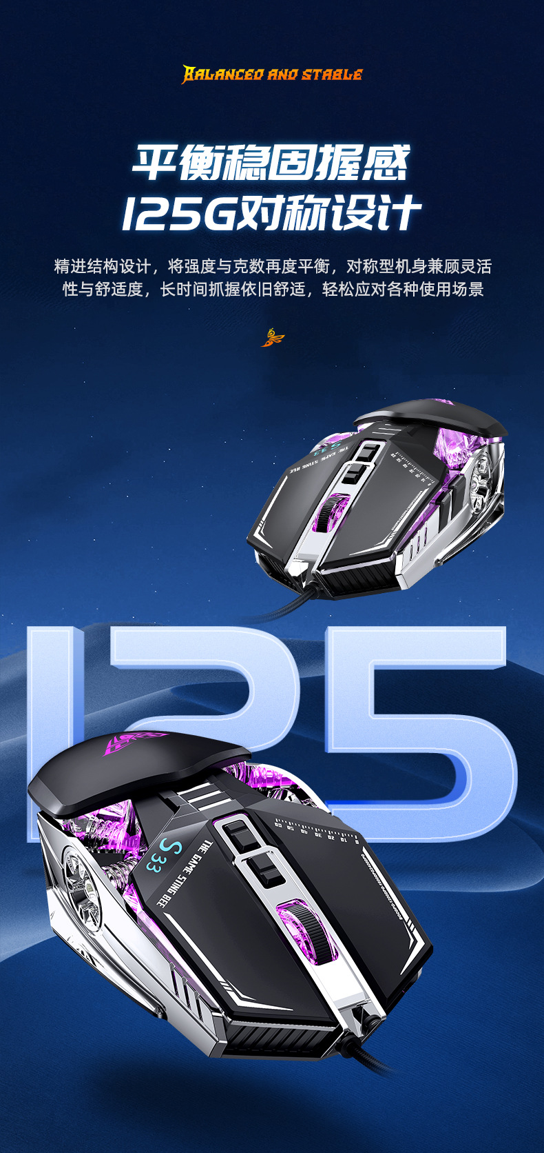 타란툴라 S33 기계 게임 마우스 유선 금속 하단 무게 빛나는 전자 스포츠 비즈니스 오피스 데스크탑 노트북