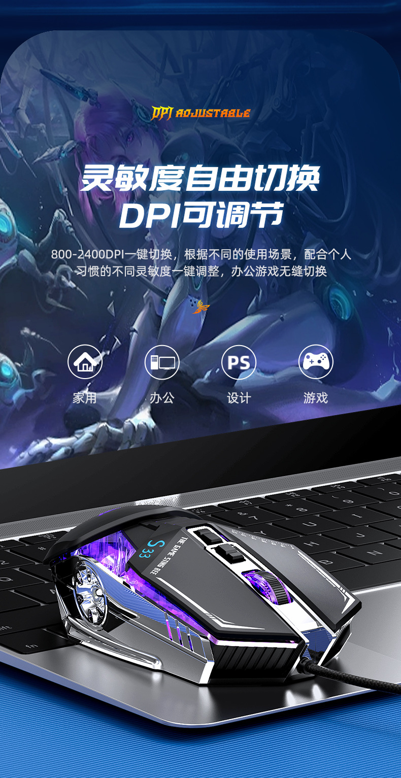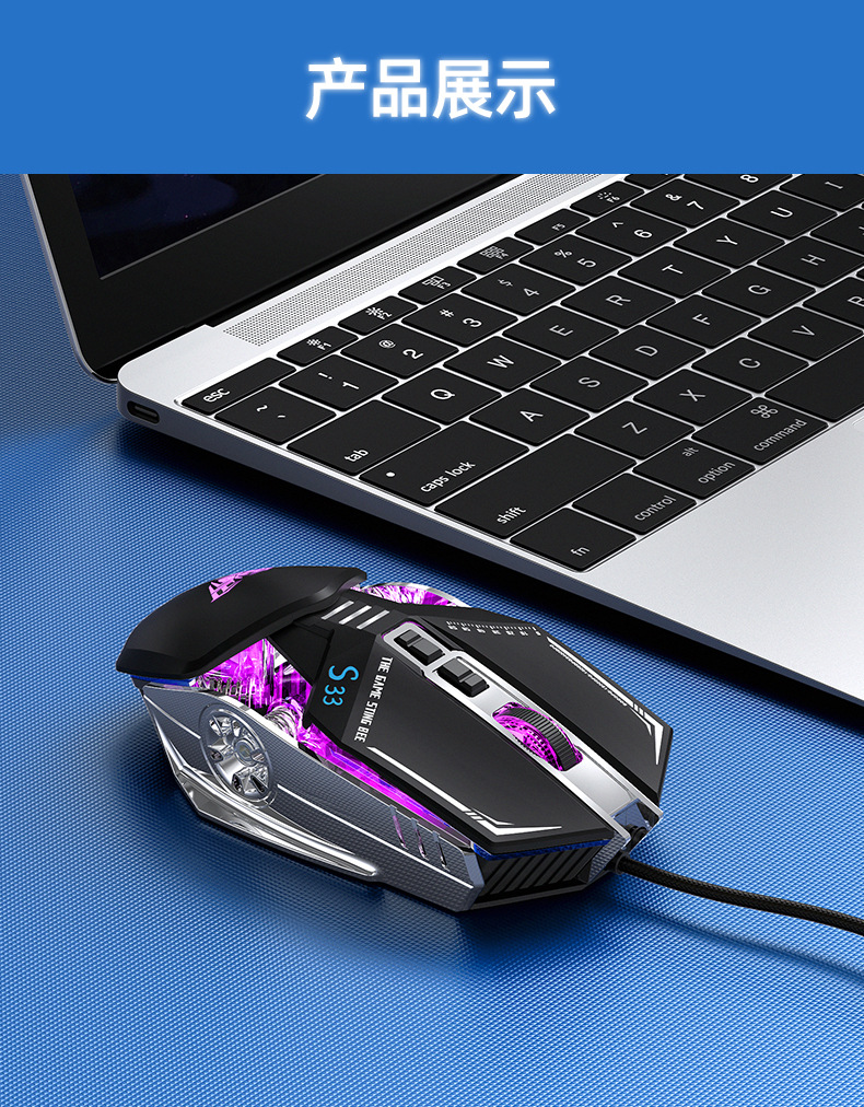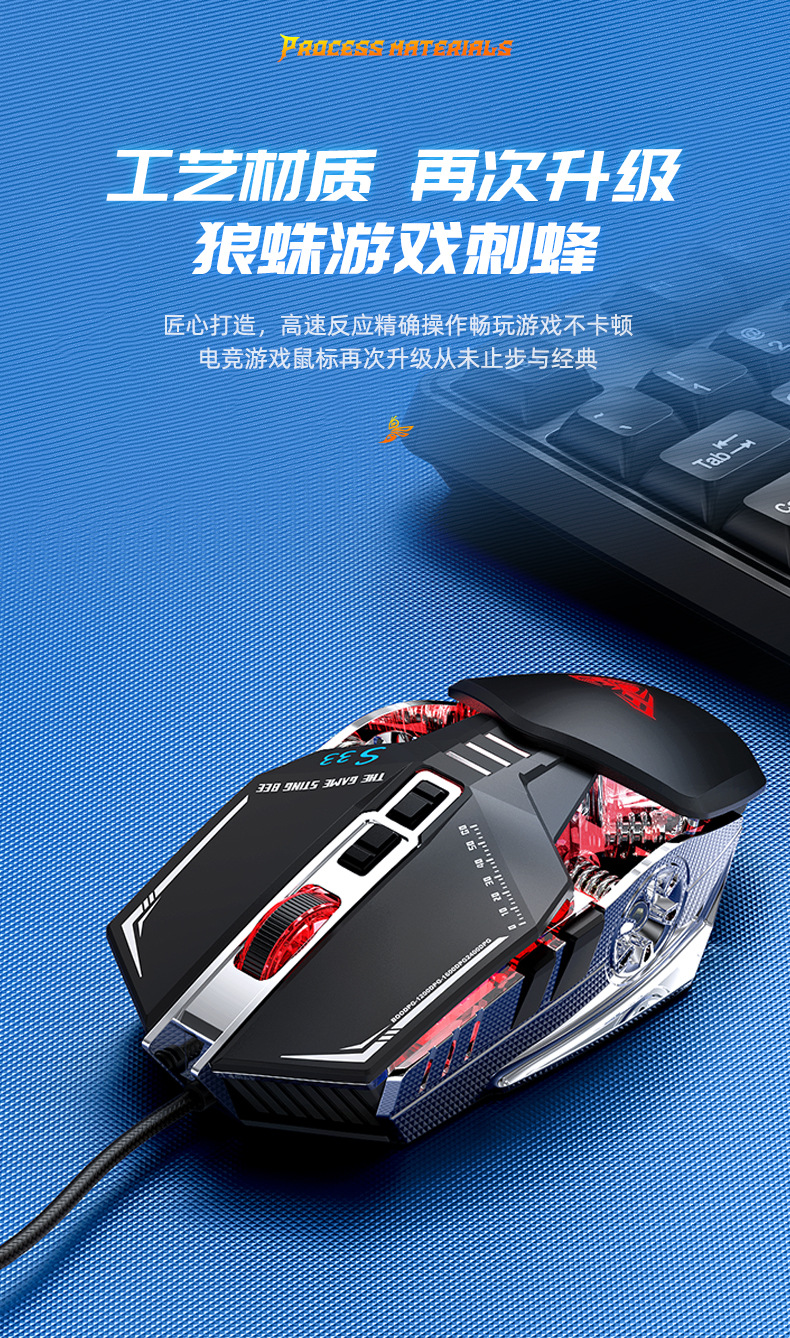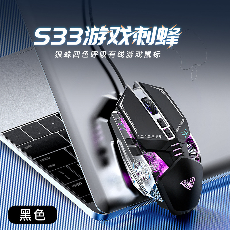 타란툴라 S33 기계 게임 마우스 유선 금속 하단 무게 빛나는 전자 스포츠 비즈니스 오피스 데스크탑 노트북스토어 가기