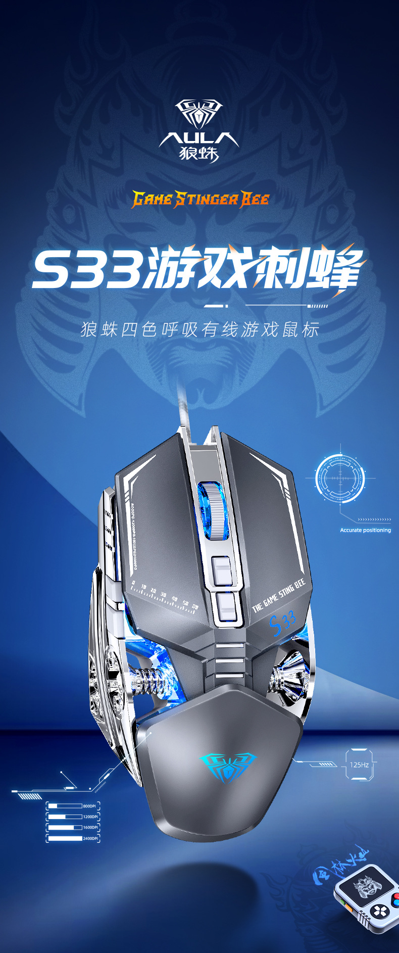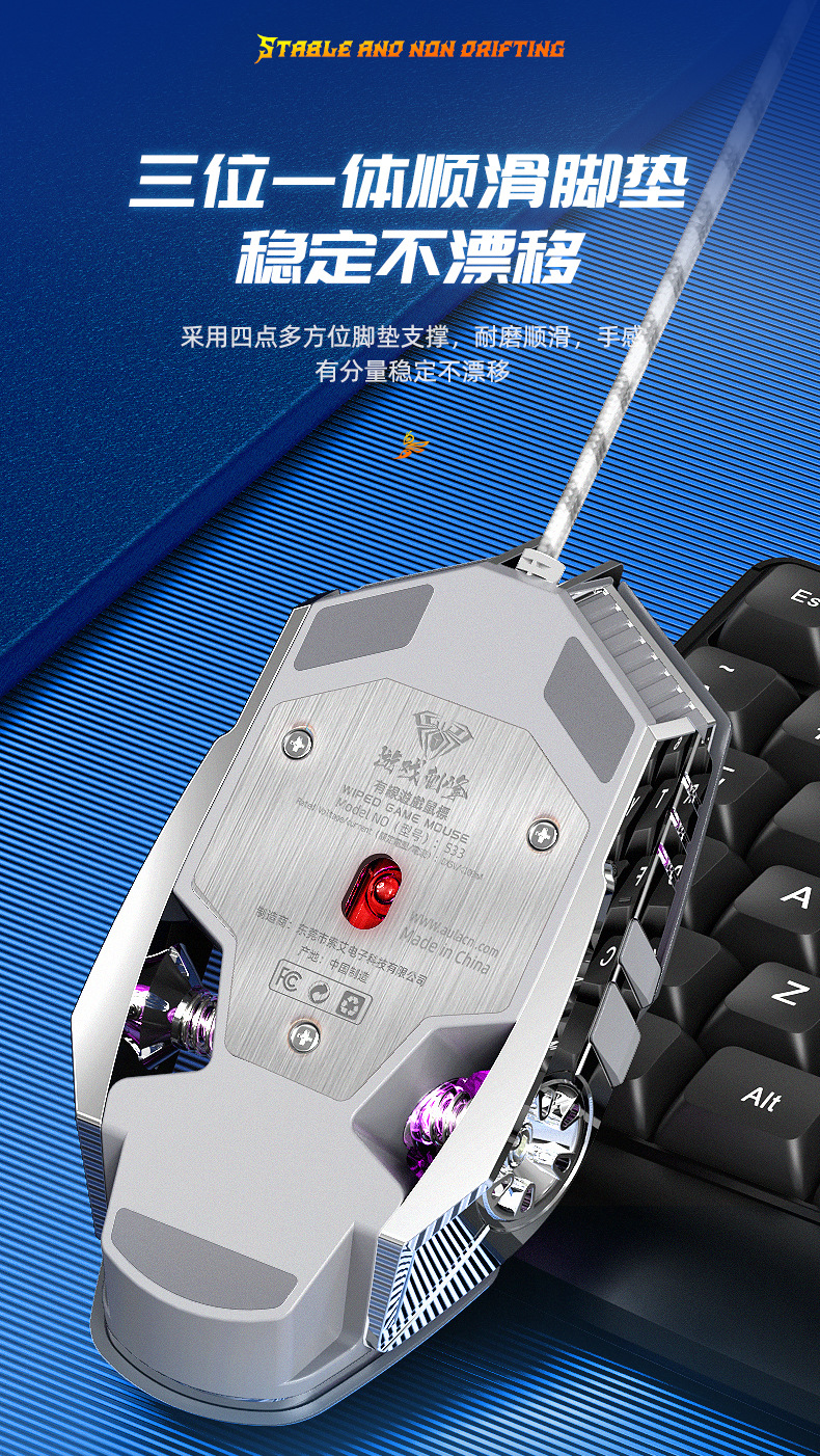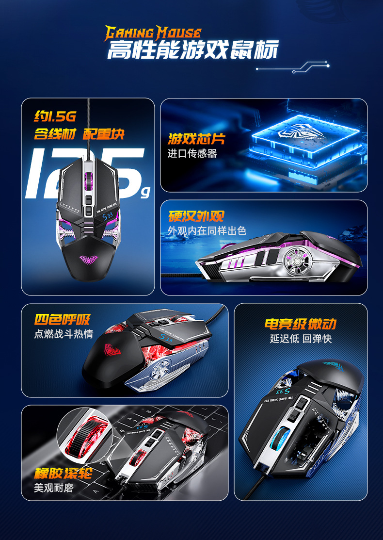 타란툴라 S33 기계 게임 마우스 유선 금속 하단 무게 빛나는 전자 스포츠 비즈니스 오피스 데스크탑 노트북스토어 가기