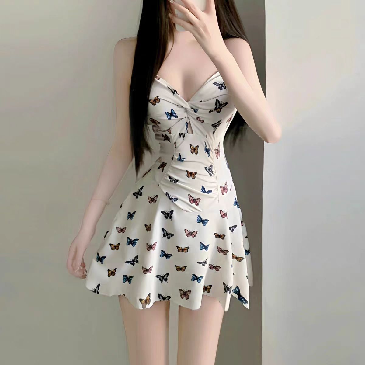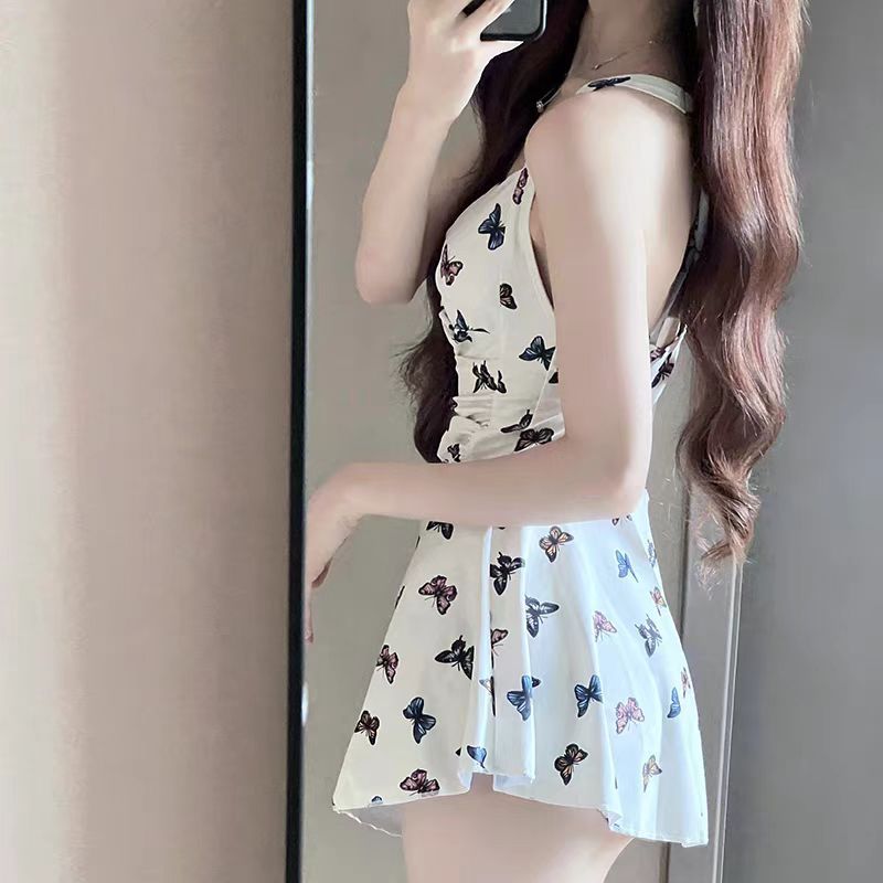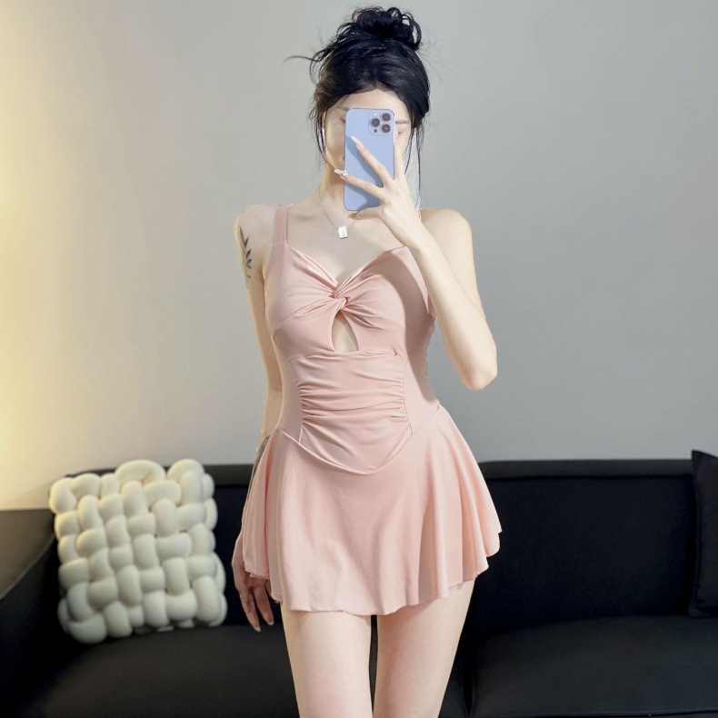 수영복 여성 원피스 단색 슬링 신선한 원피스 허리 슬리밍 휴가 수영복 섹시한 등없는 온천스토어 가기