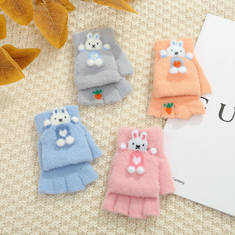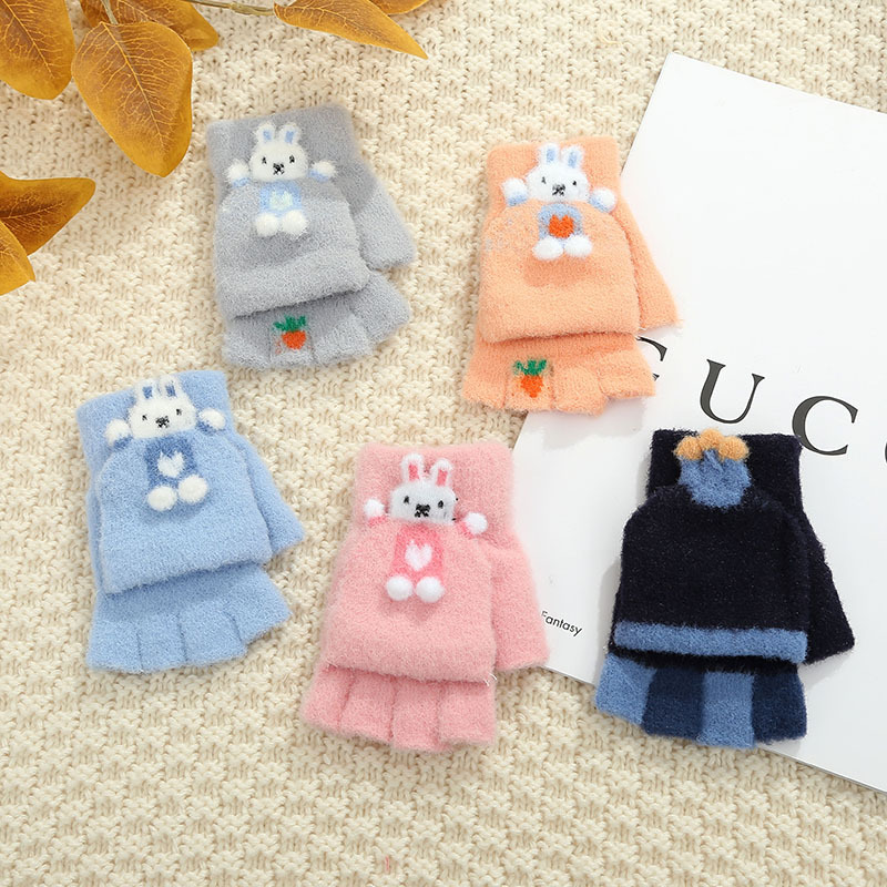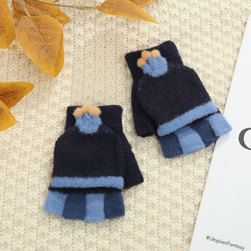 어린이 반 손가락 장갑 플립 커버 가을, 겨울 만화 귀여운 플러스 벨벳 따뜻한 니트 핑거리스 소년 장갑 추위로부터 보호스토어 가기