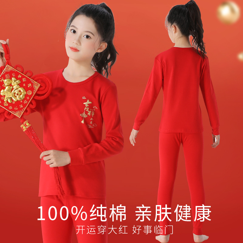 봄 가을 순면 아동용 가을옷 세트 여아 남아 보온 내의 생년월일 레드 뱀띠 기본복