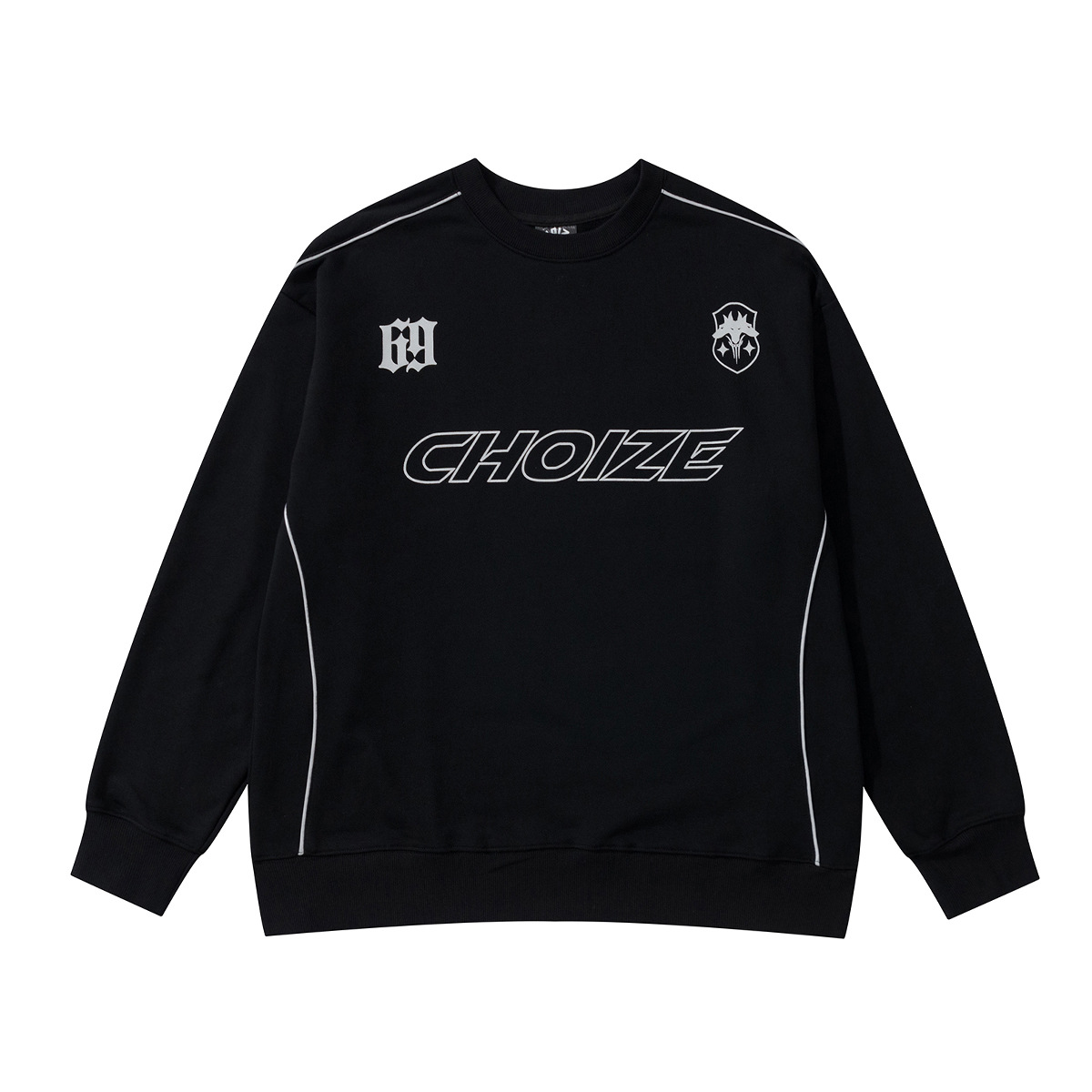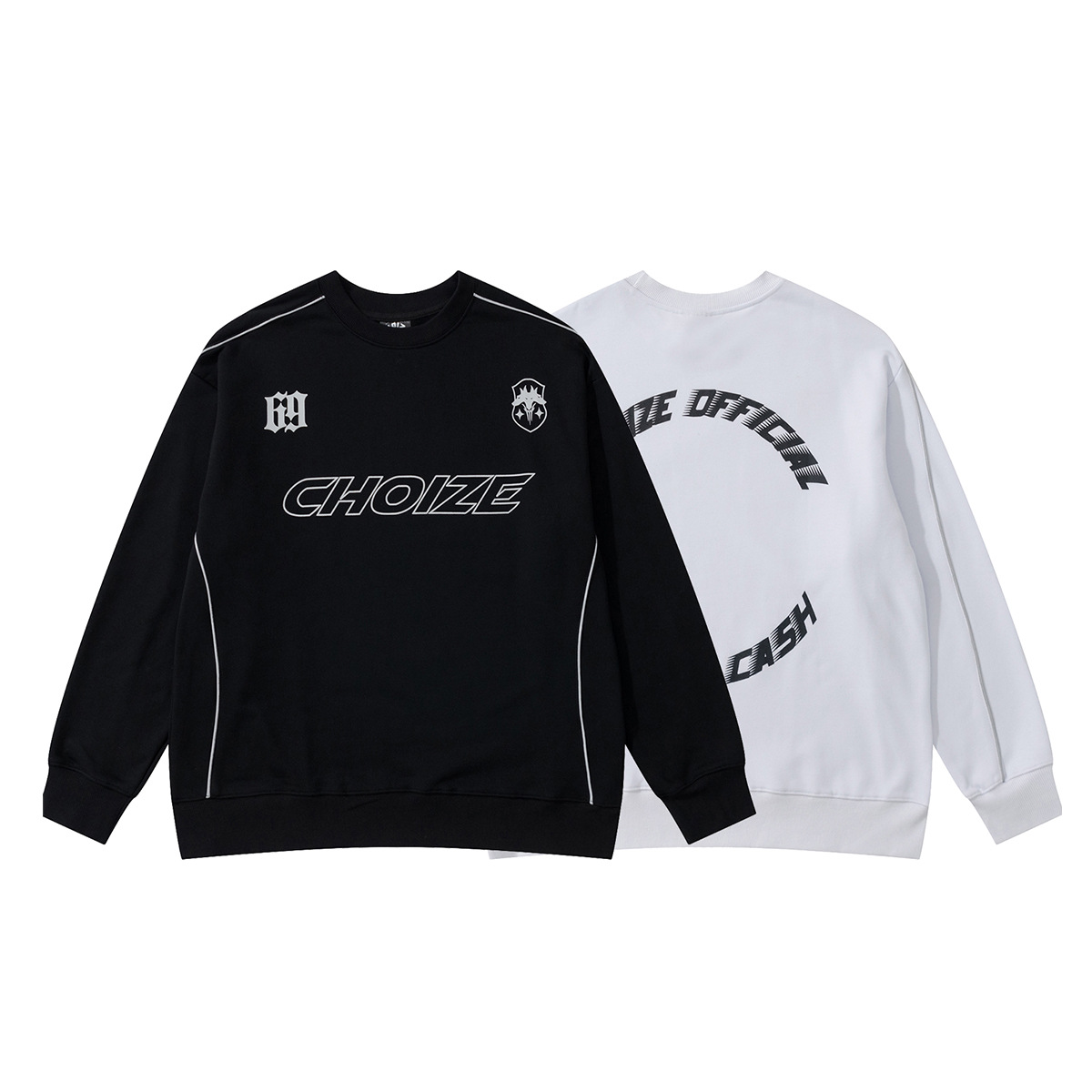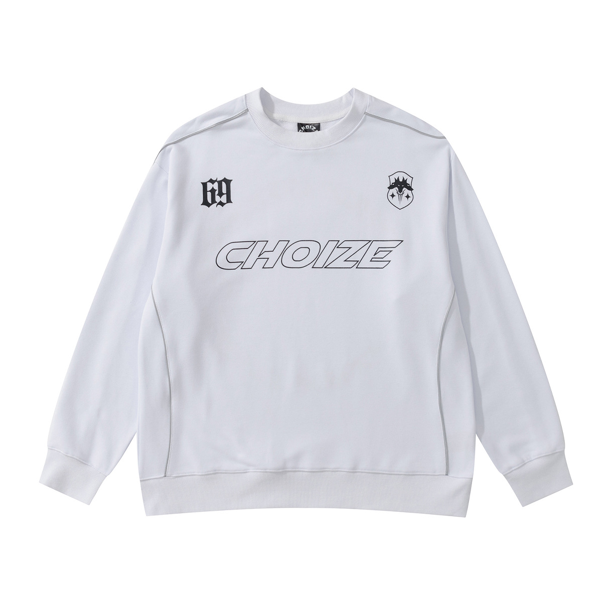 Jiayiku 남성 의류 세련된 미국 오토바이 스타일 라운드 넥 스웨터 새 배지 프린트 삽입 스트리트 패션 남성 풀오버스토어 가기