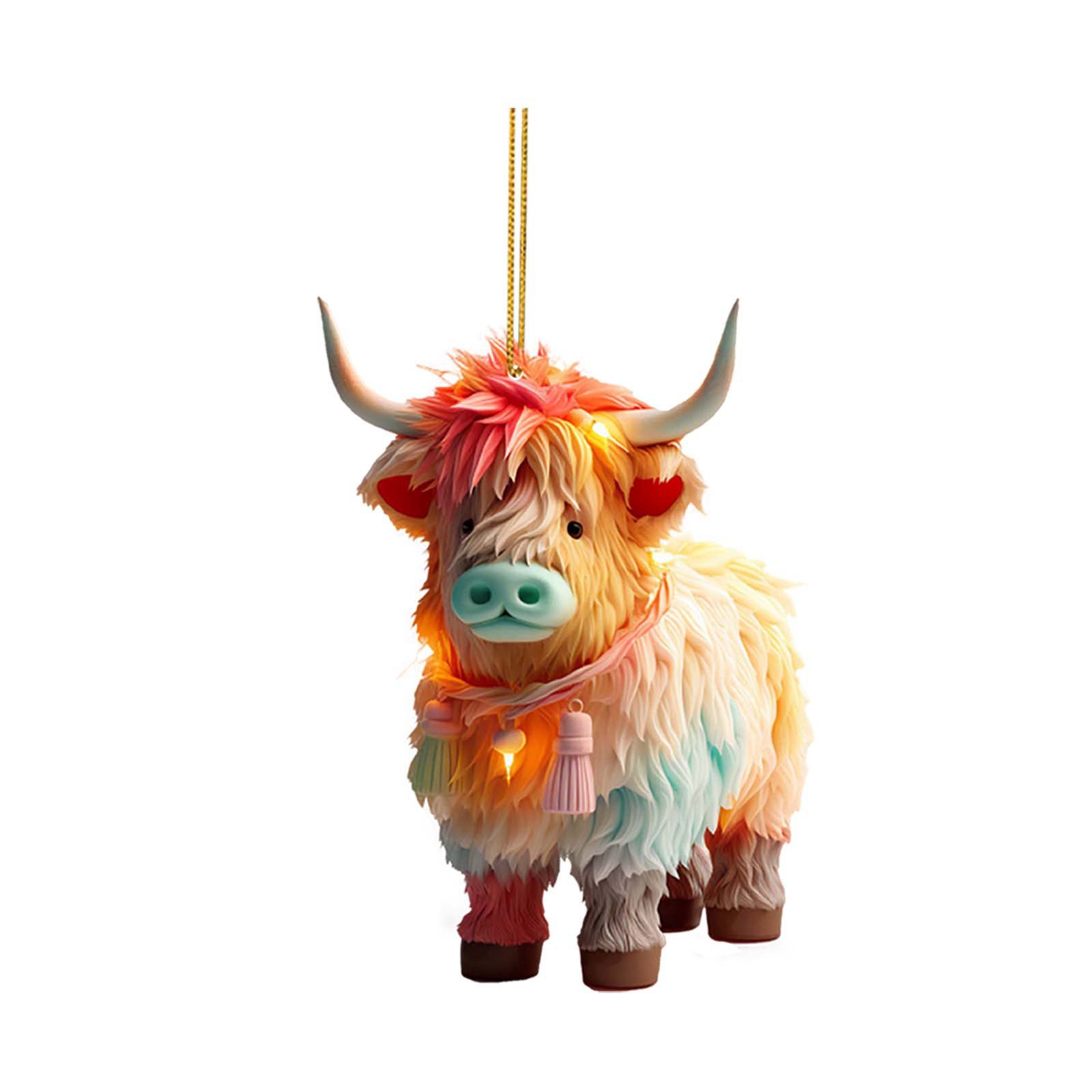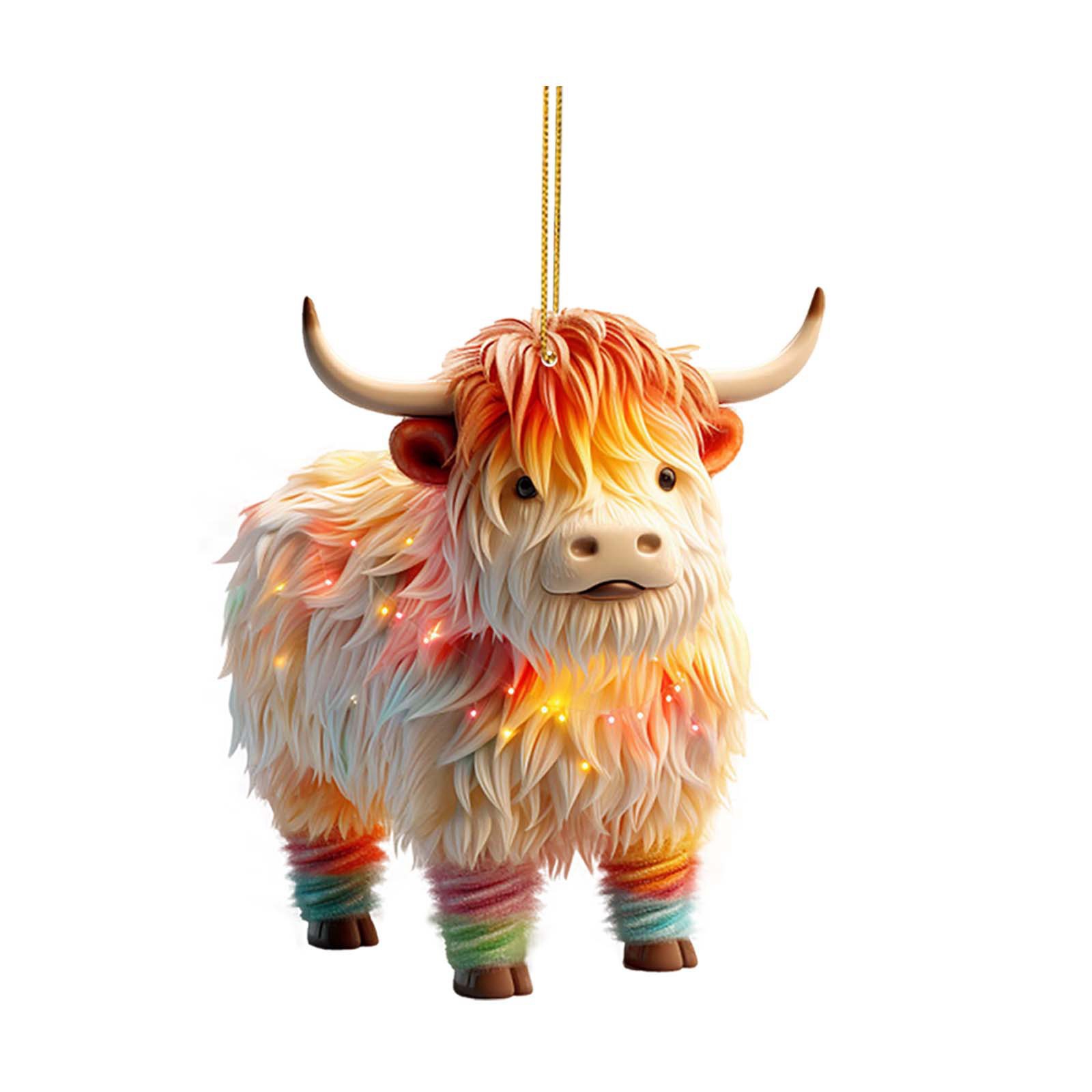 2023亚马逊新款圣诞亚克力彩色海拉和牛装饰品可爱卡通牛汽车挂件