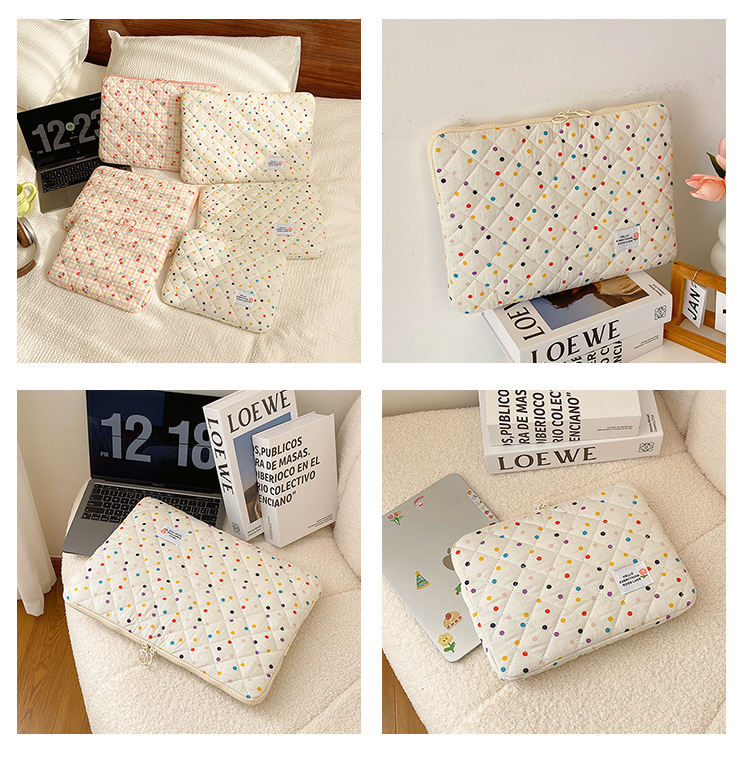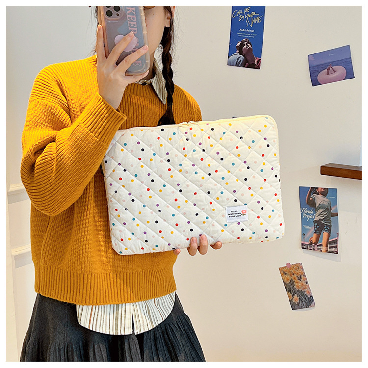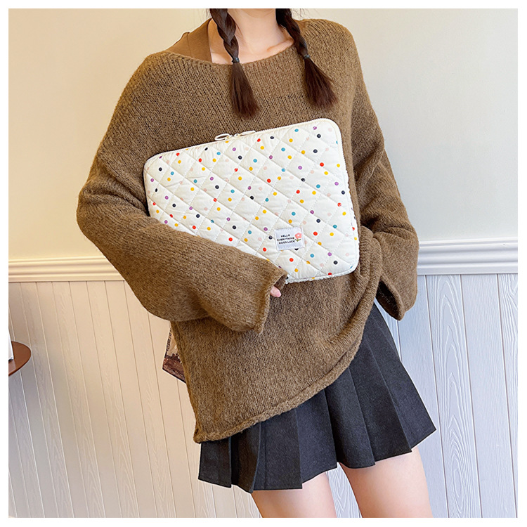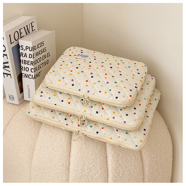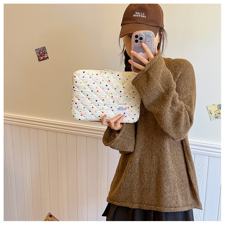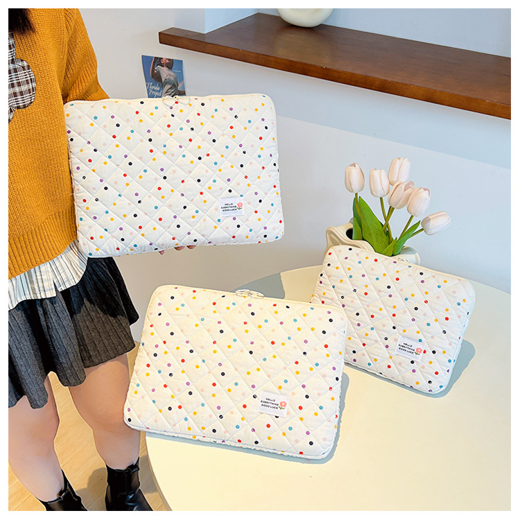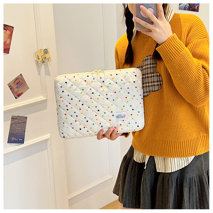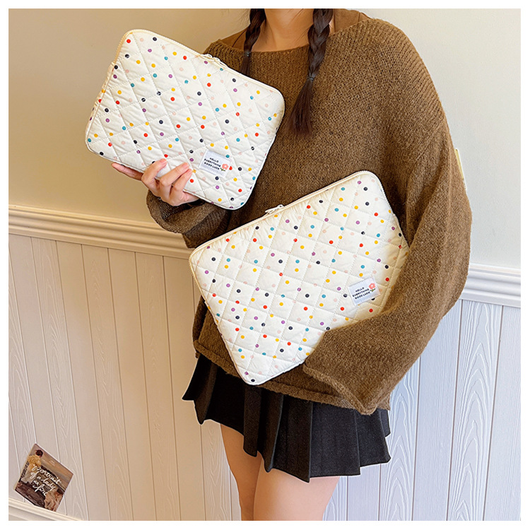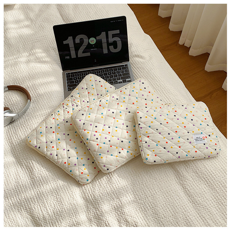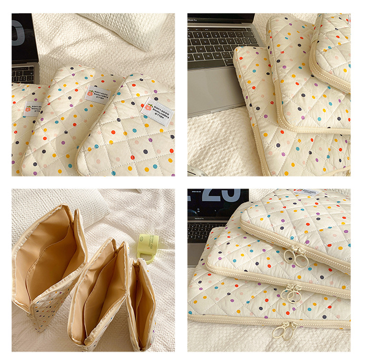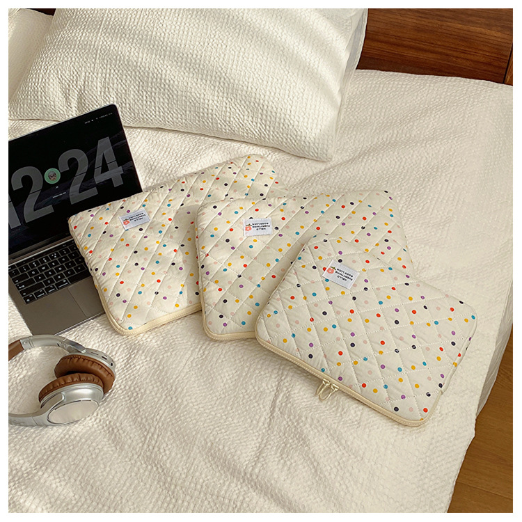 컴퓨터 가방 한국식 다채로운 물방울 무늬 태블릿 보관 가방 여성 휴대용 다운 가방 14/15.6 라이너 가방