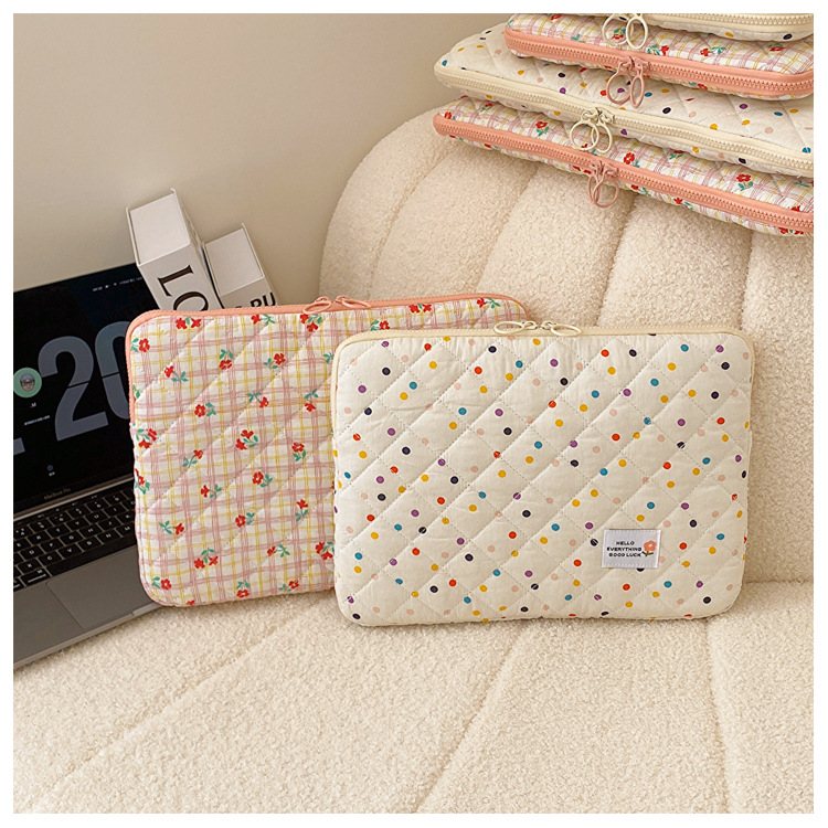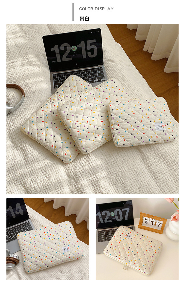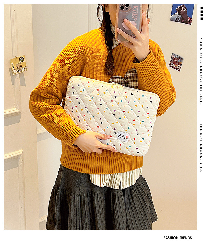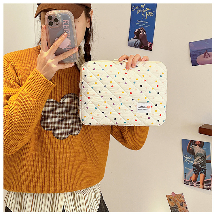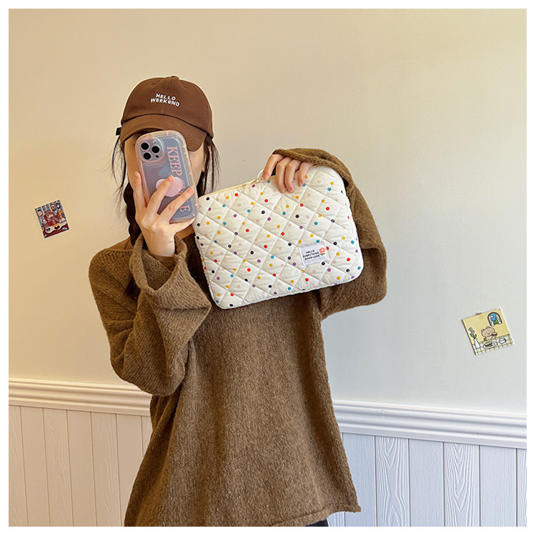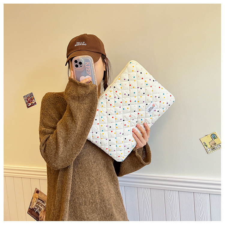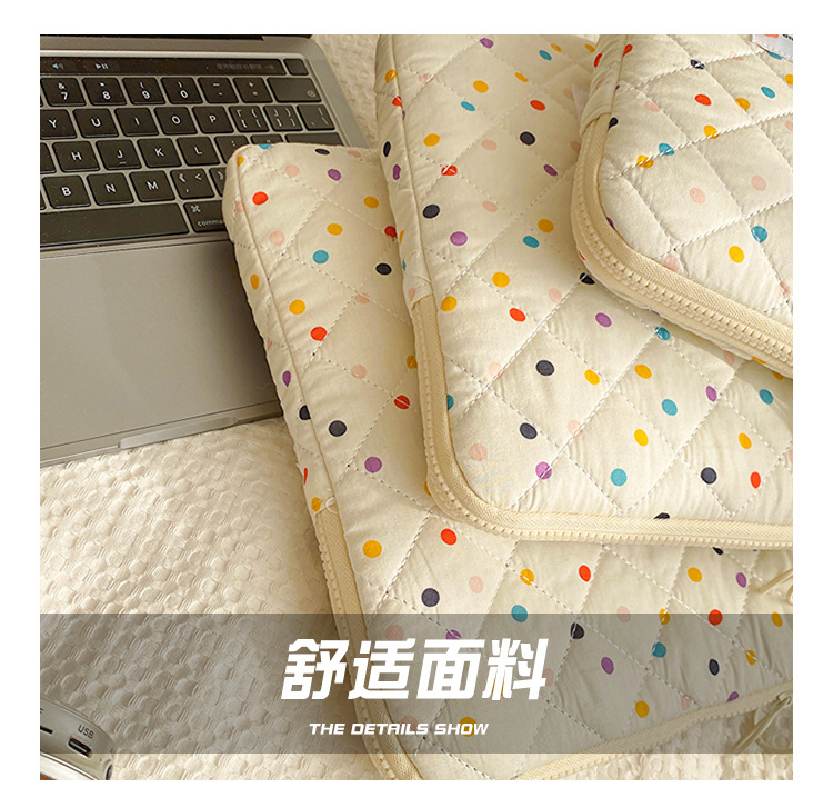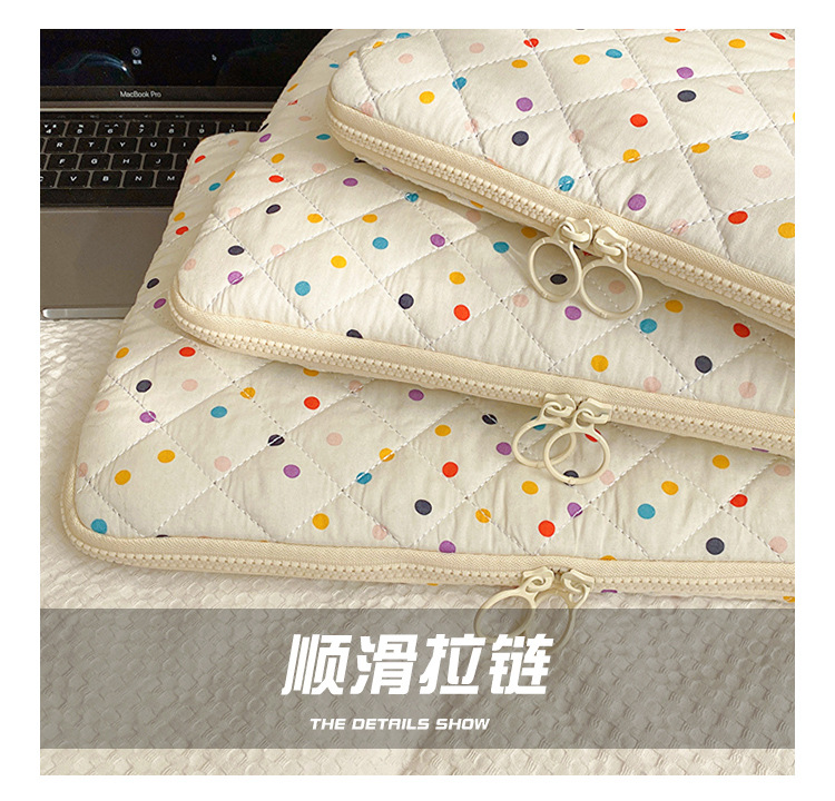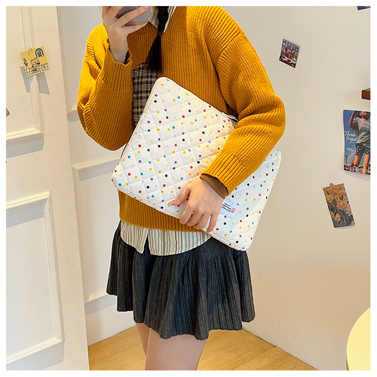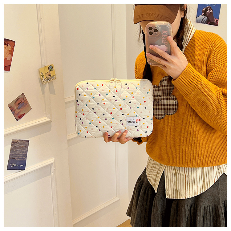 컴퓨터 가방 한국식 다채로운 물방울 무늬 태블릿 보관 가방 여성 휴대용 다운 가방 14/15.6 라이너 가방
