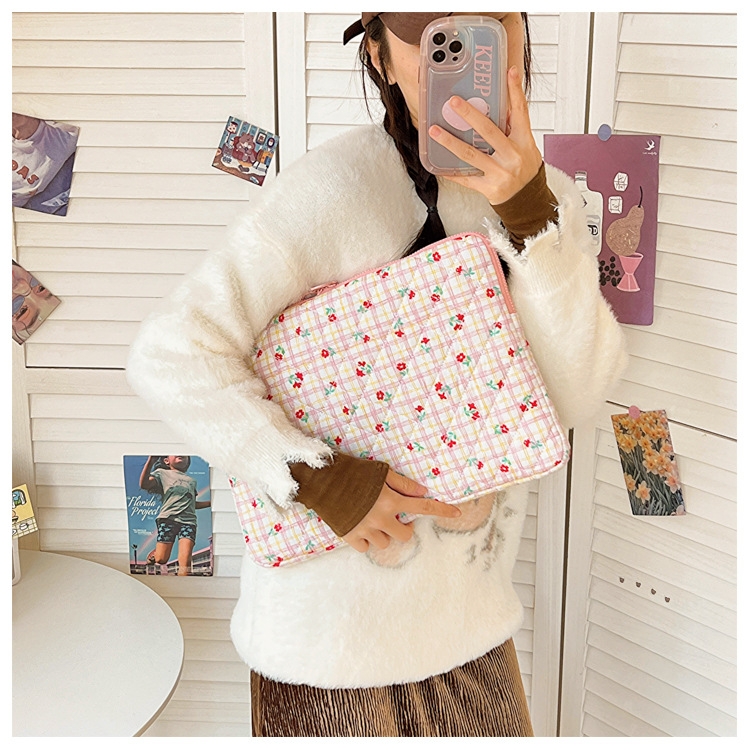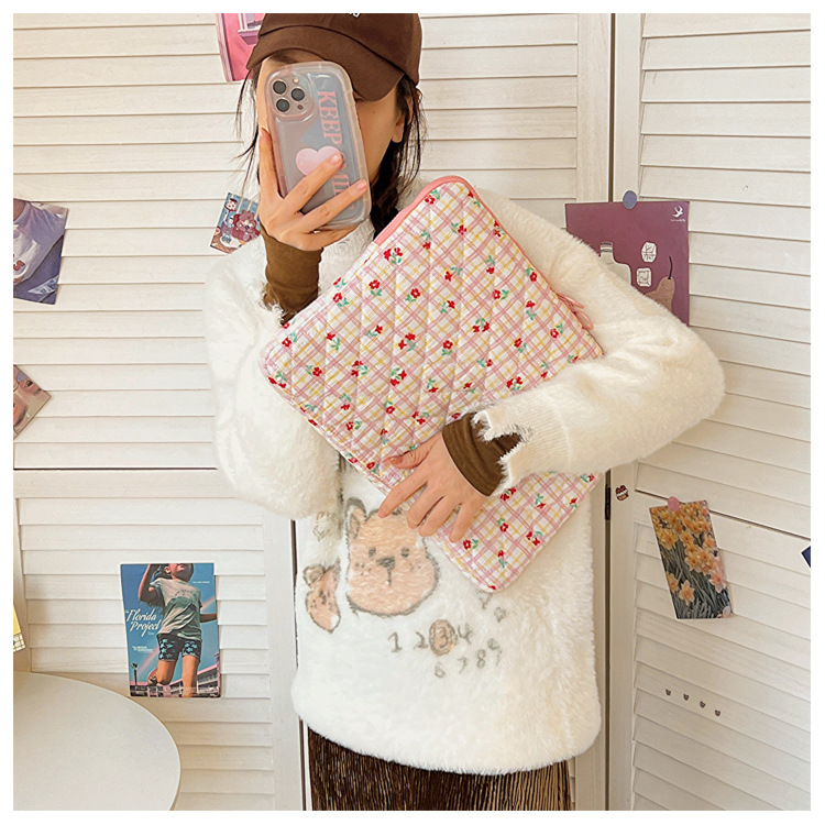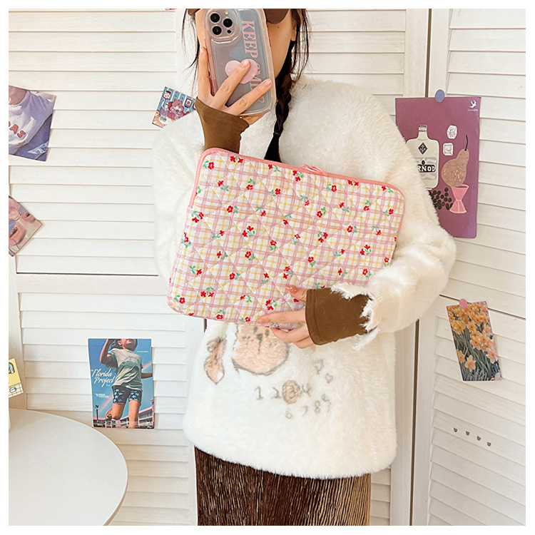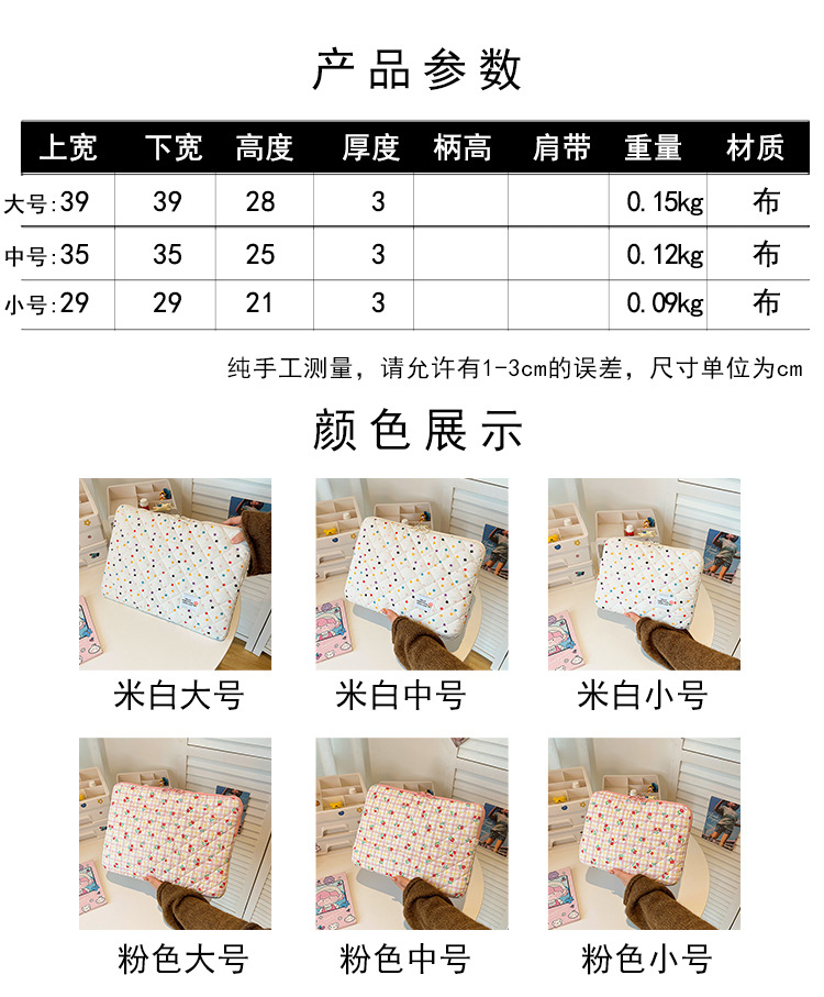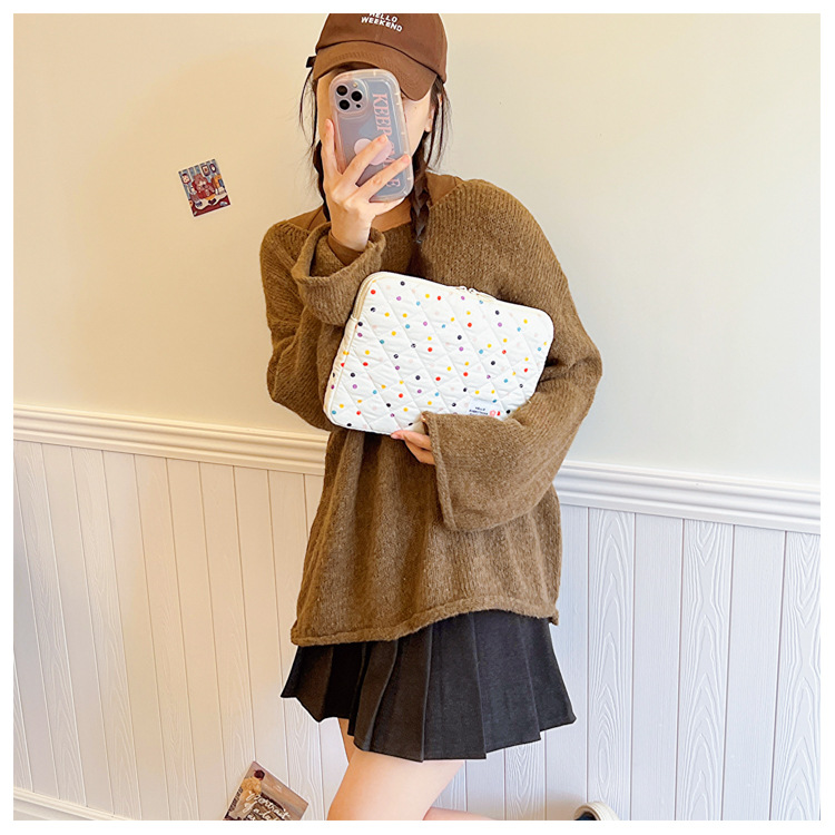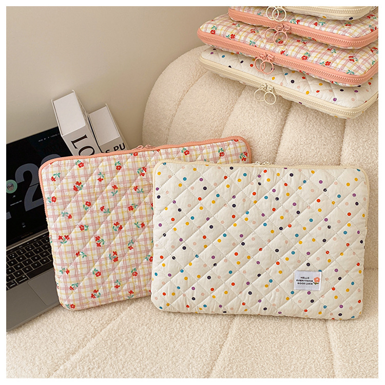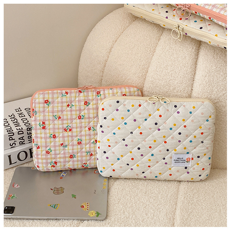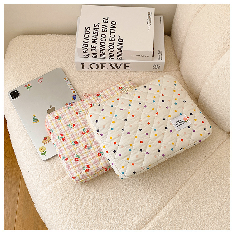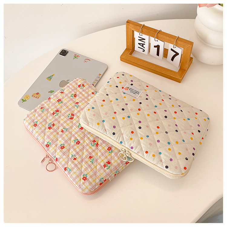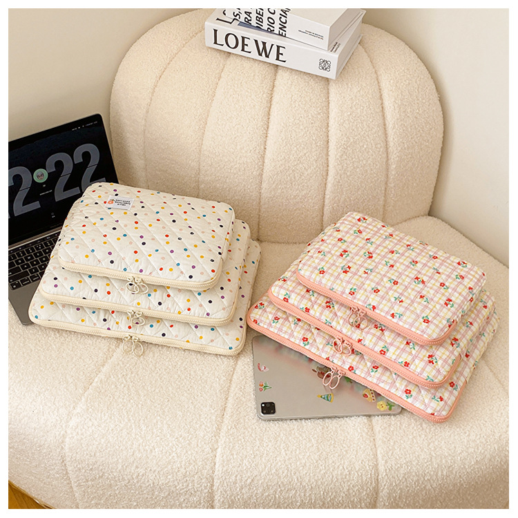 컴퓨터 가방 한국식 다채로운 물방울 무늬 태블릿 보관 가방 여성 휴대용 다운 가방 14/15.6 라이너 가방