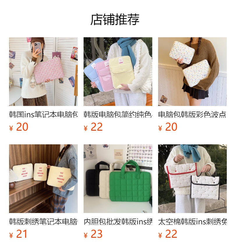 컴퓨터 가방 한국식 다채로운 물방울 무늬 태블릿 보관 가방 여성 휴대용 다운 가방 14/15.6 라이너 가방스토어 가기
