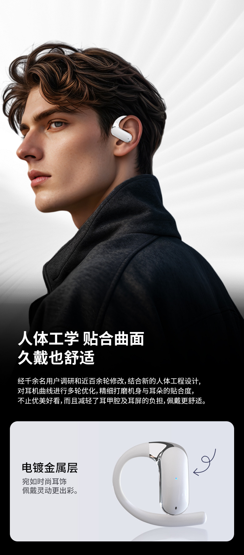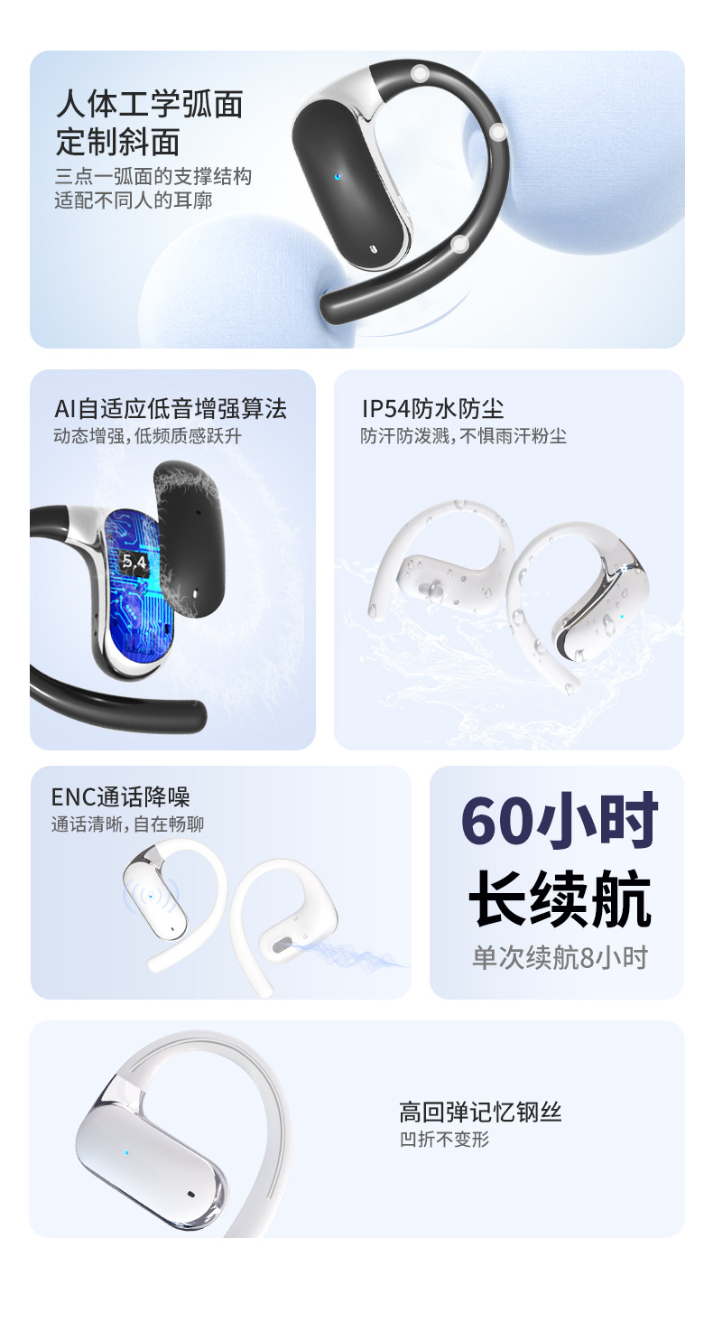국경을 넘는 새로운 비인이어 오버이어 헤드폰 무선 오픈형 AI 번역 블루투스 헤드폰 초장기 배터리 수명 소음 감소