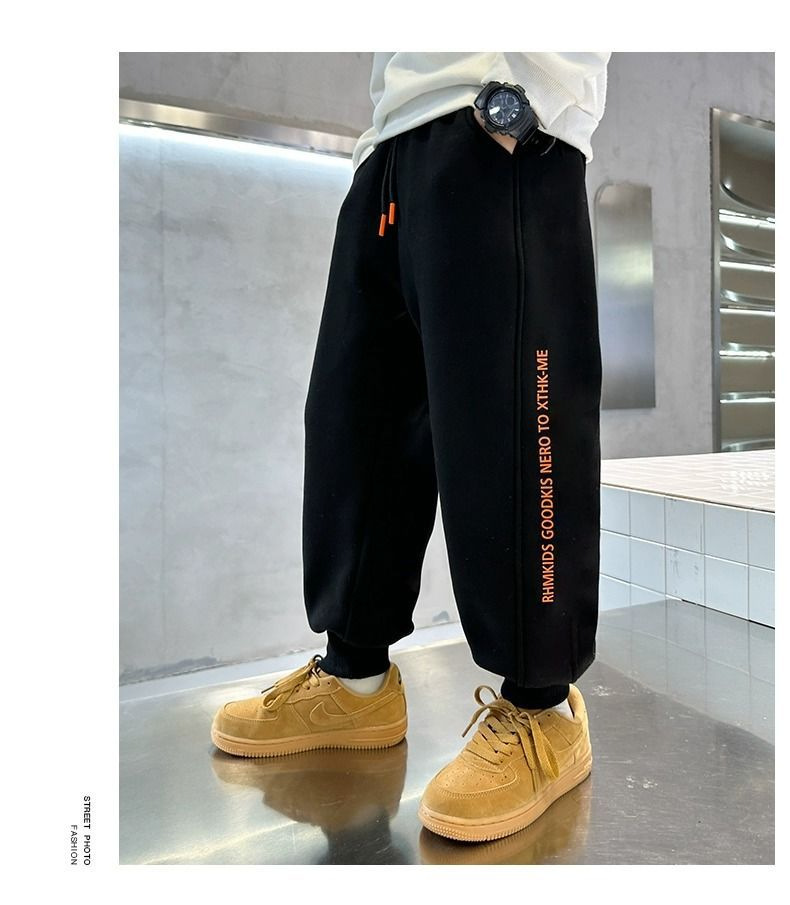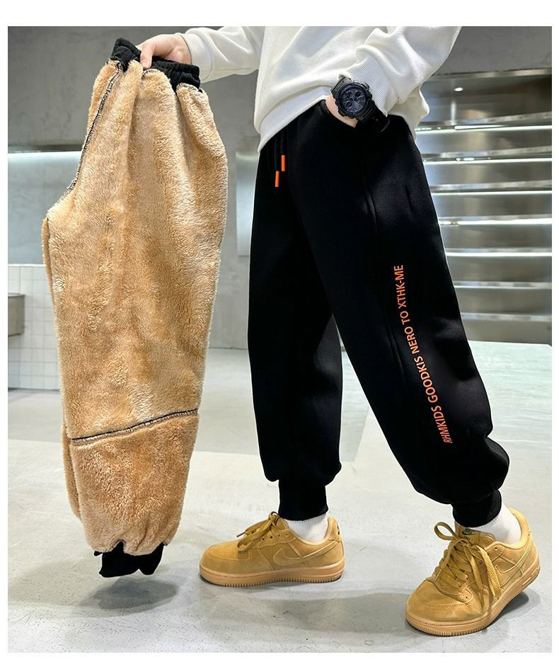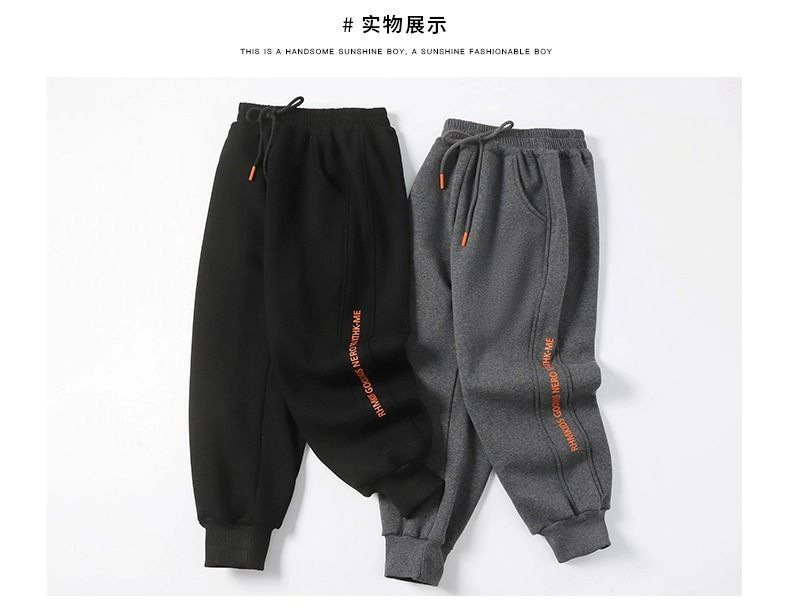 남아용 겨울옷 기모 안감 두꺼운 바지 2025 신상 중대형 아동용 일체형 기모 스포츠 바지 패셔너블 캐주얼 아동 바지 트렌디스토어 가기