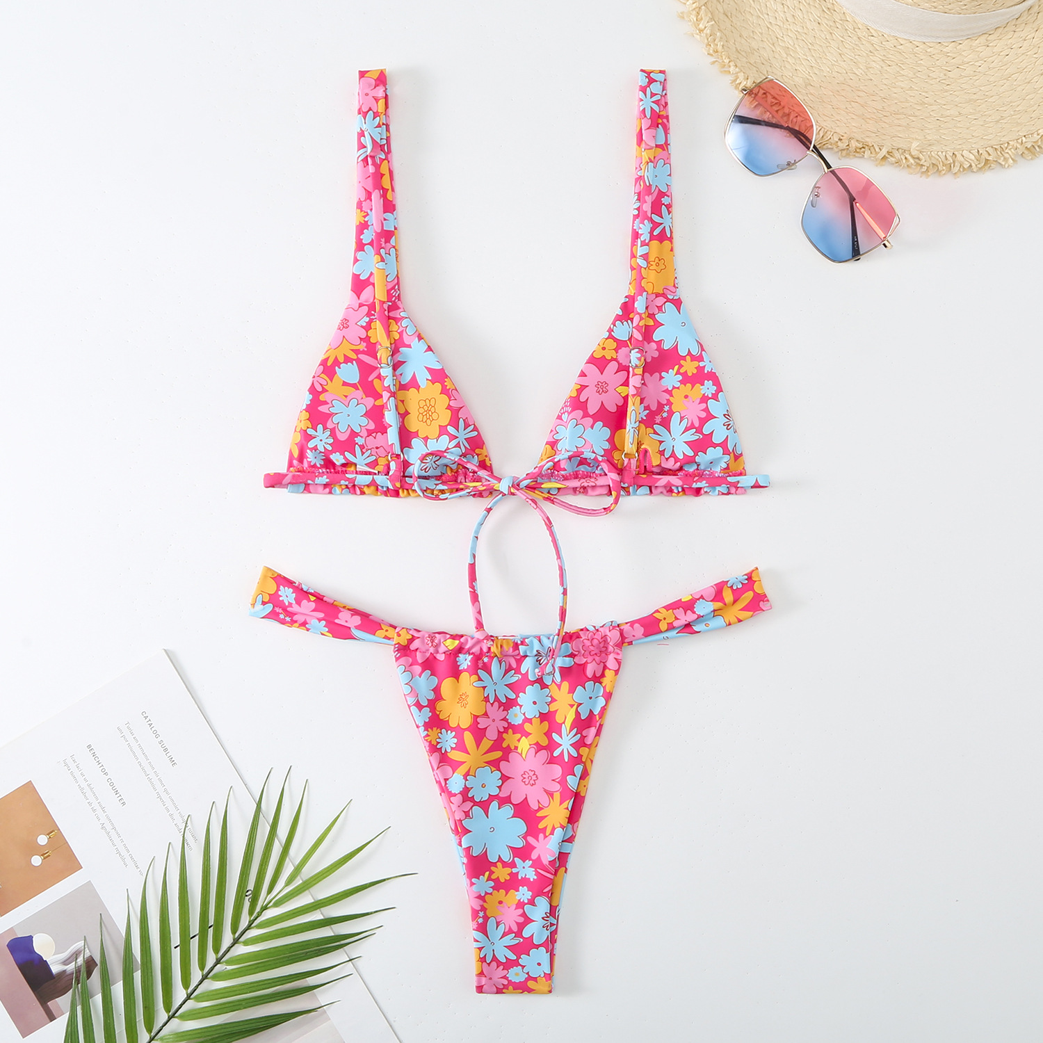 유럽과 미국 여성의 새로운 스플릿 섹시 프린트 비키니 양면 웨어러블 스트랩 멀티 컬러 온천 비치 수영복