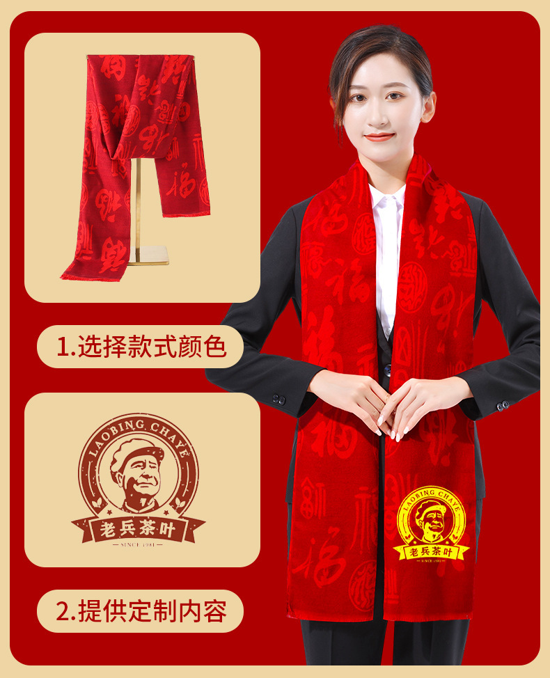 레드 스카프 중국 빨간 로고 수 놓은 빨간 스카프 생일 오프닝 레드 패턴 결혼식 이벤트 연례 회의 공식화스토어 가기
